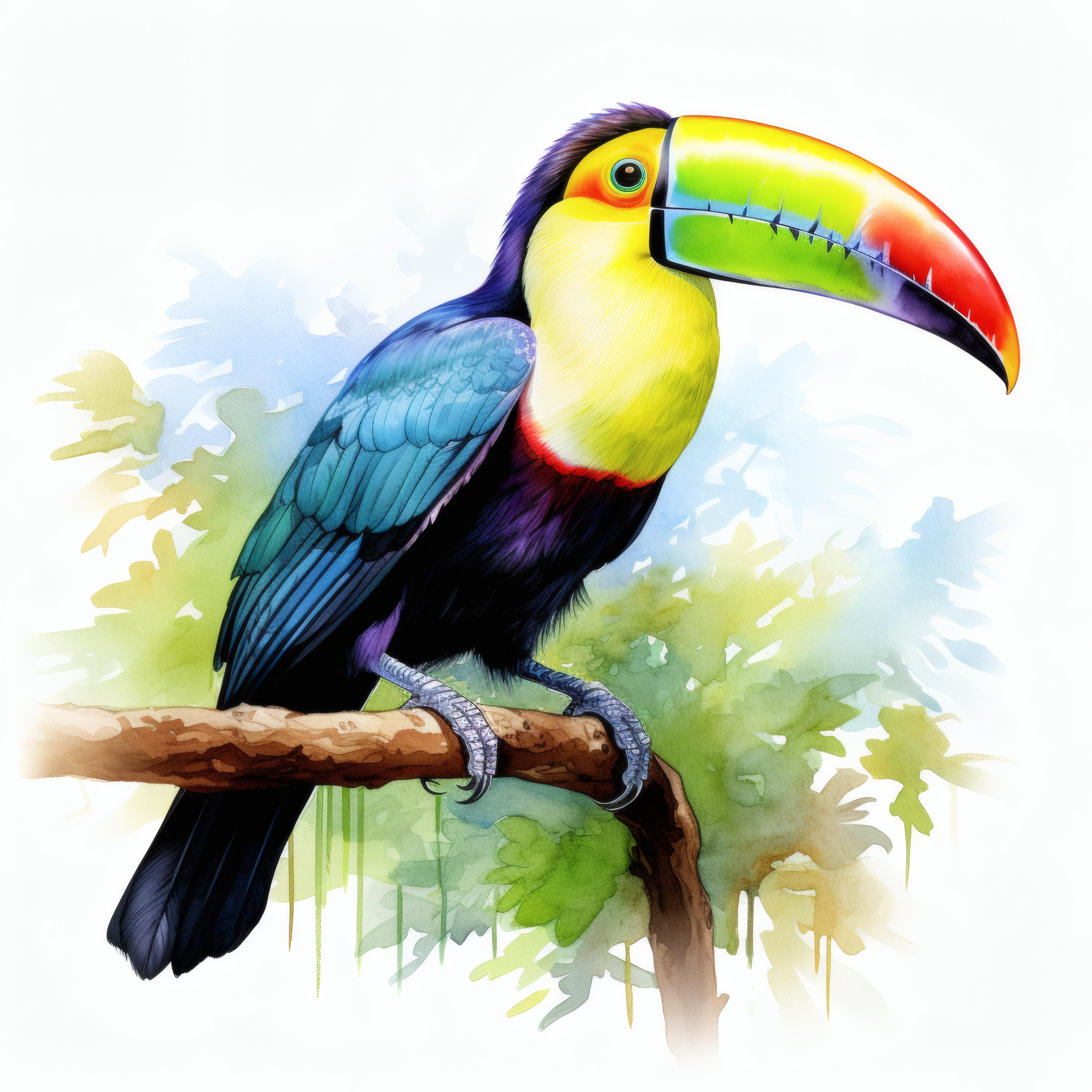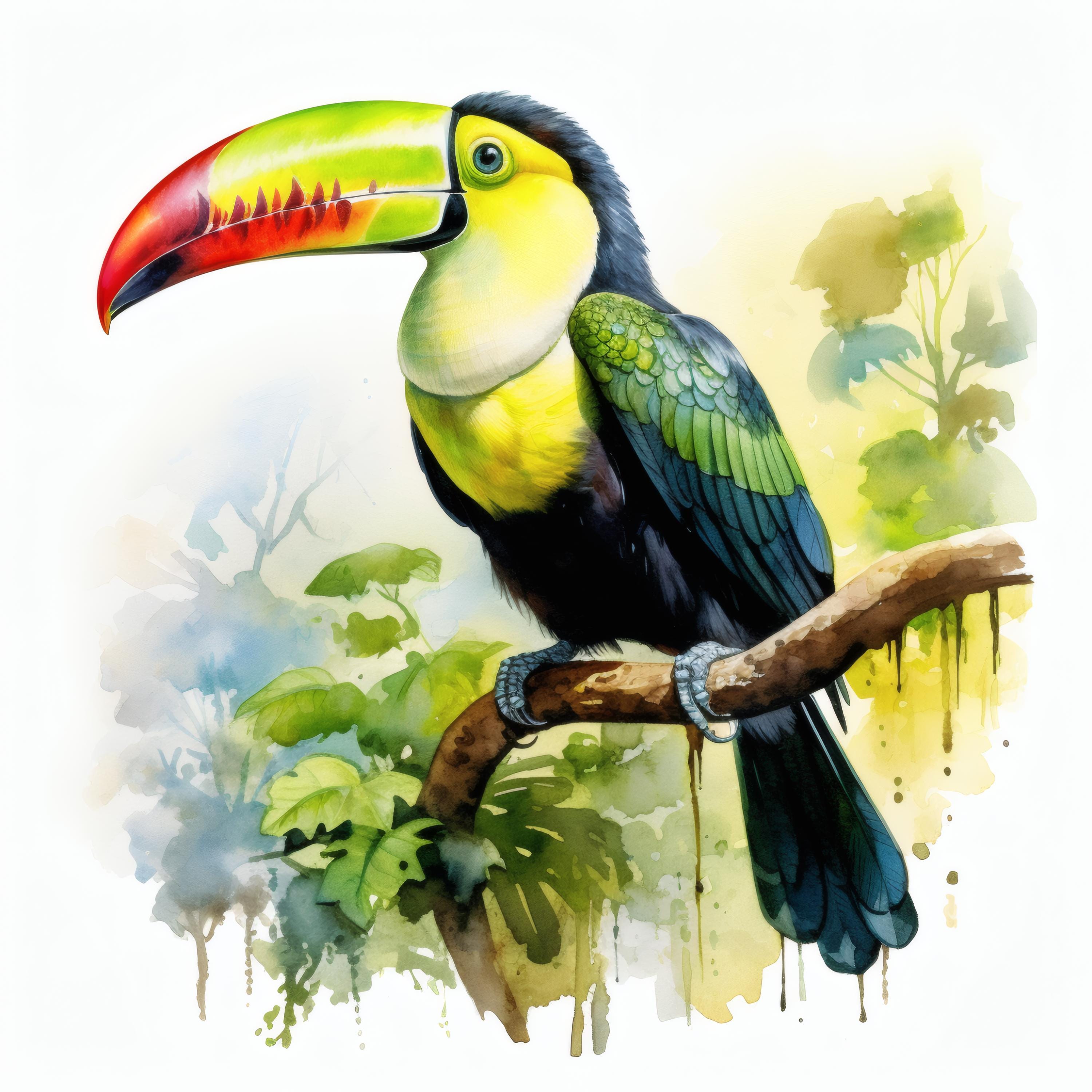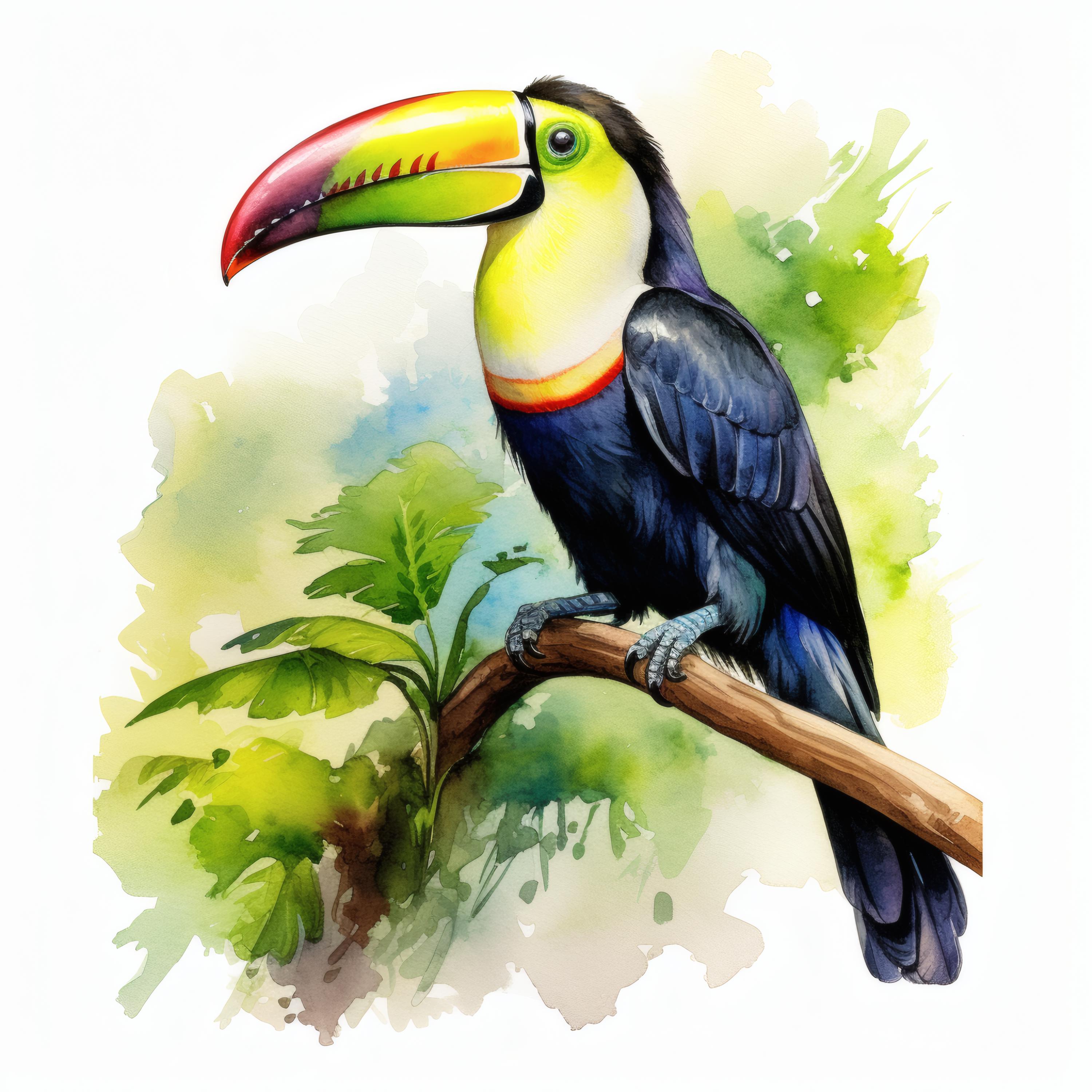 Toucan Bird Clipart, Tropical Wildlife Images, 10 Watercolor Clip Art, Printable JPGs, Instant Download, Commercial Use, Paper craft