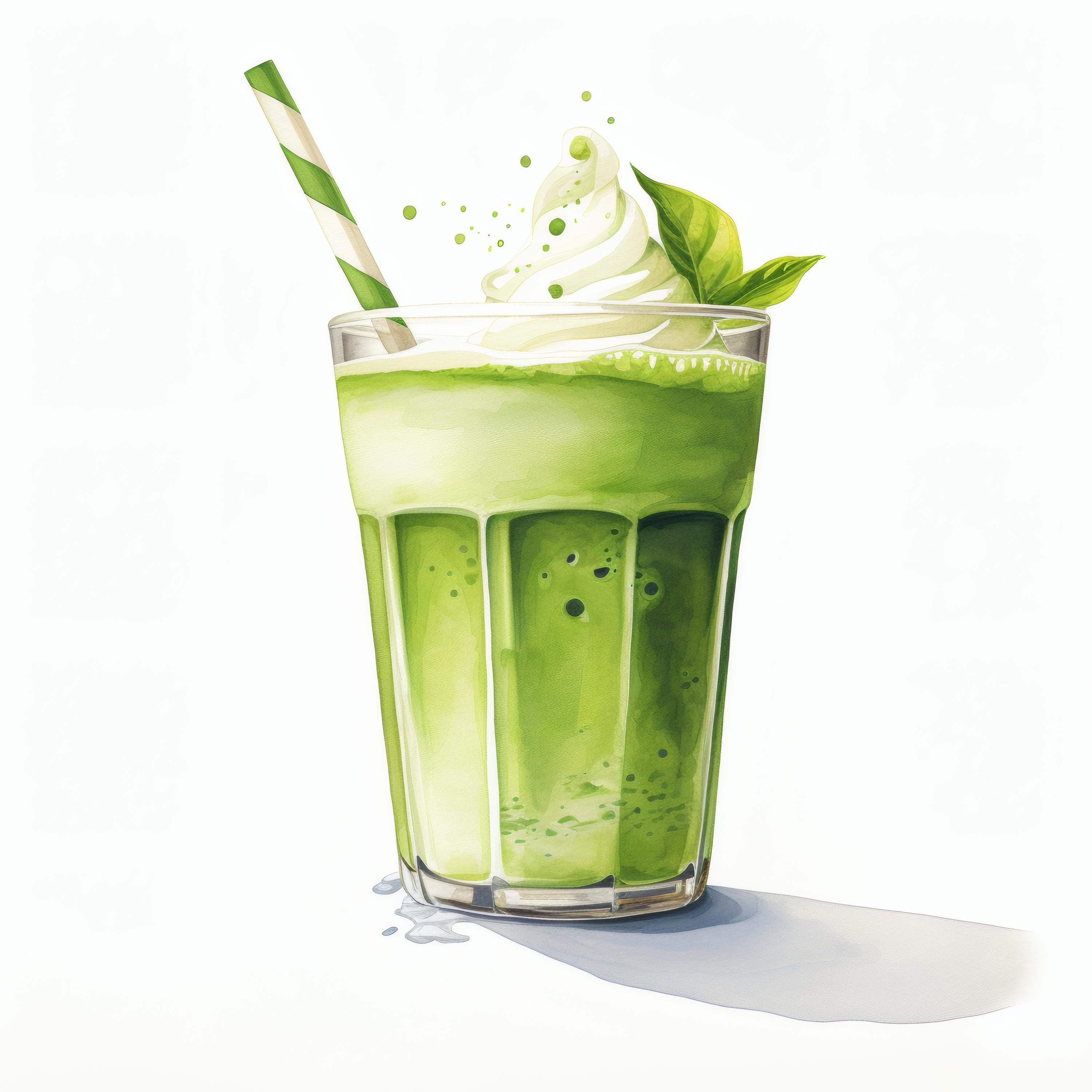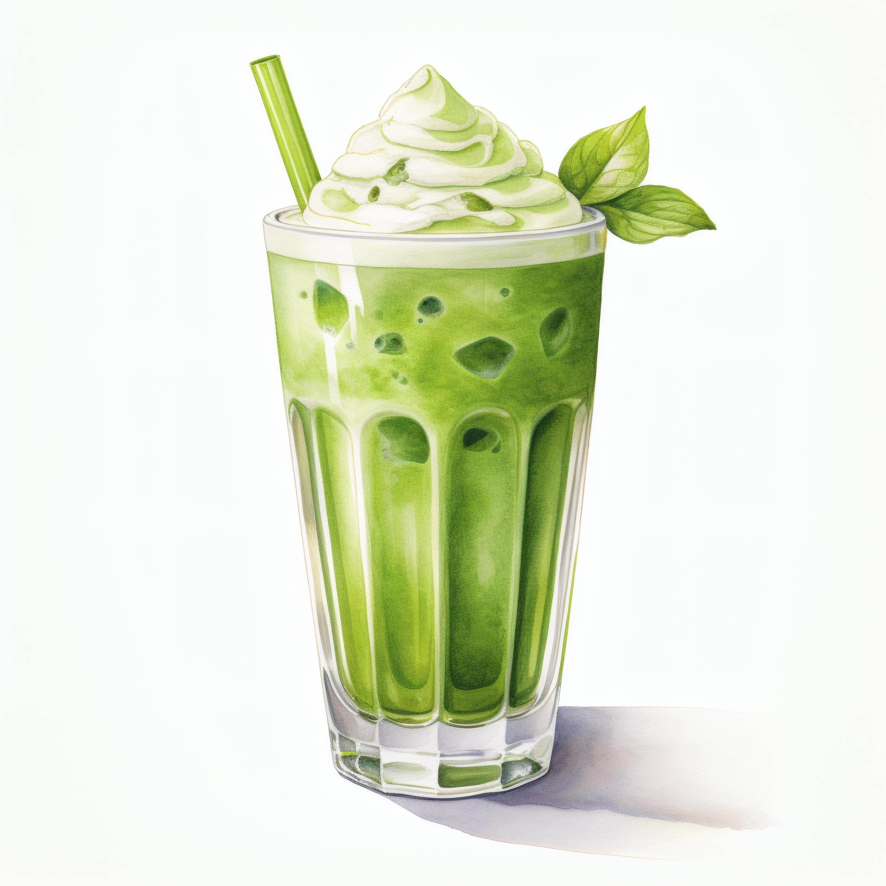 Matcha Green Tea Clipart, Iced Herbal Drink Images, 10 Watercolor Clip Art, Printable JPGs, Instant Download, Commercial Use, Paper craft