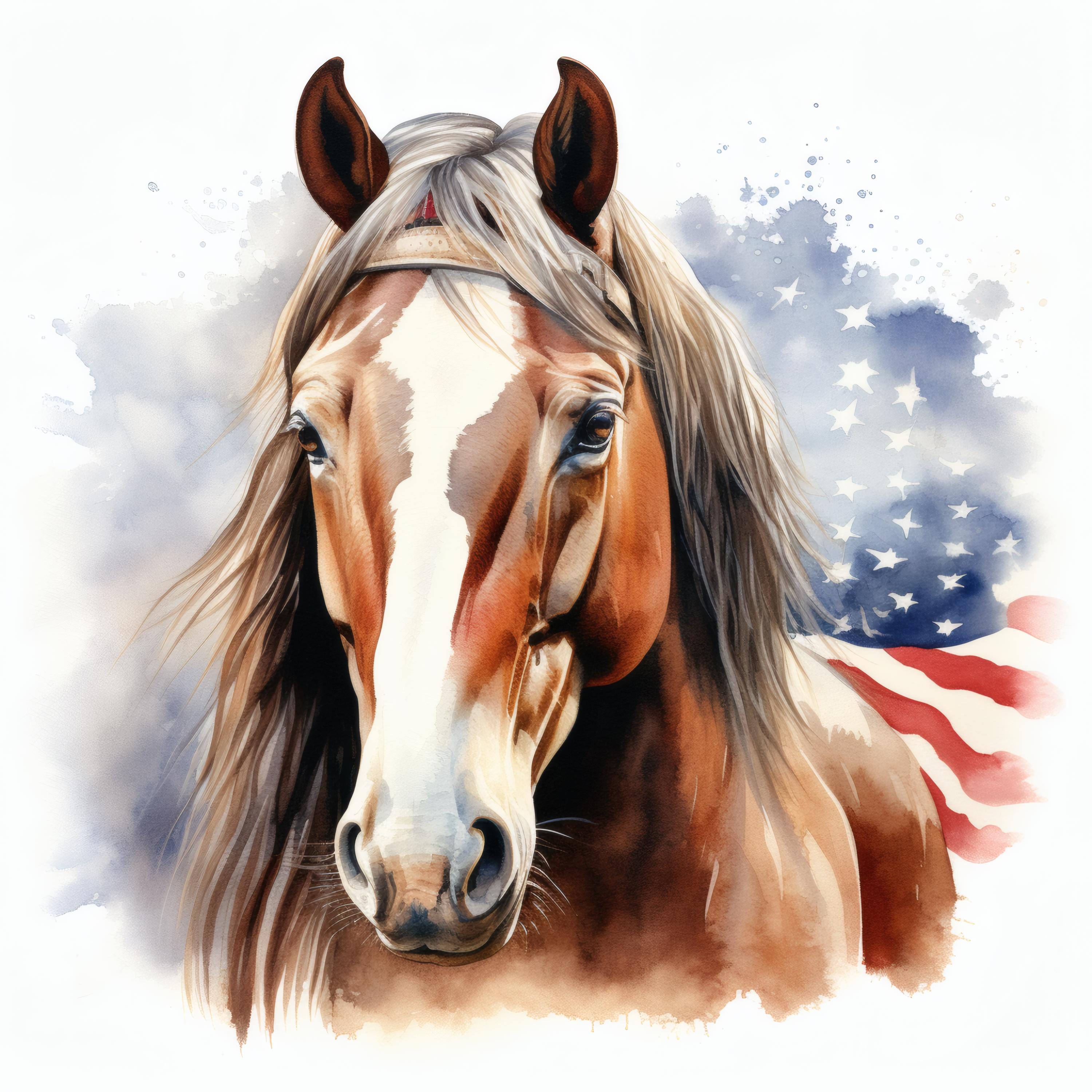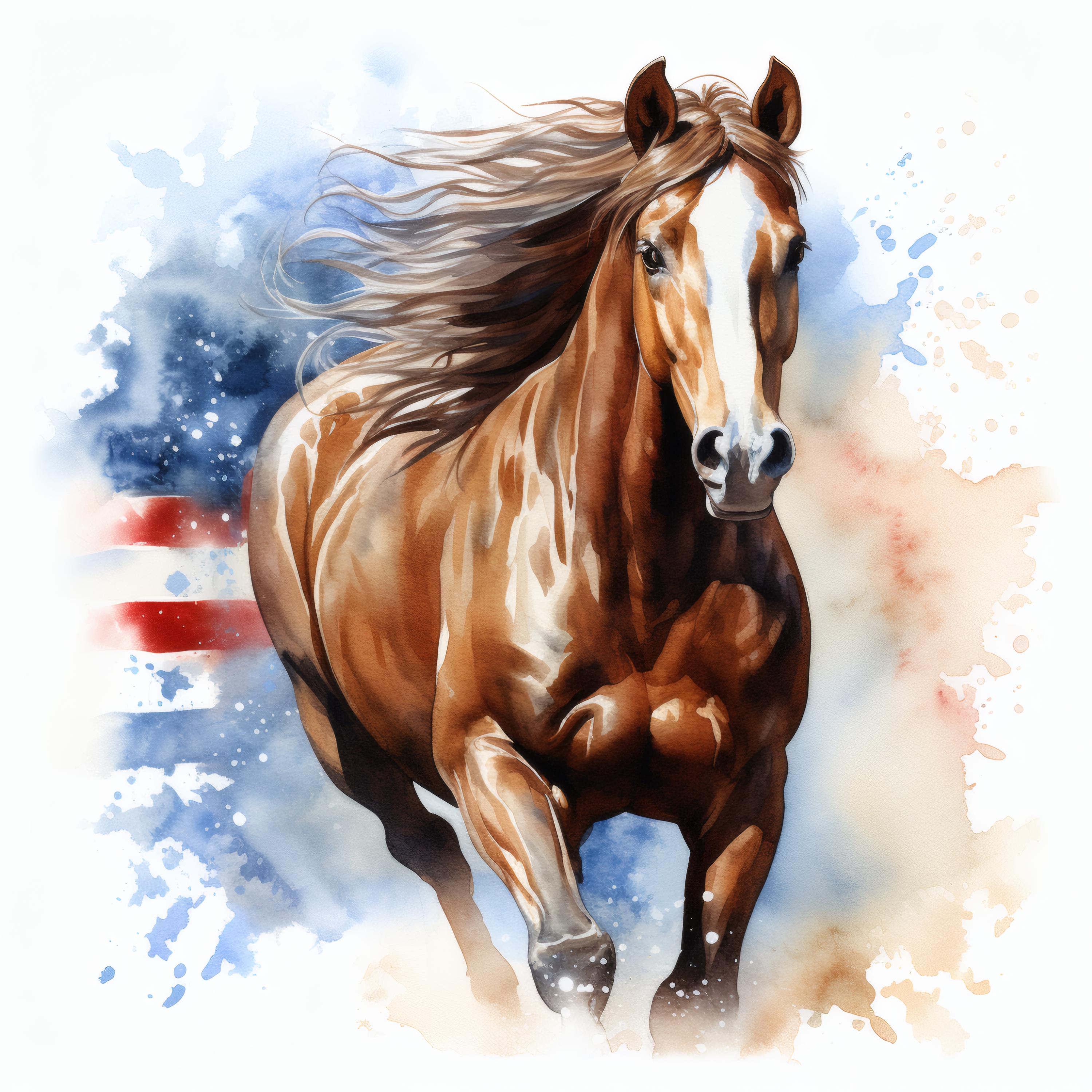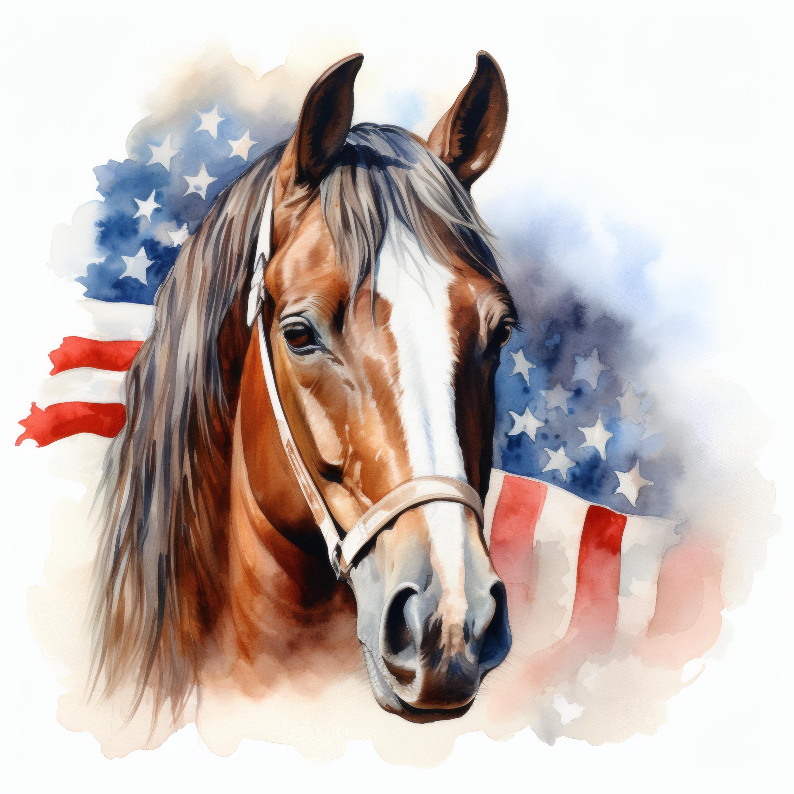 Patriotic Horse Clipart, American Horse Images, 10 Watercolor Clip Art, Printable JPGs, Instant Download, Commercial Use, Paper craft