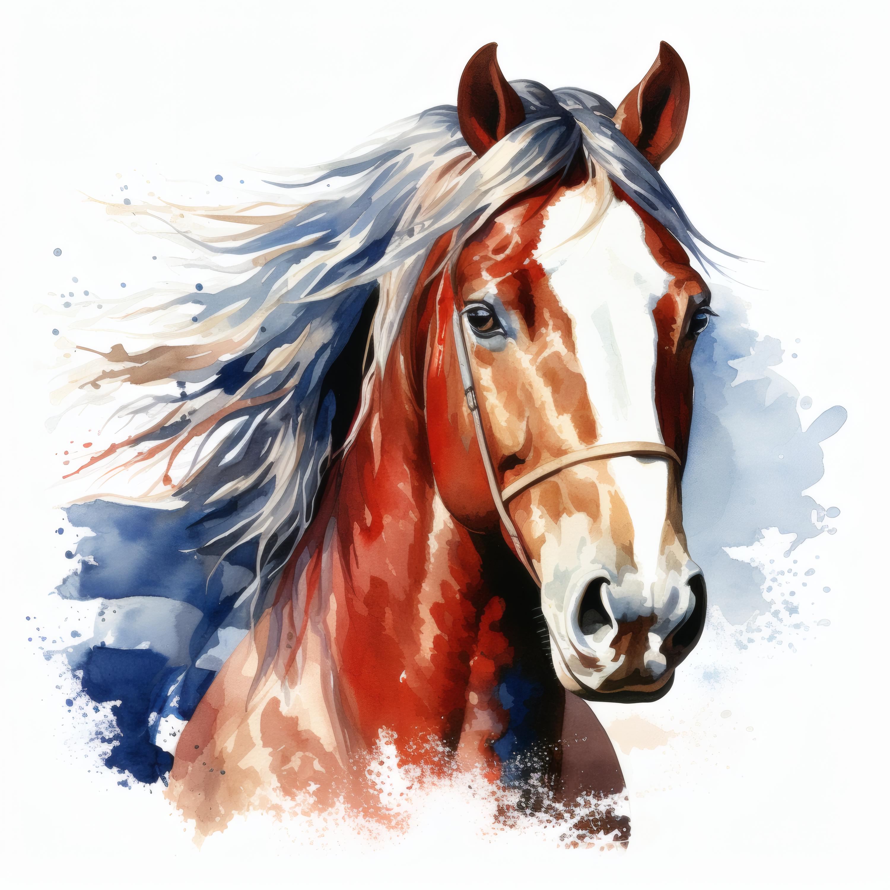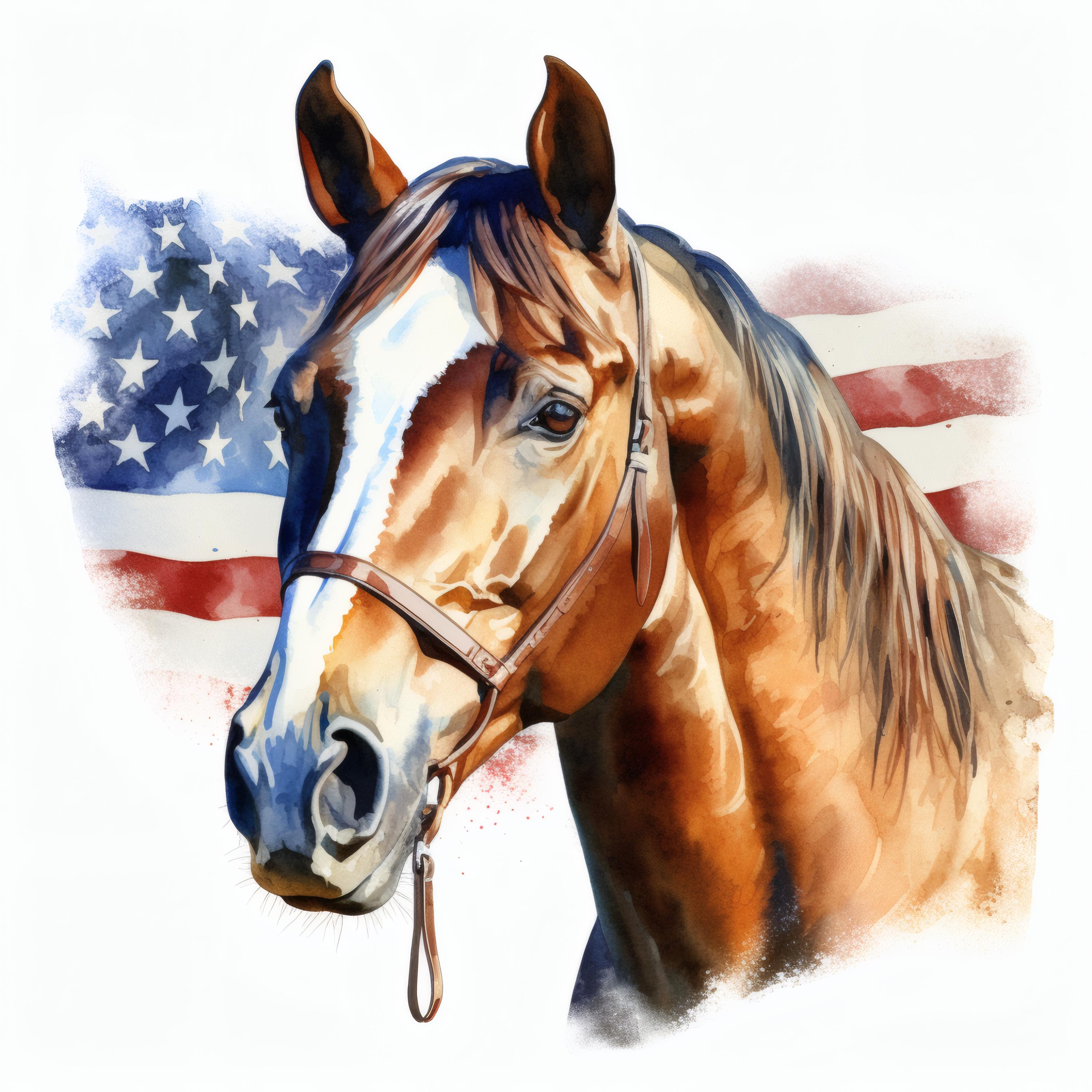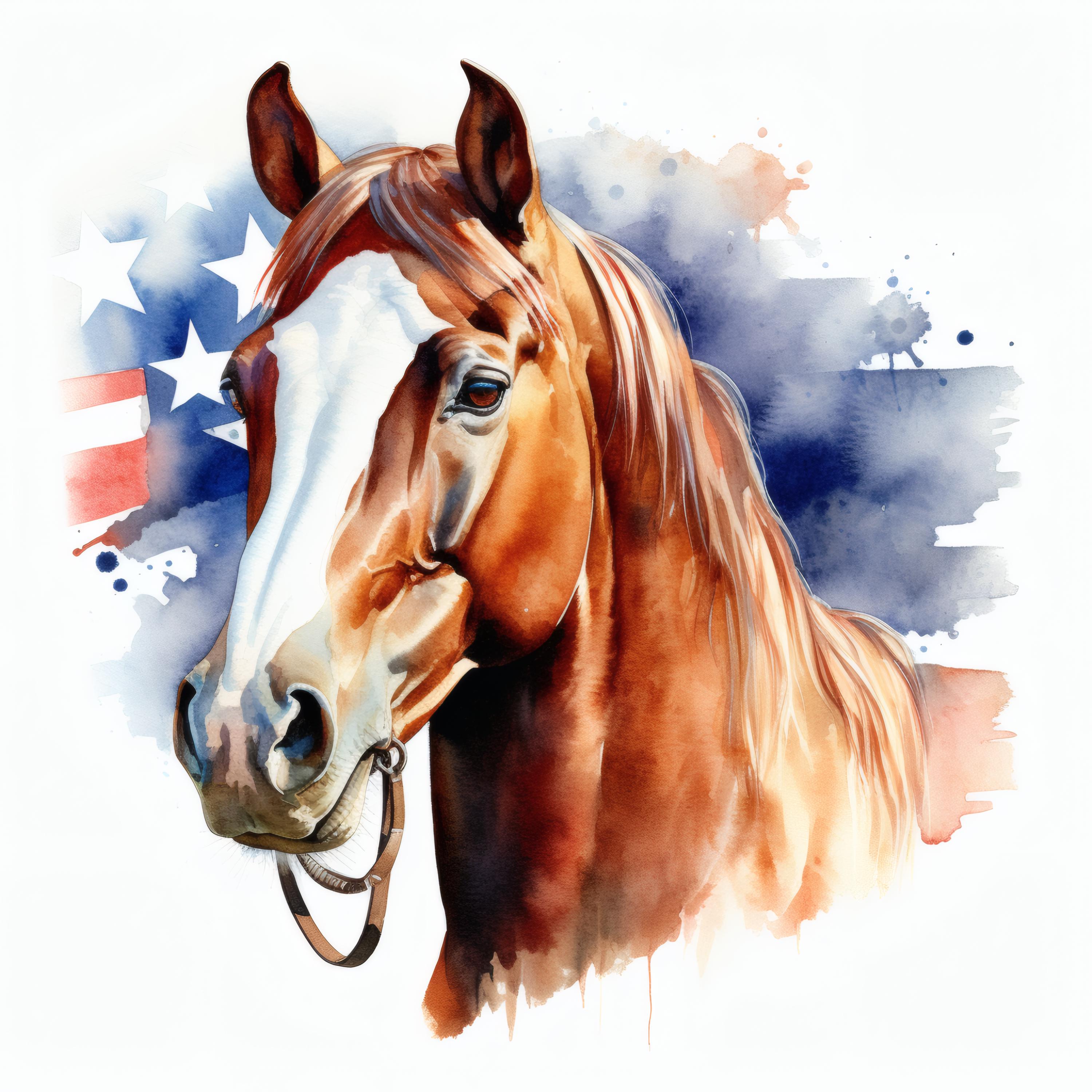 Patriotic Horse Clipart, American Horse Images, 10 Watercolor Clip Art, Printable JPGs, Instant Download, Commercial Use, Paper craft