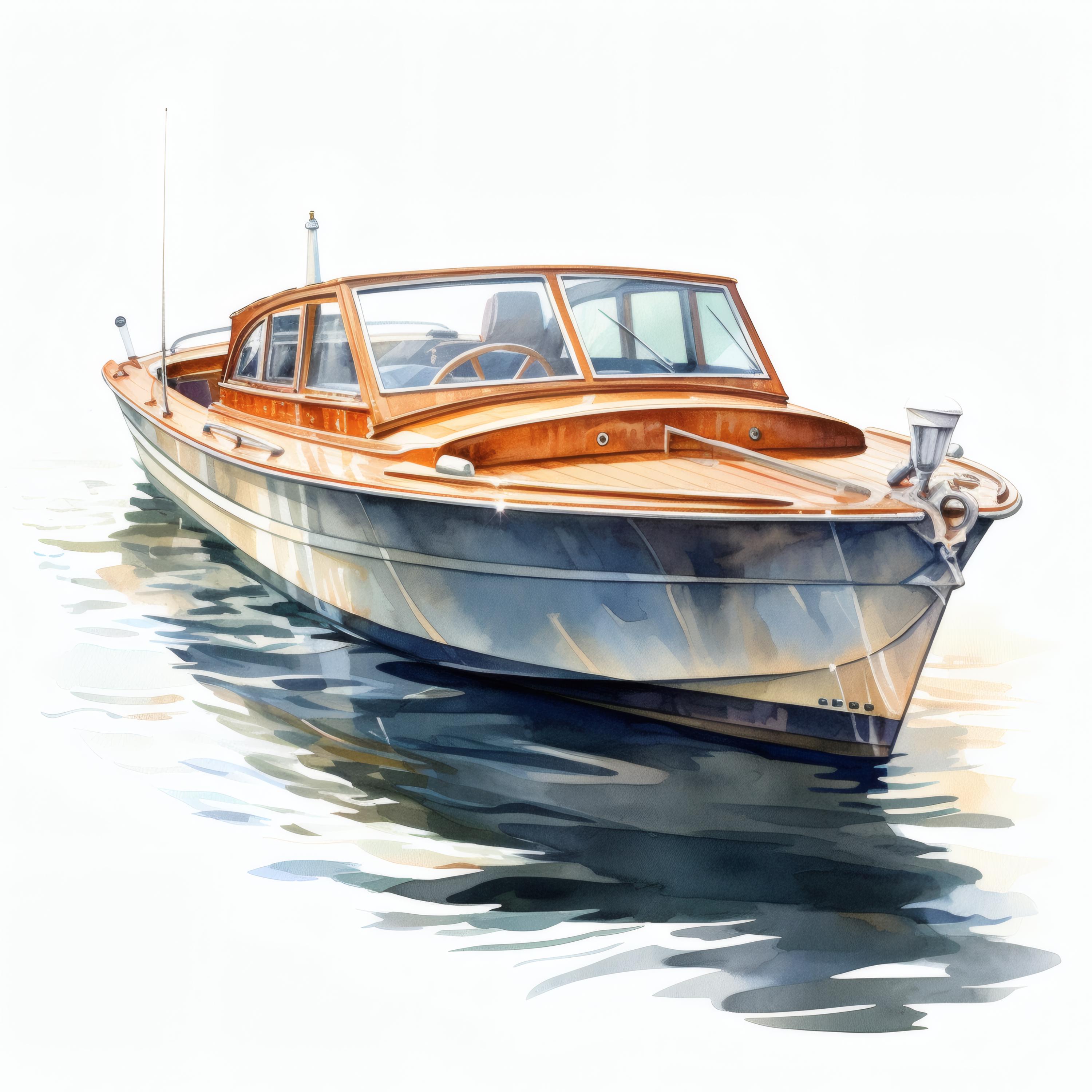 Motor Boat Clipart, Modern Speed Boat Images, 10 Watercolor Clip Art, Printable JPGs, Instant Download, Commercial Use, Paper craft
