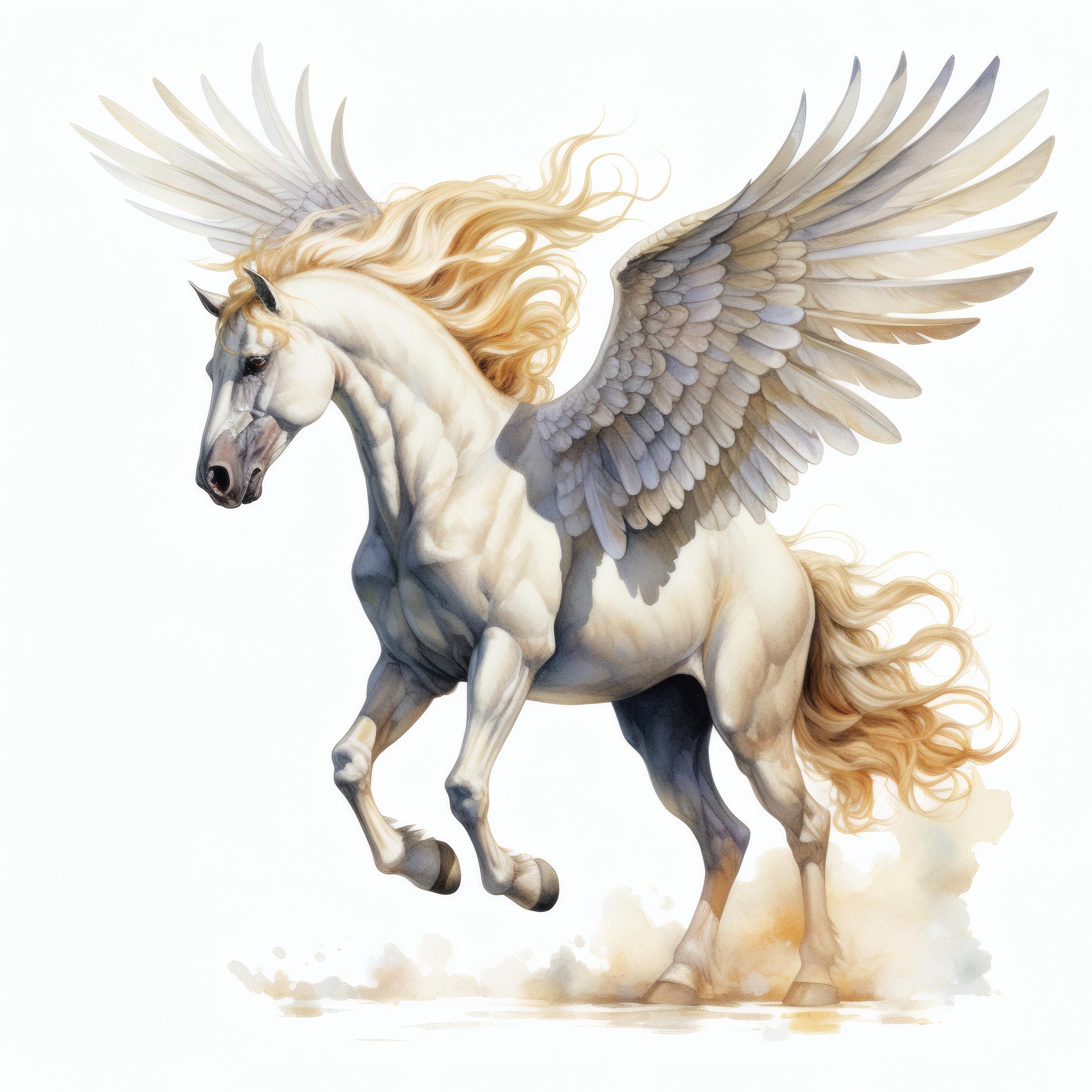 Pegasus Clipart, Winged Horse Images, 10 Watercolor Clip Art, Printable JPGs, Instant Download, Commercial Use, Paper craft