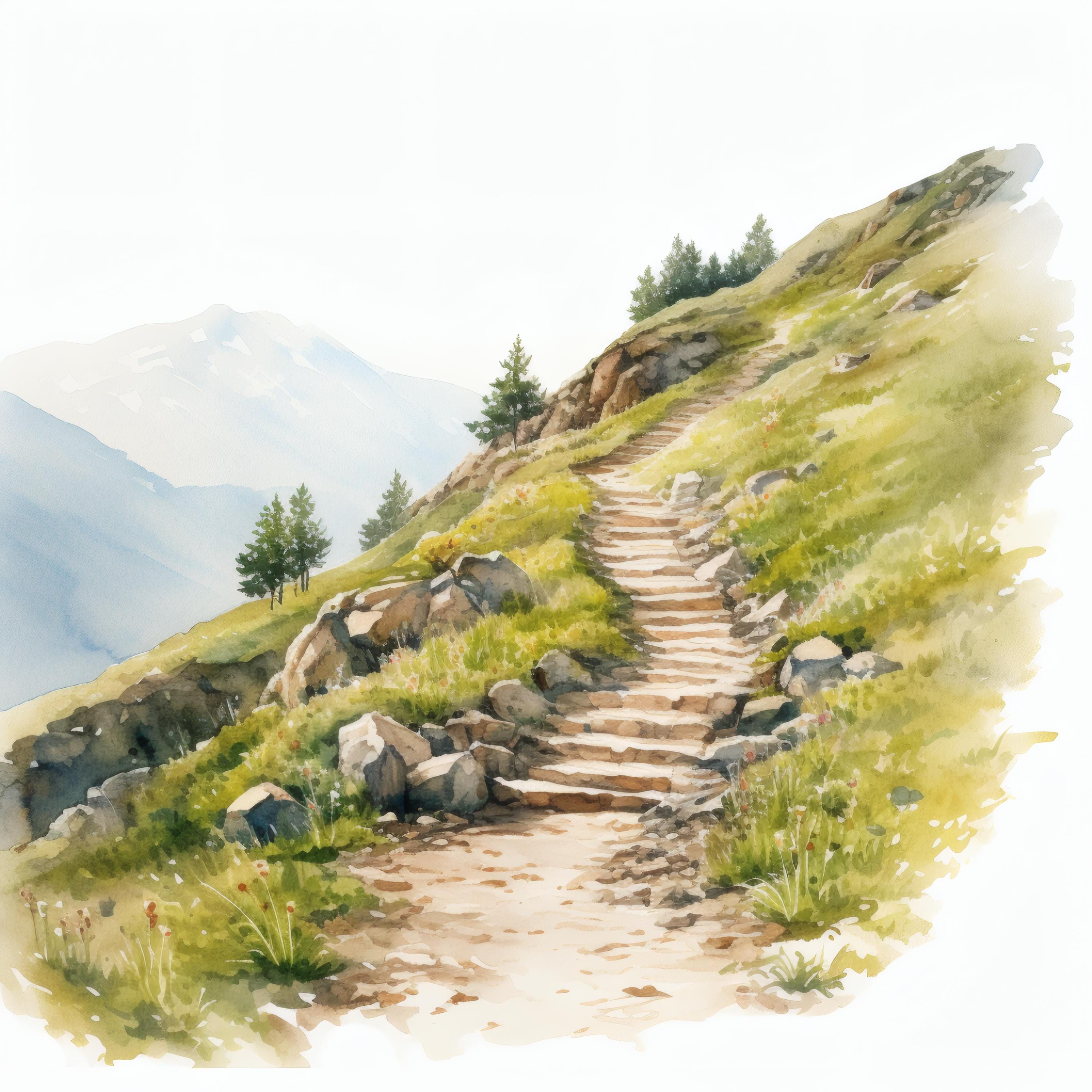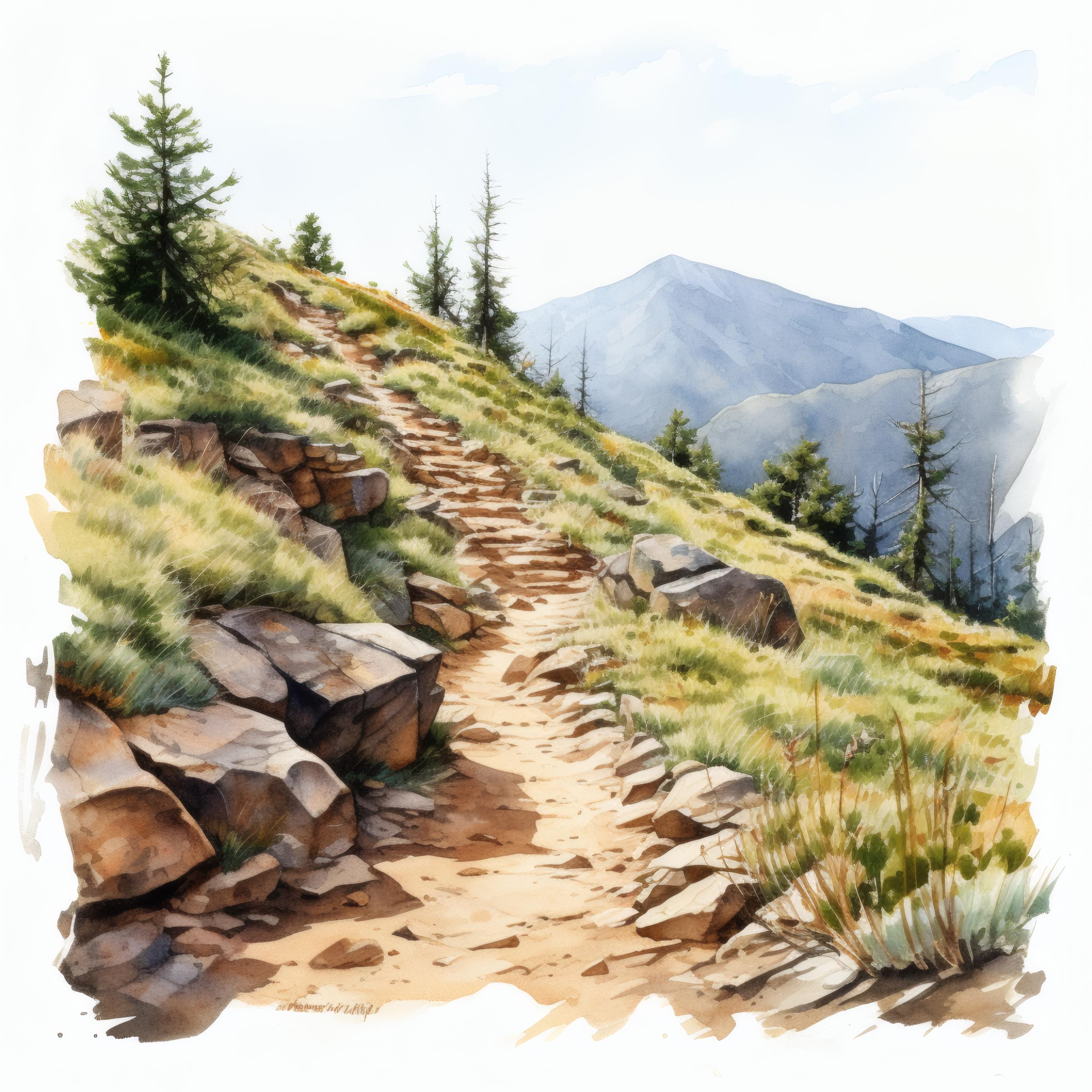 Mountain Path Clipart, Mountain Landscape Images, 10 Watercolor Clip Art, Printable JPGs, Instant Download, Commercial Use, Paper craft