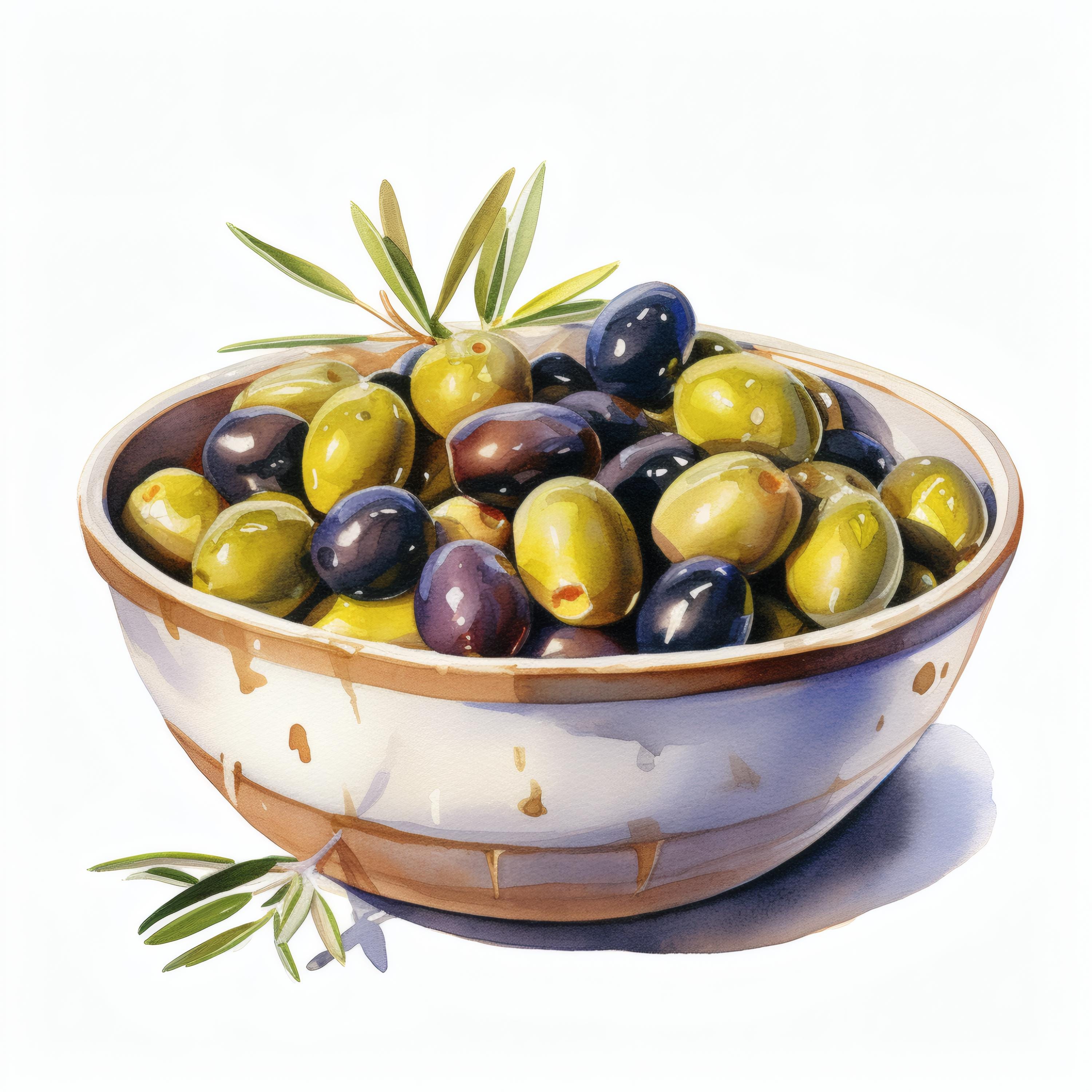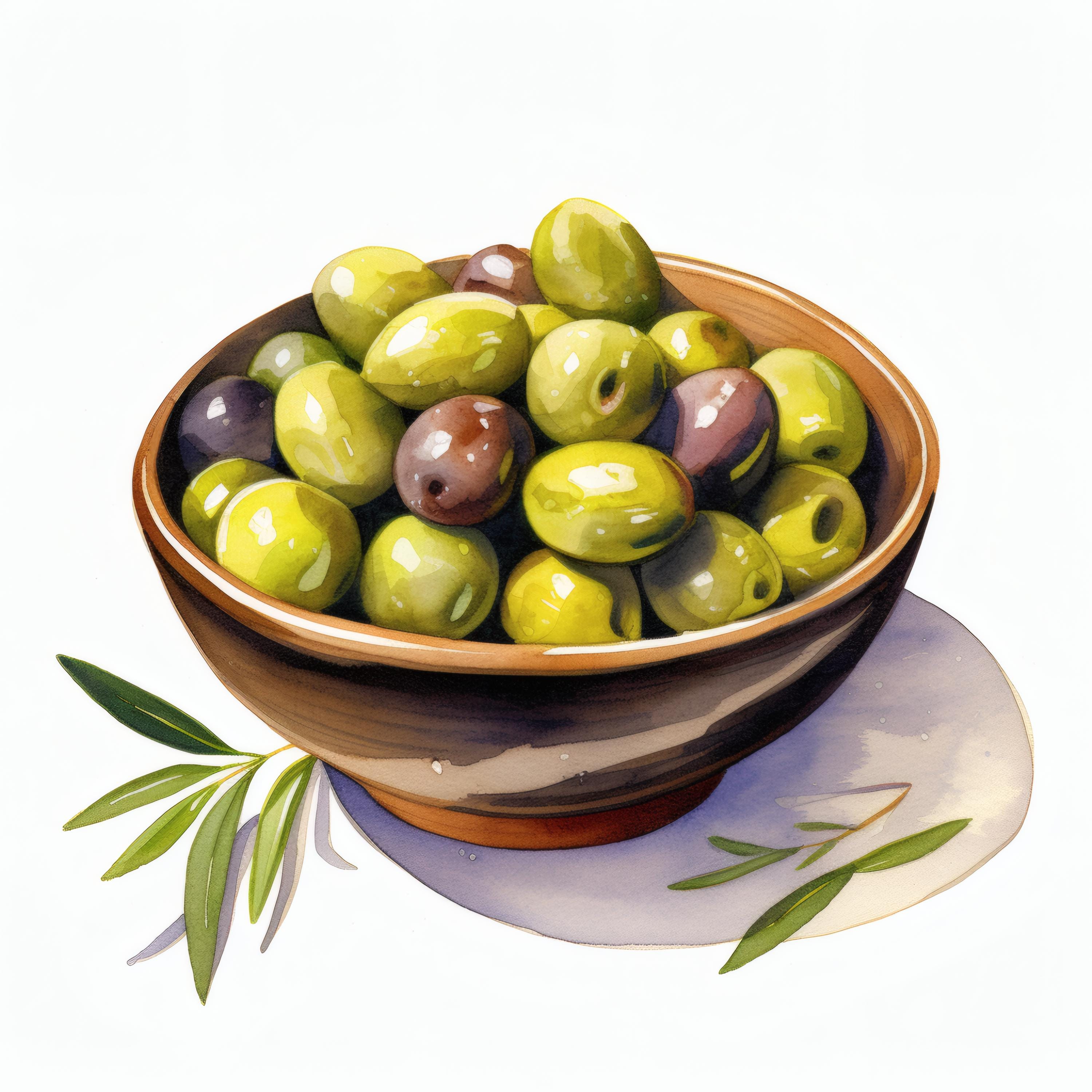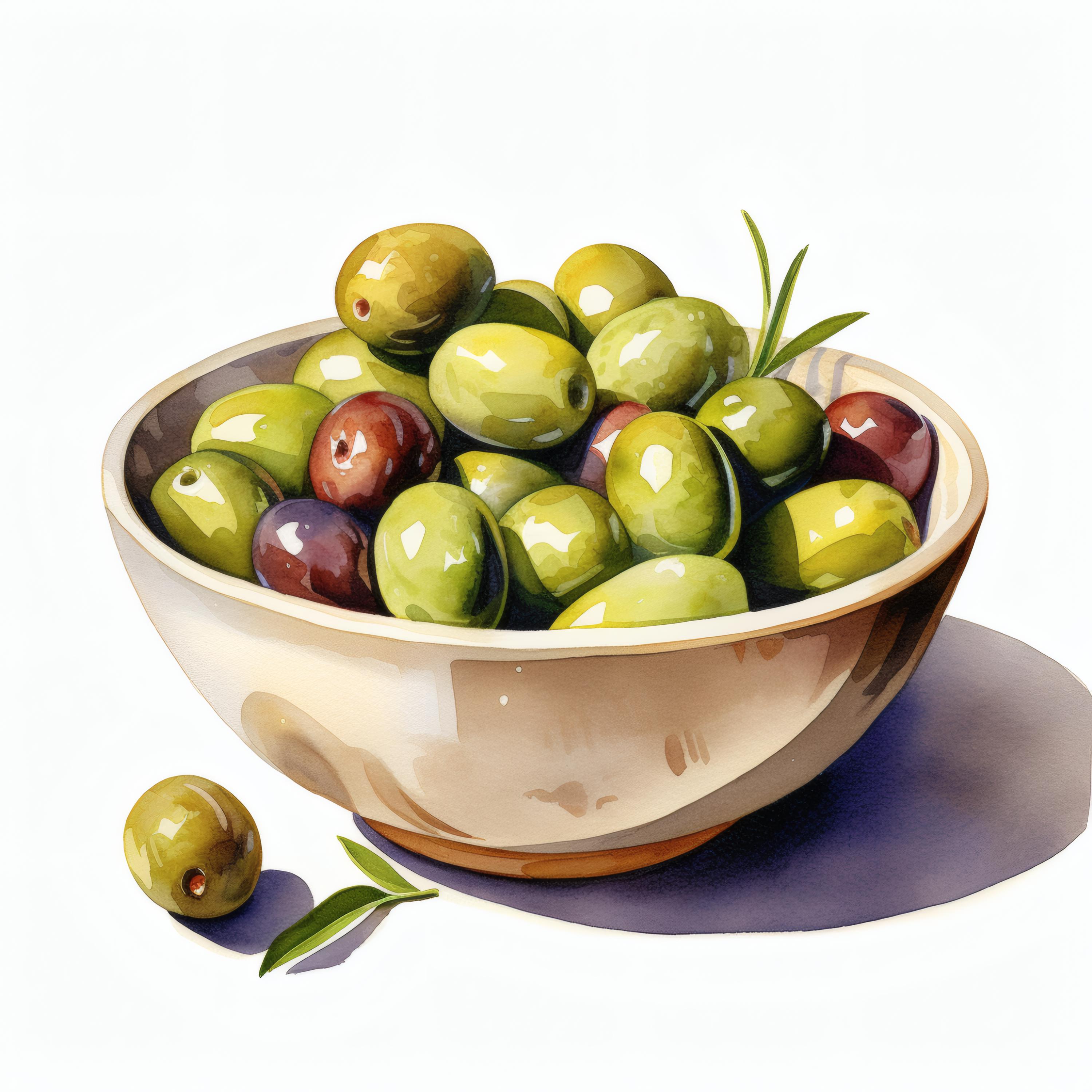 Olives Clipart, Olive Bowl Food Images, 10 Watercolor Clip Art, Printable JPGs, Instant Download, Commercial Use, Paper craft