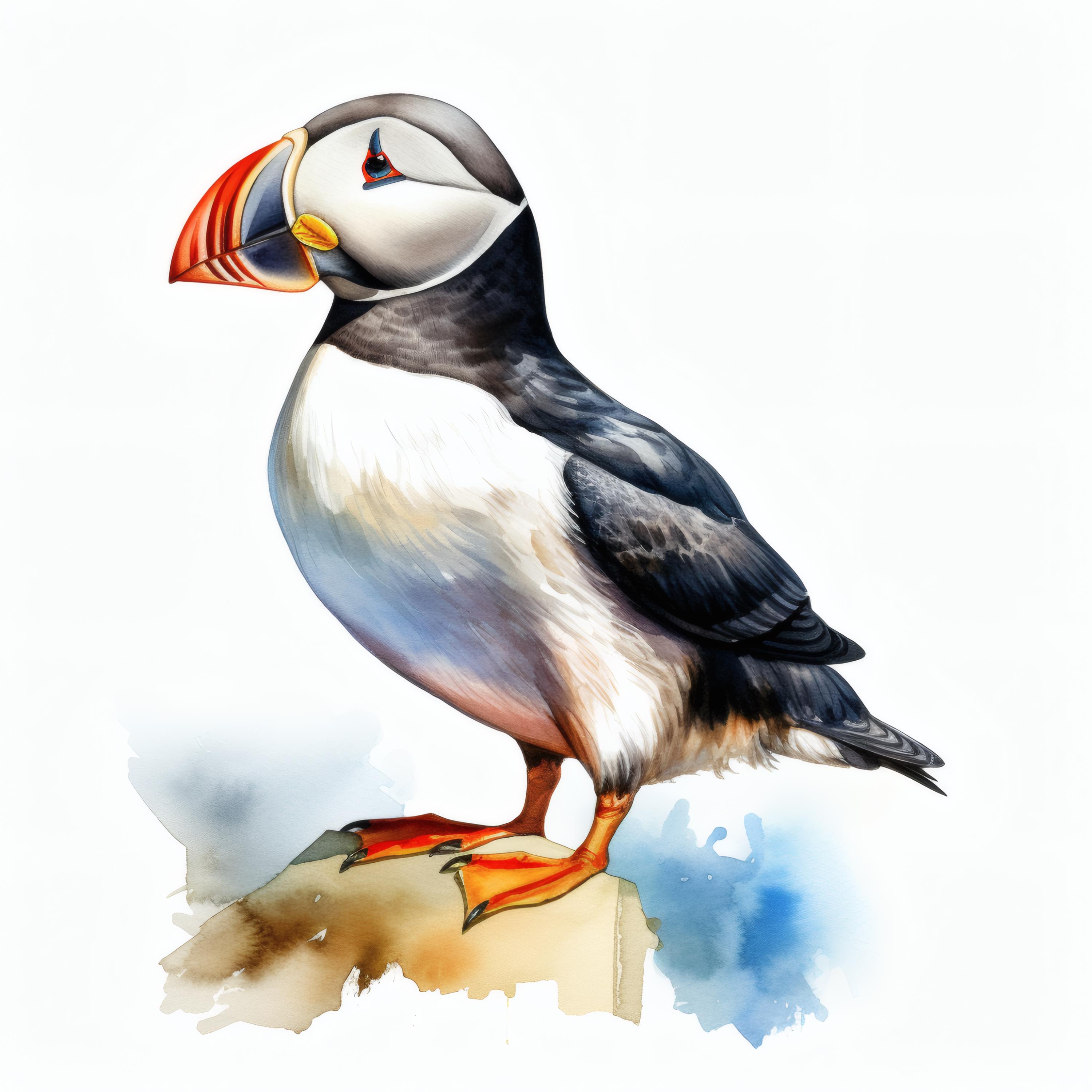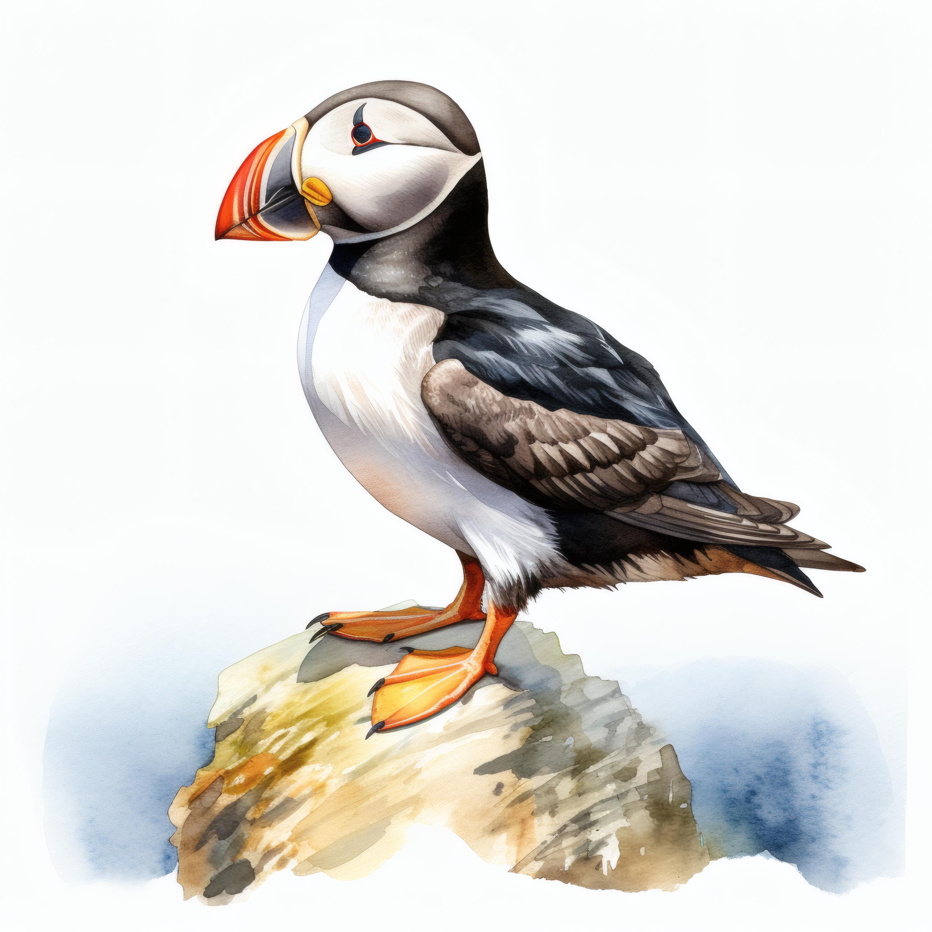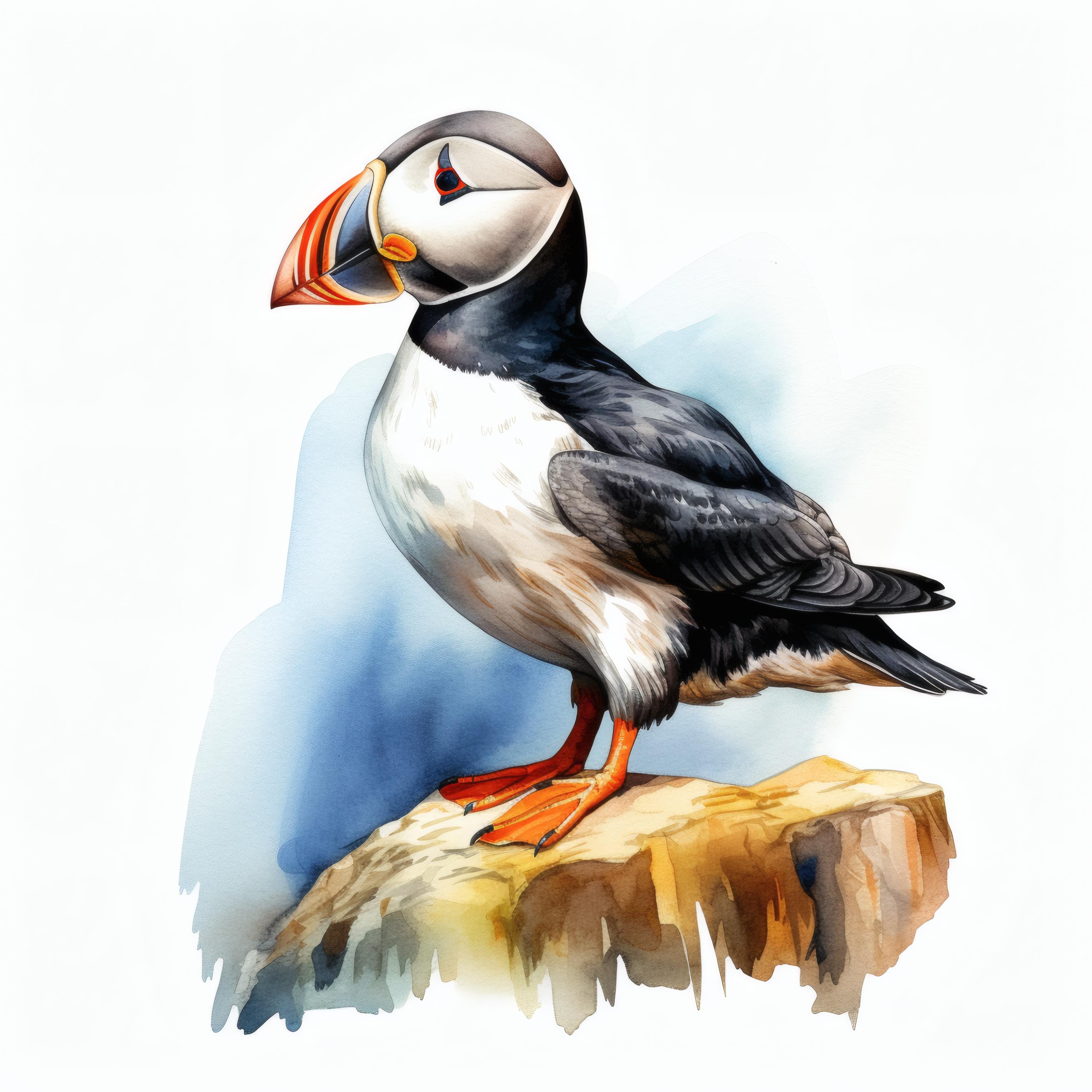 Puffin Bird Clipart, Seabird Wildlife Images, 10 Watercolor Clip Art, Printable JPGs, Instant Download, Commercial Use, Paper craft