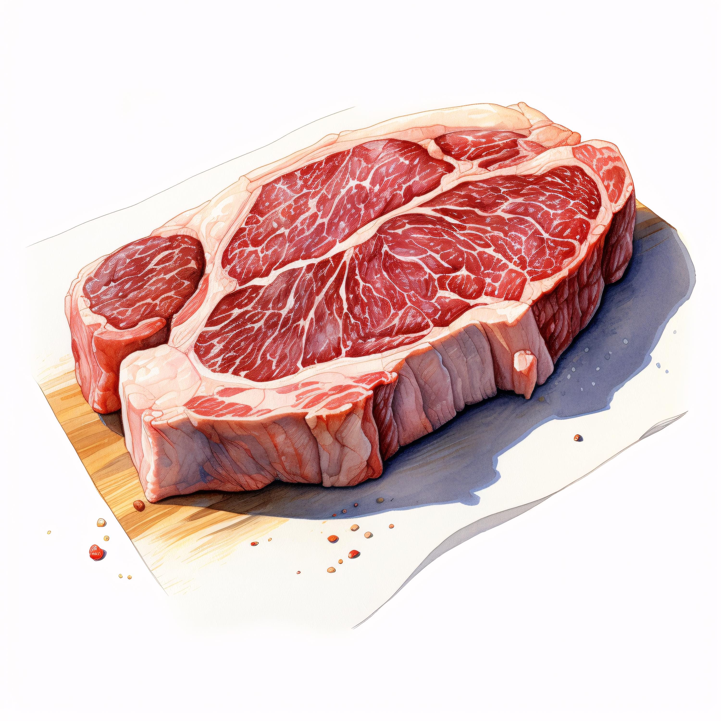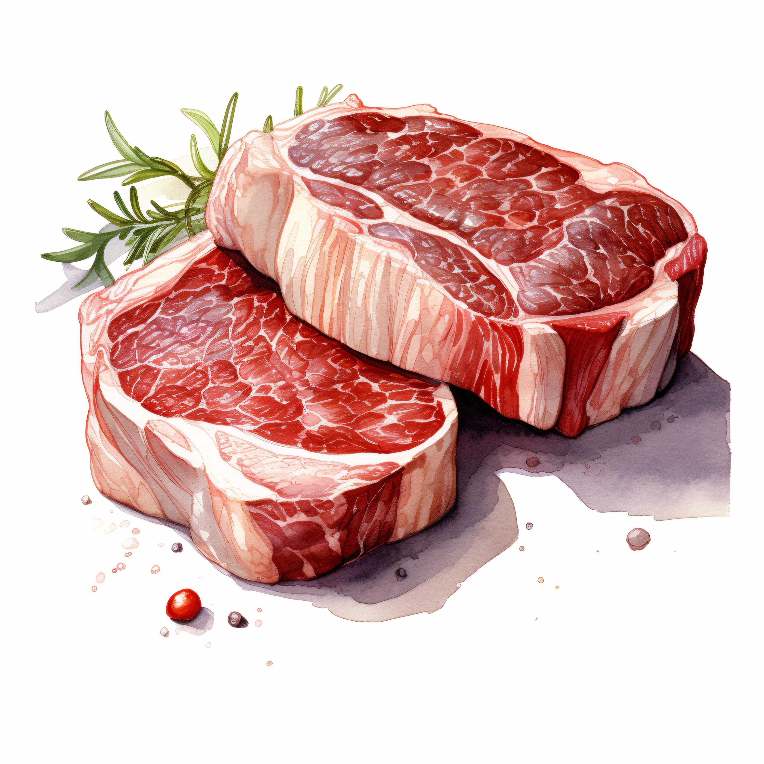 Ribeye Steak Clipart, Raw Meat Food Images, 10 Watercolor Clip Art, Printable JPGs, Instant Download, Commercial Use, Paper craft