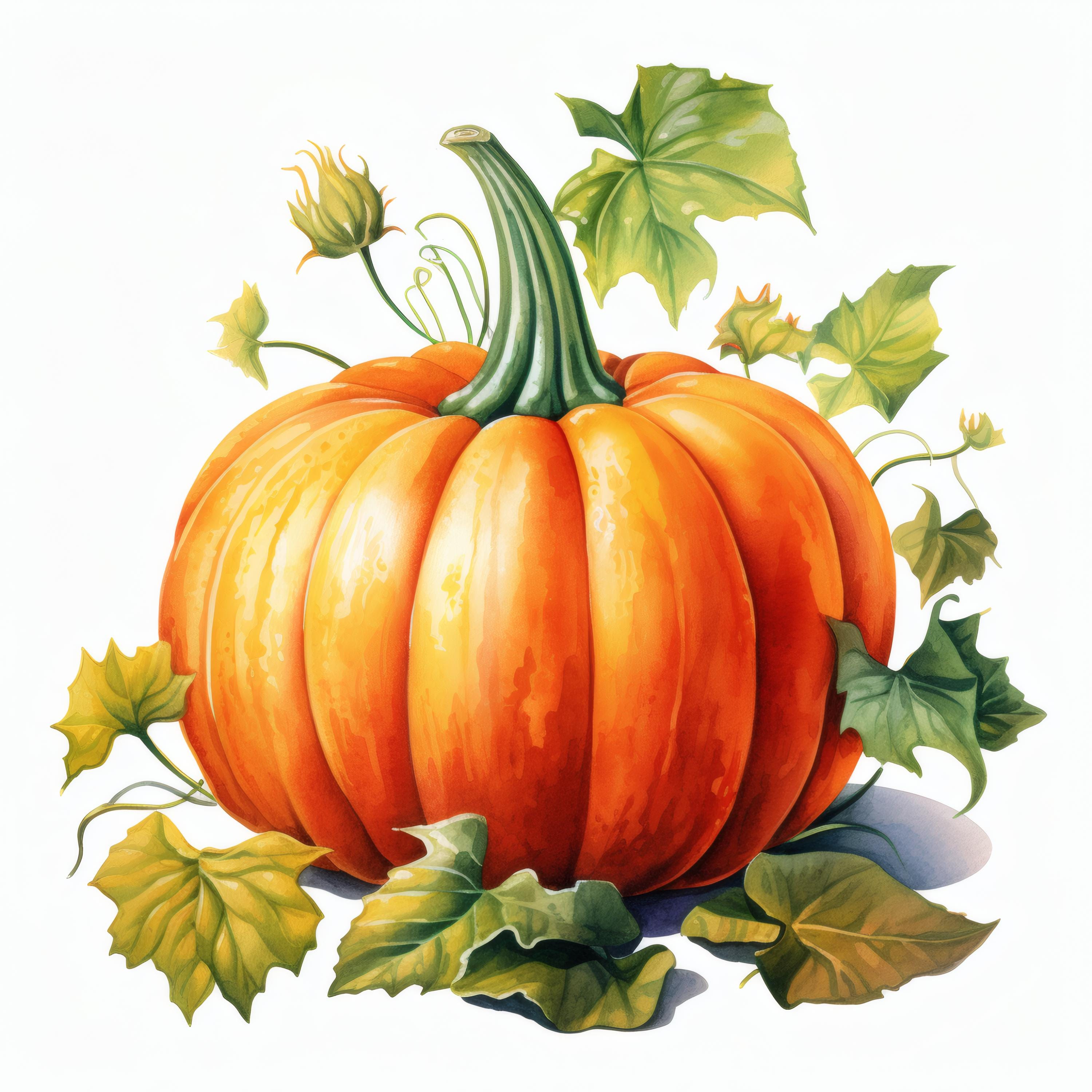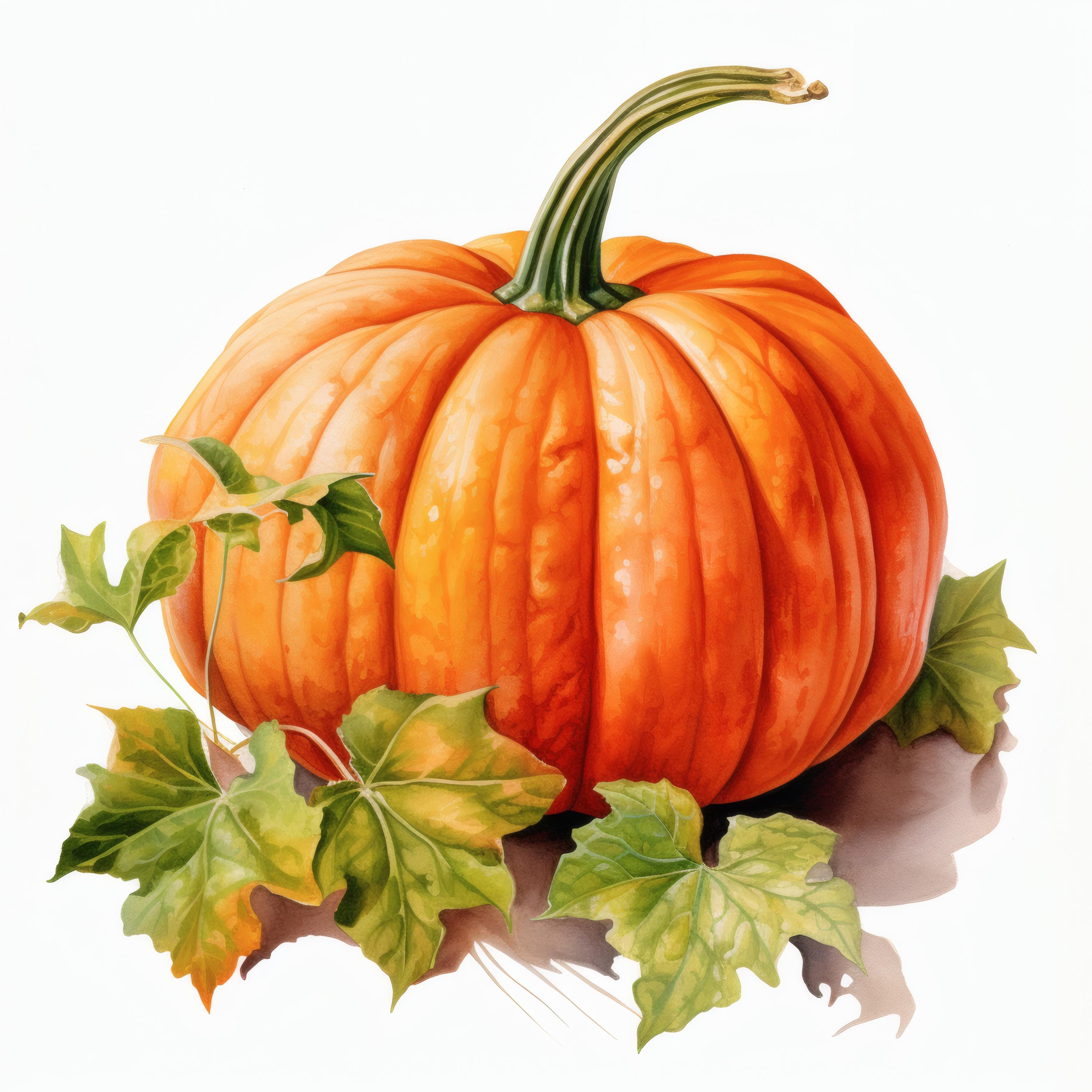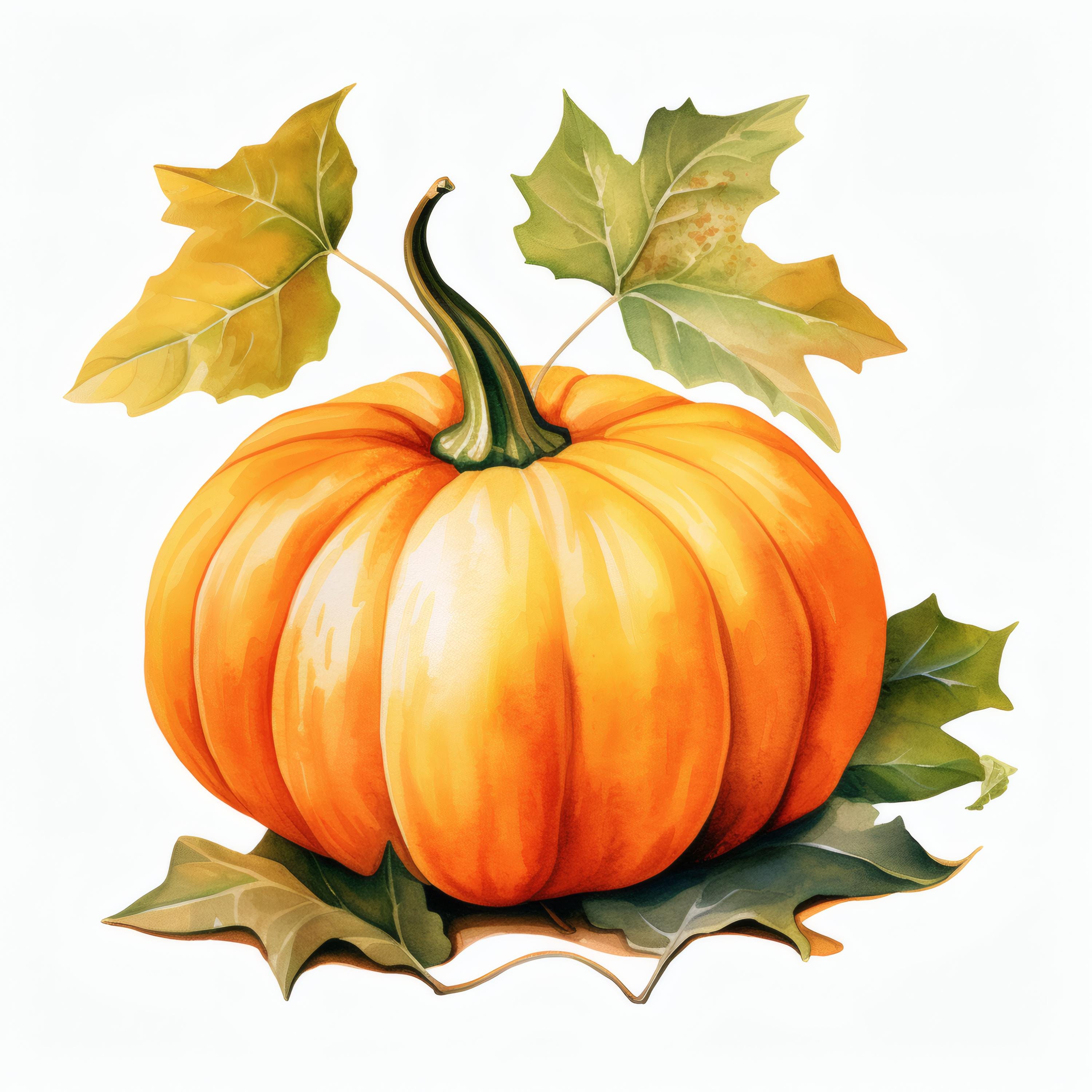 Pumpkin with Leaves Clipart, Autumn Harvest Images, 10 Watercolor Clip Art, Printable JPGs, Instant Download, Commercial Use, Paper craft