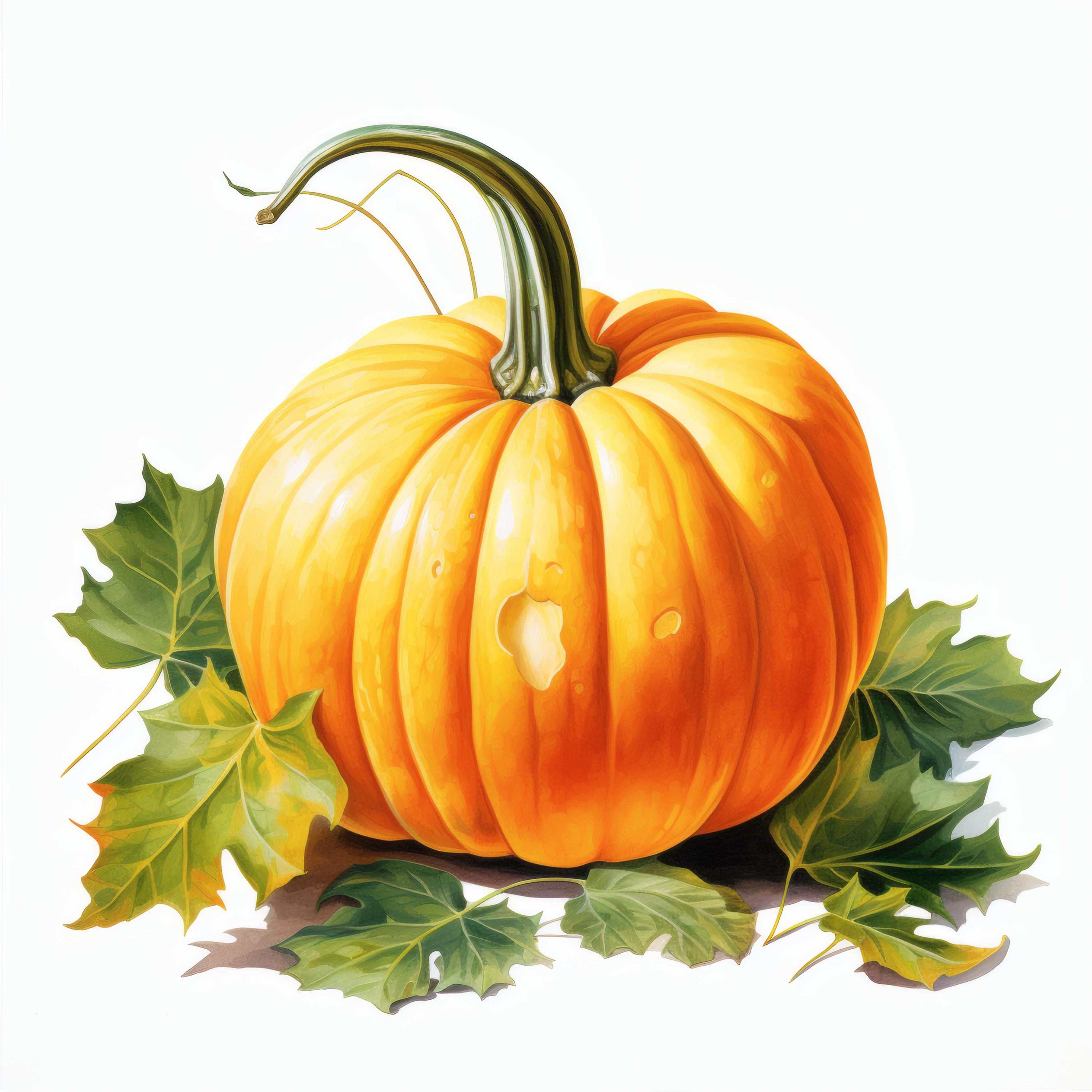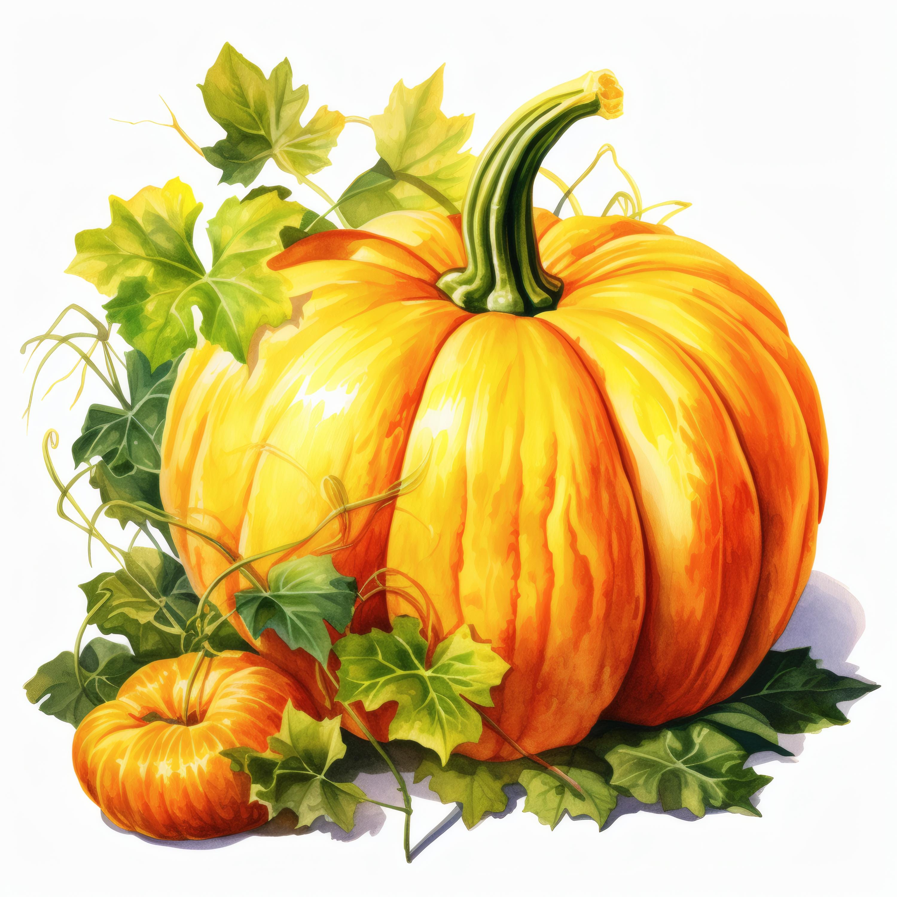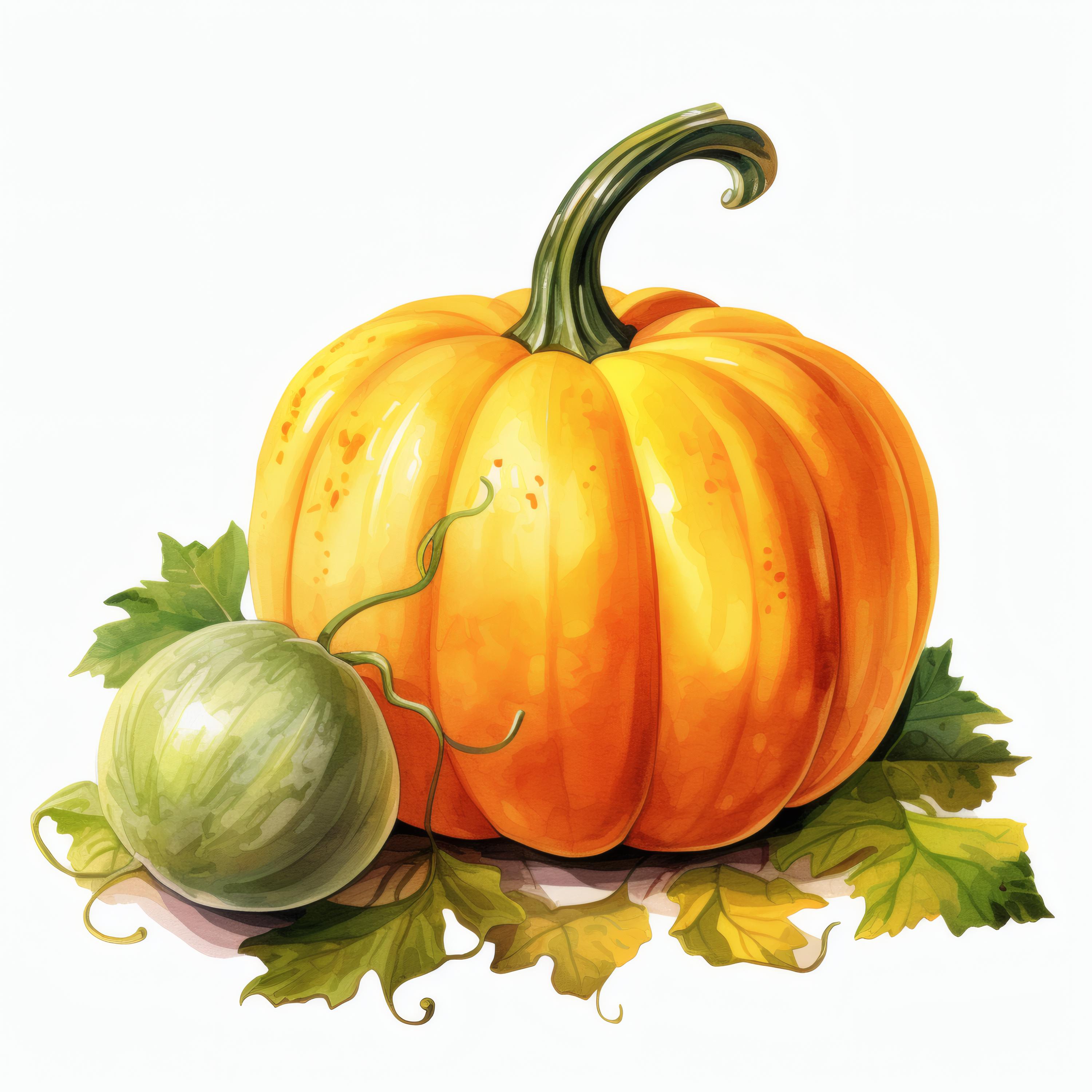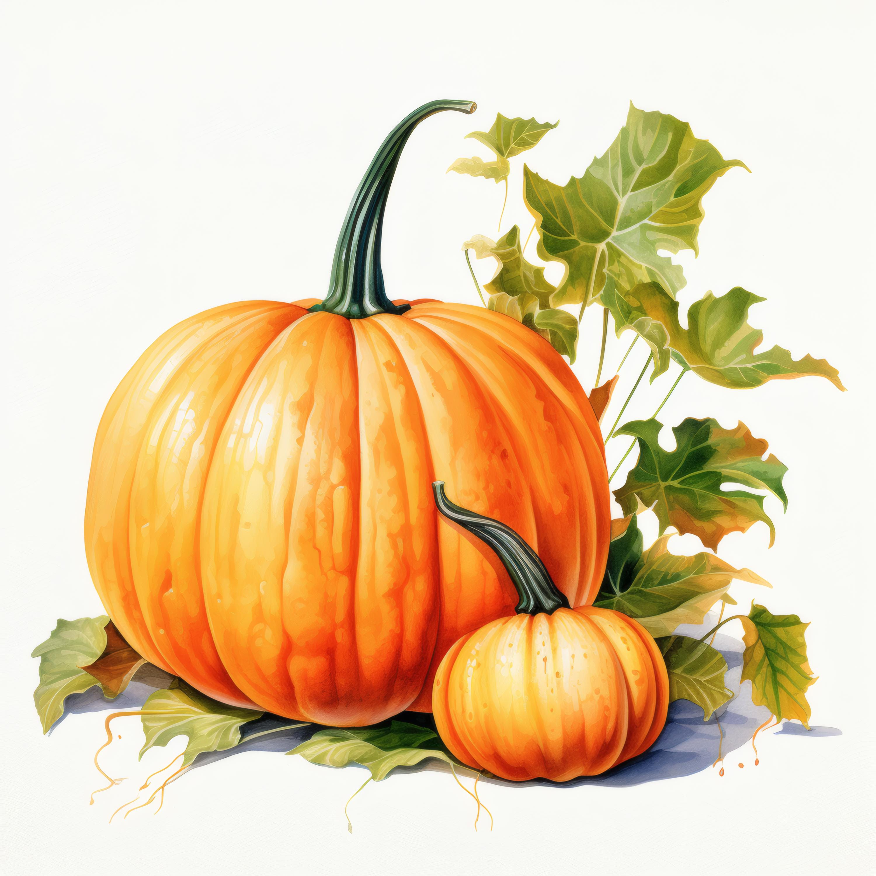 Pumpkin with Leaves Clipart, Autumn Harvest Images, 10 Watercolor Clip Art, Printable JPGs, Instant Download, Commercial Use, Paper craft