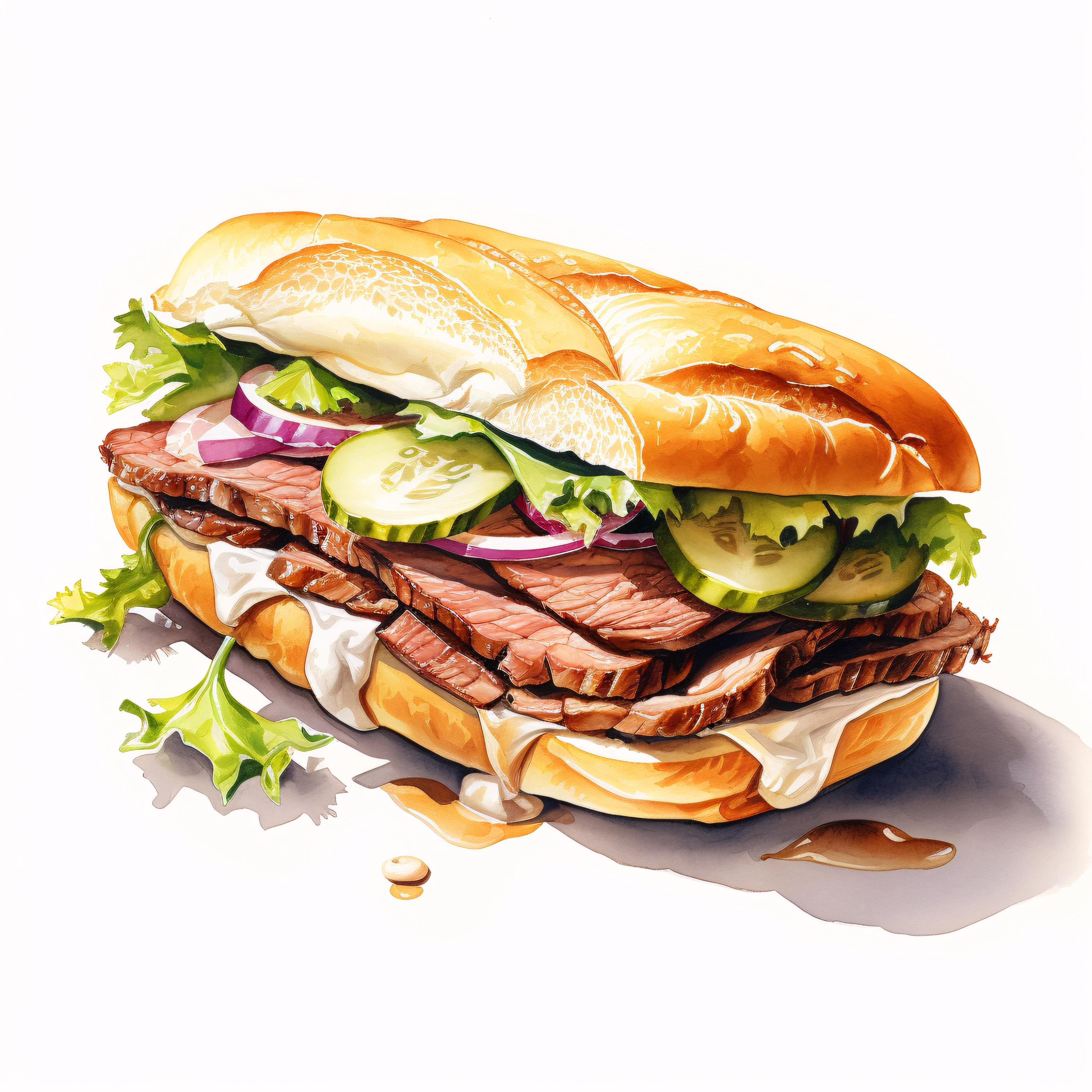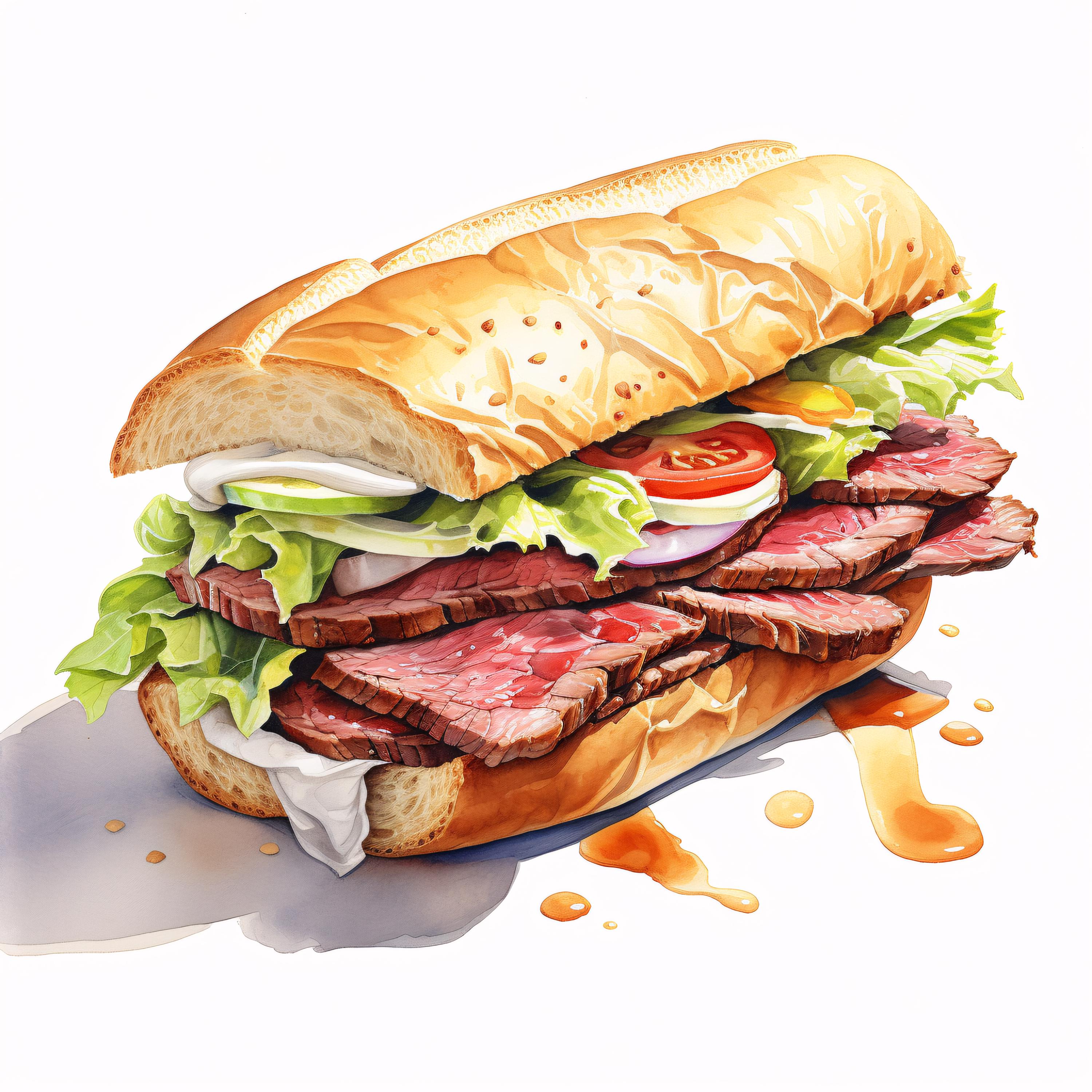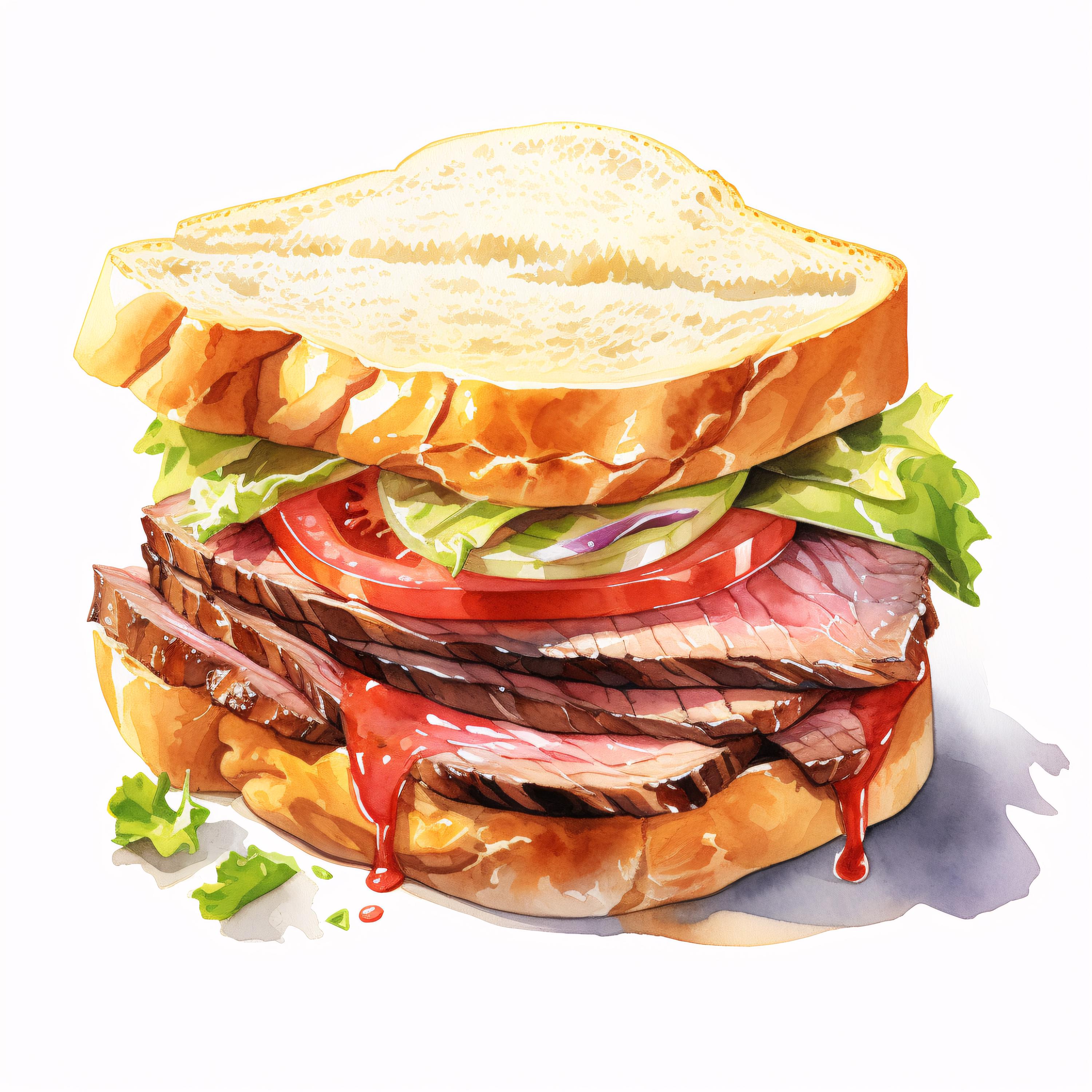 Roast Beef Sandwich Clipart, Food Illustration Images, 10 Watercolor Clip Art, Printable JPGs, Instant Download, Commercial Use, Paper craft