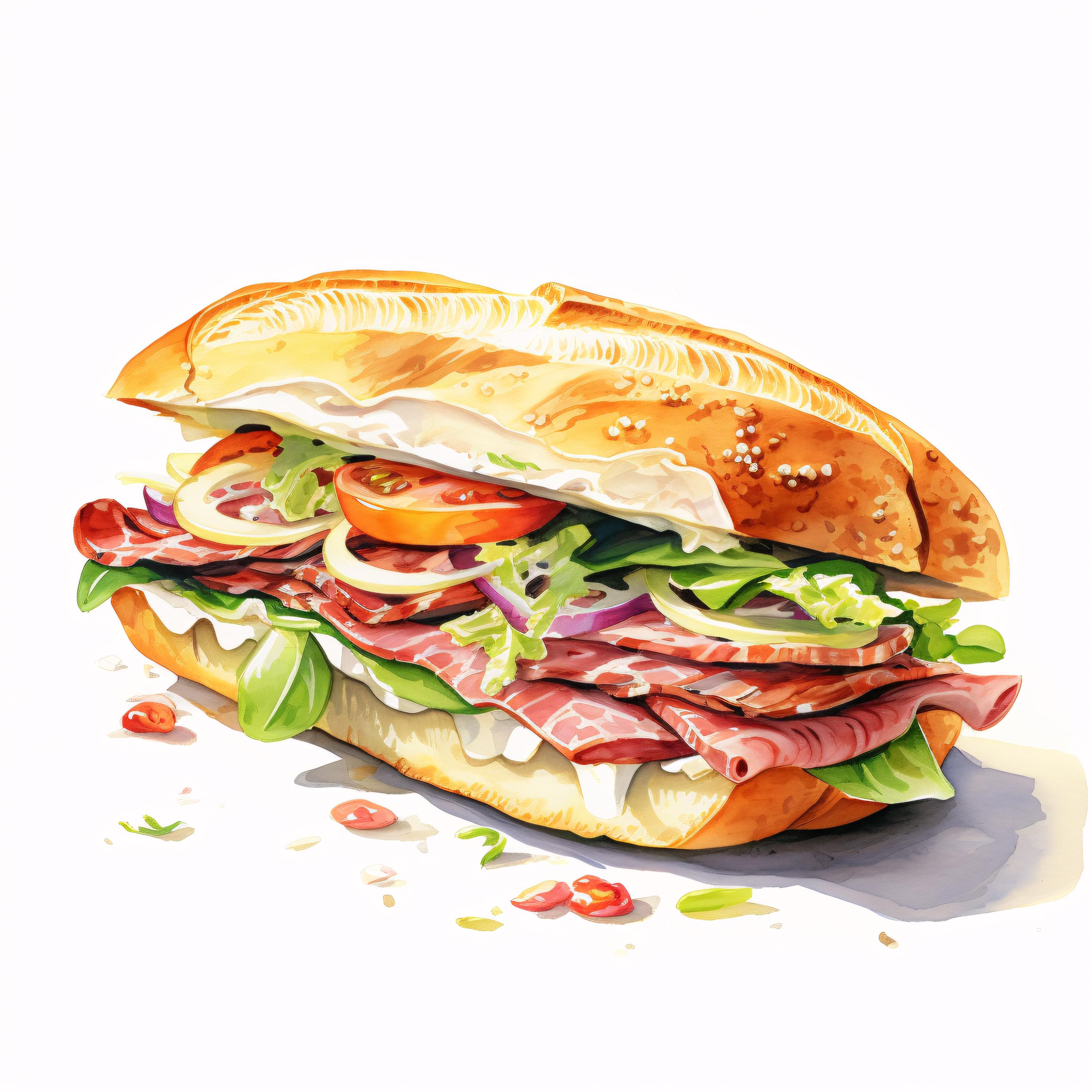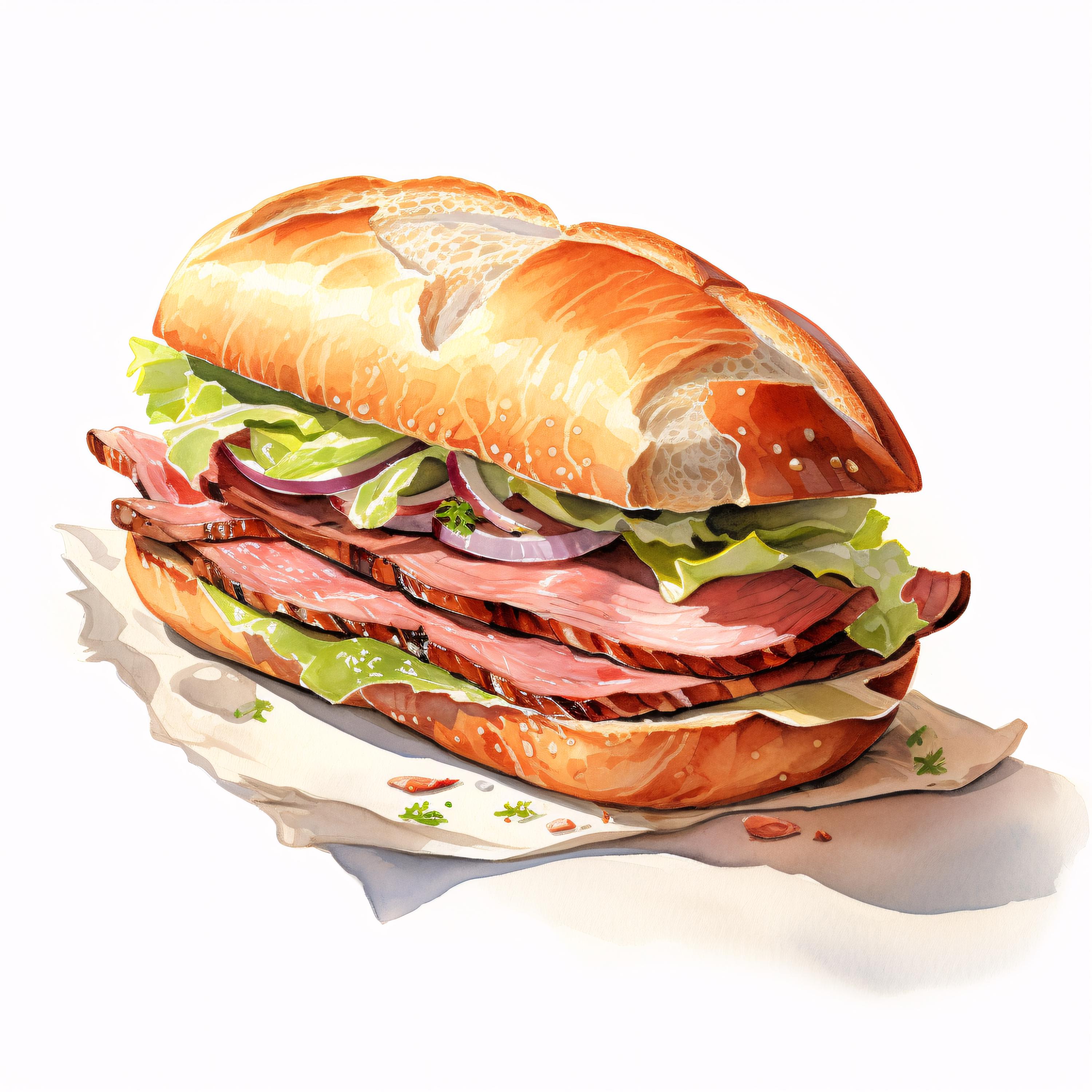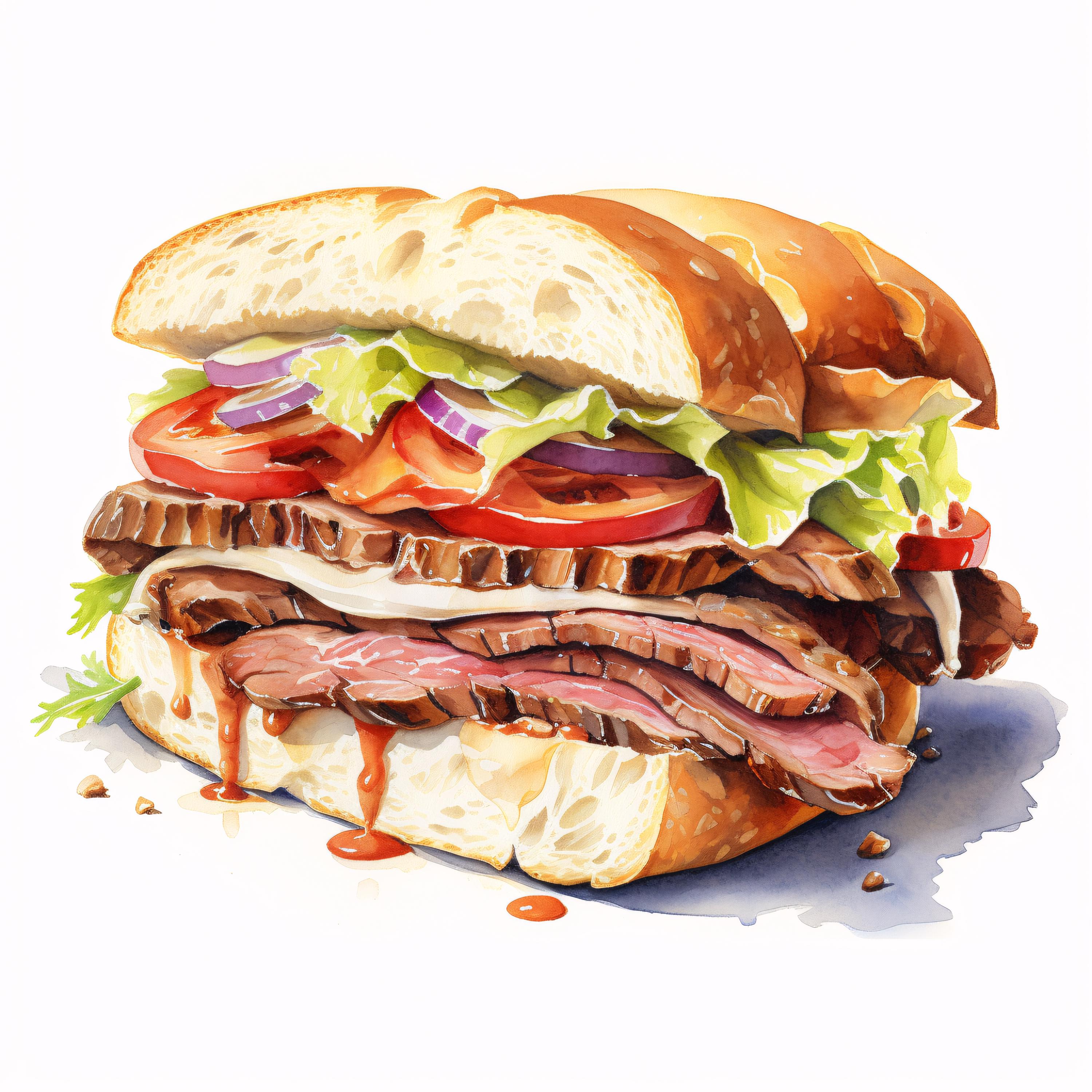 Roast Beef Sandwich Clipart, Food Illustration Images, 10 Watercolor Clip Art, Printable JPGs, Instant Download, Commercial Use, Paper craft