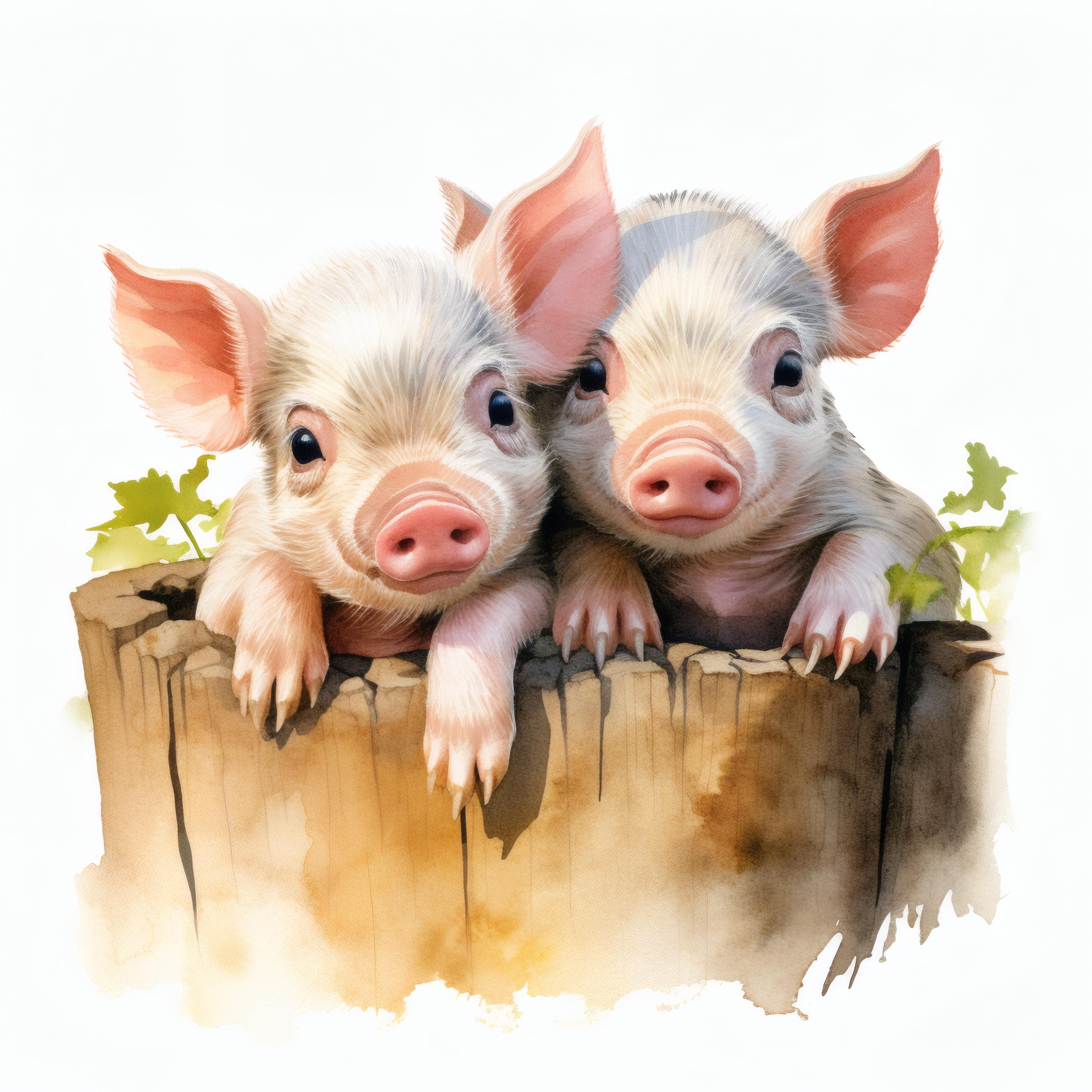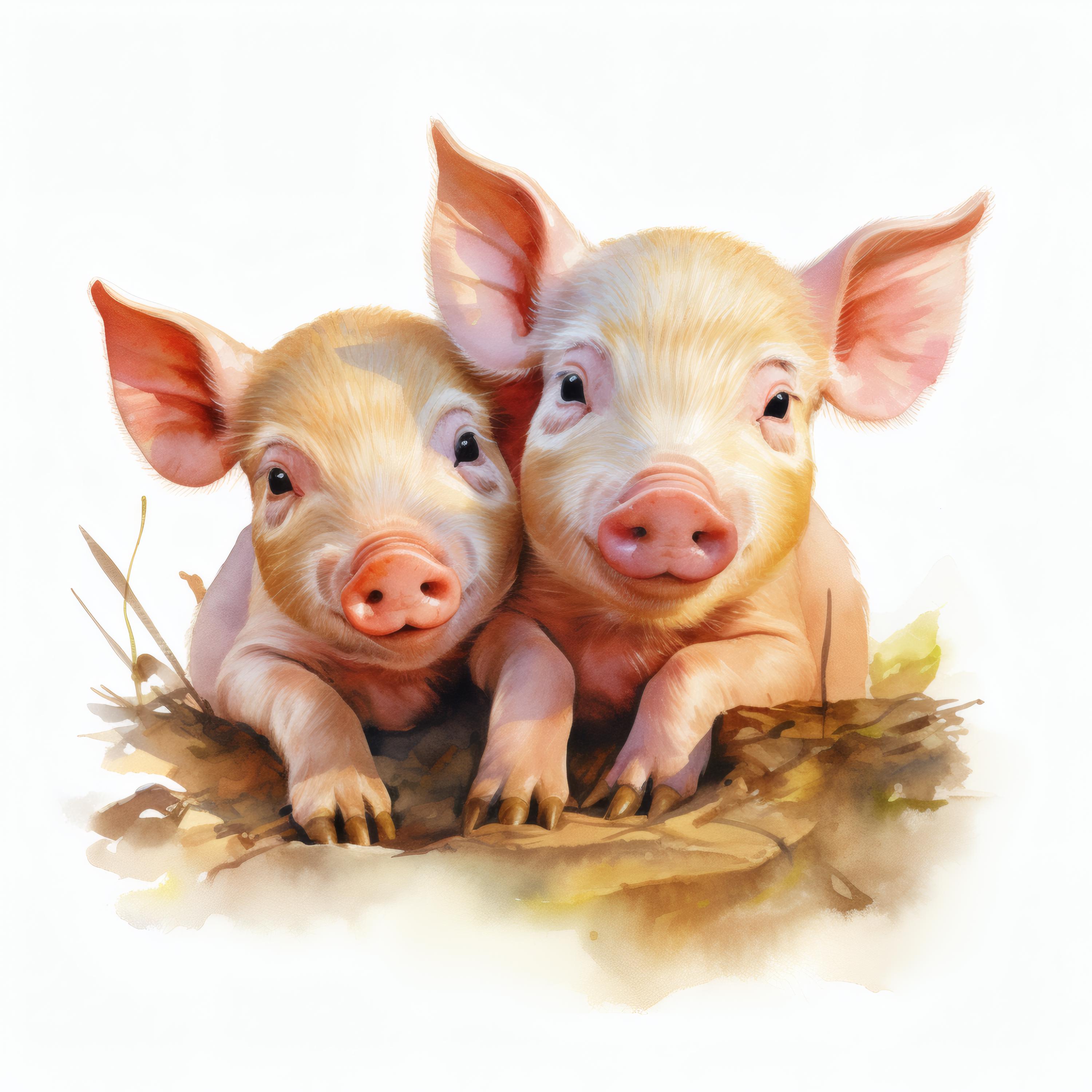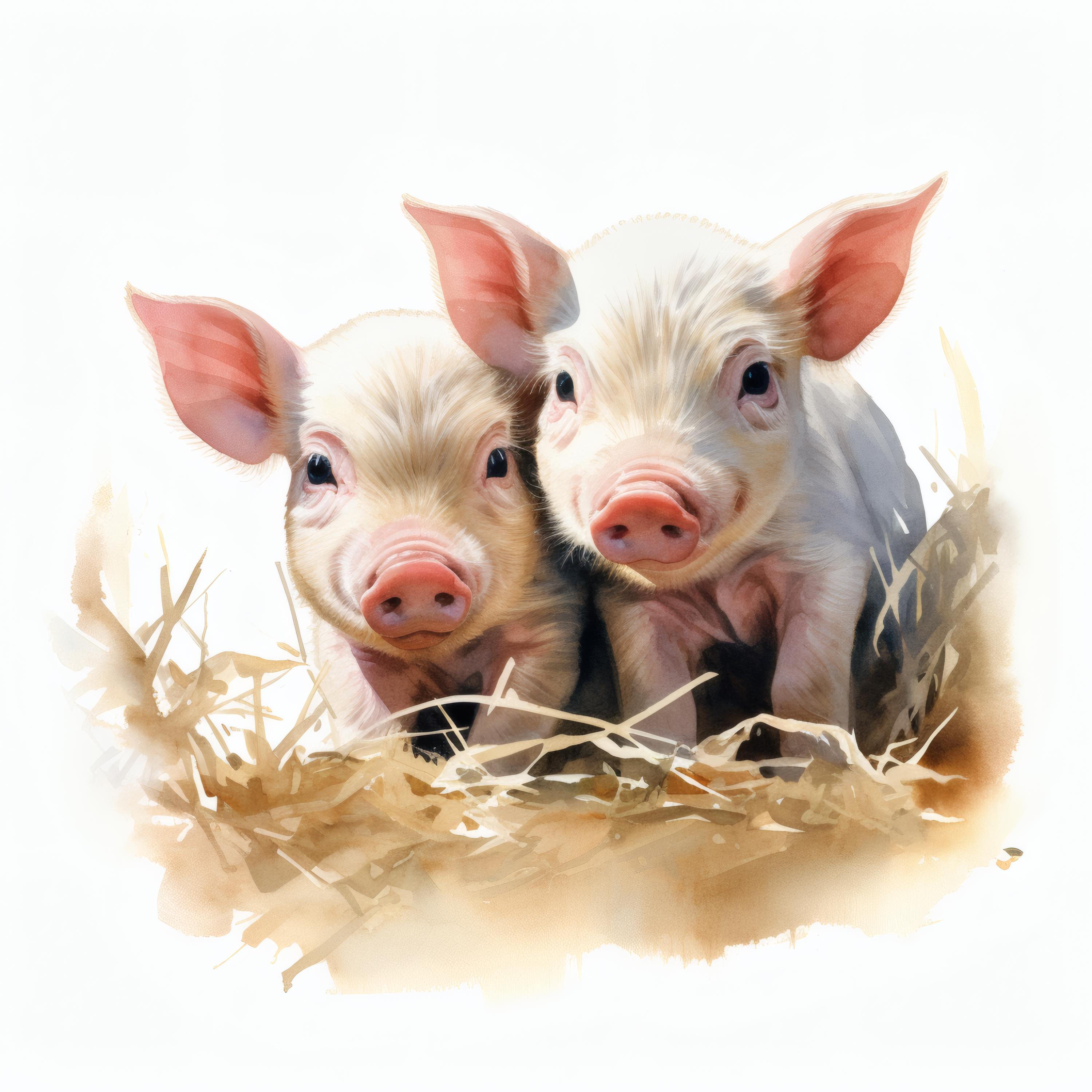 Cute Piglets Clipart, Farm Animal Images, 10 Watercolor Clip Art, Printable JPGs, Instant Download, Commercial Use, Paper craft