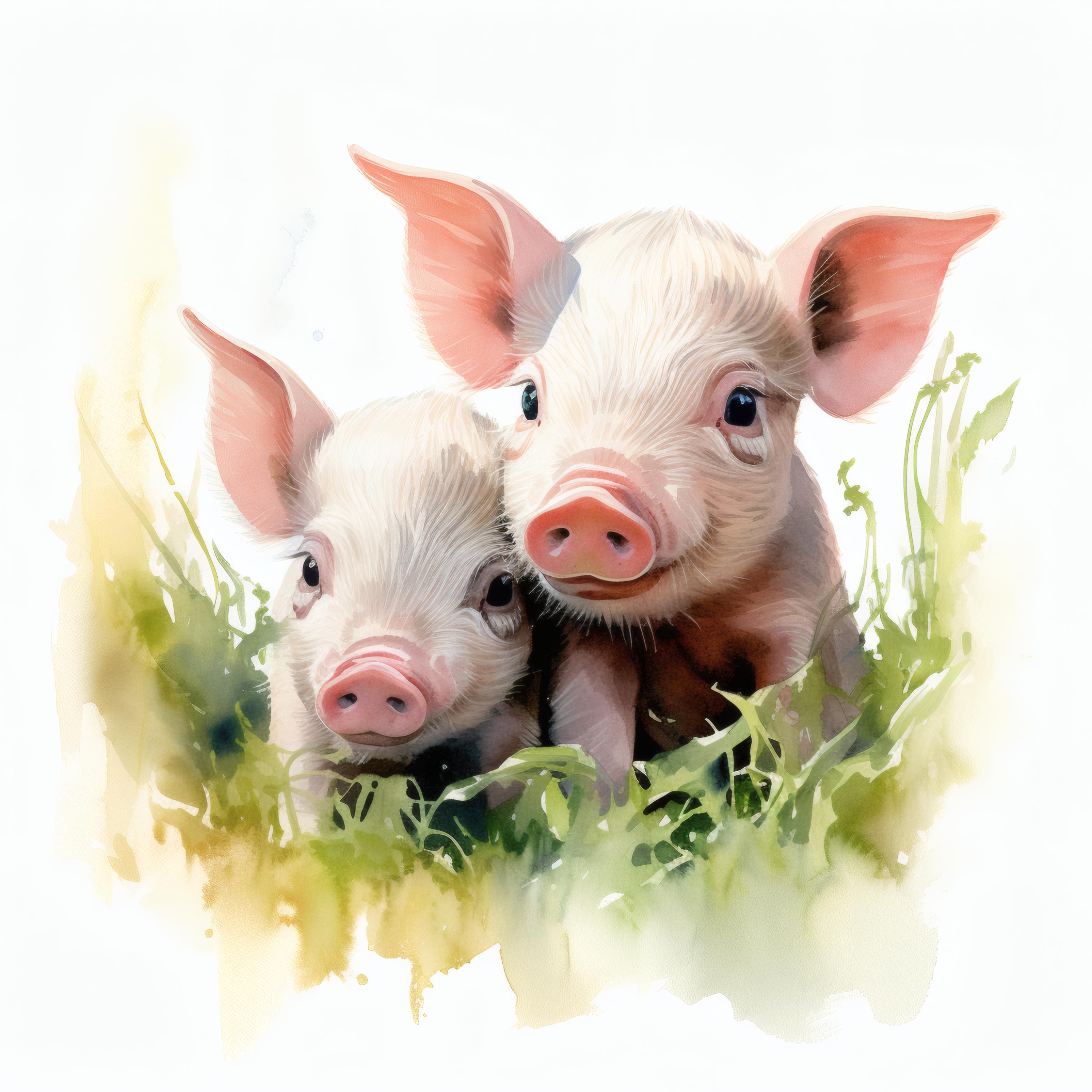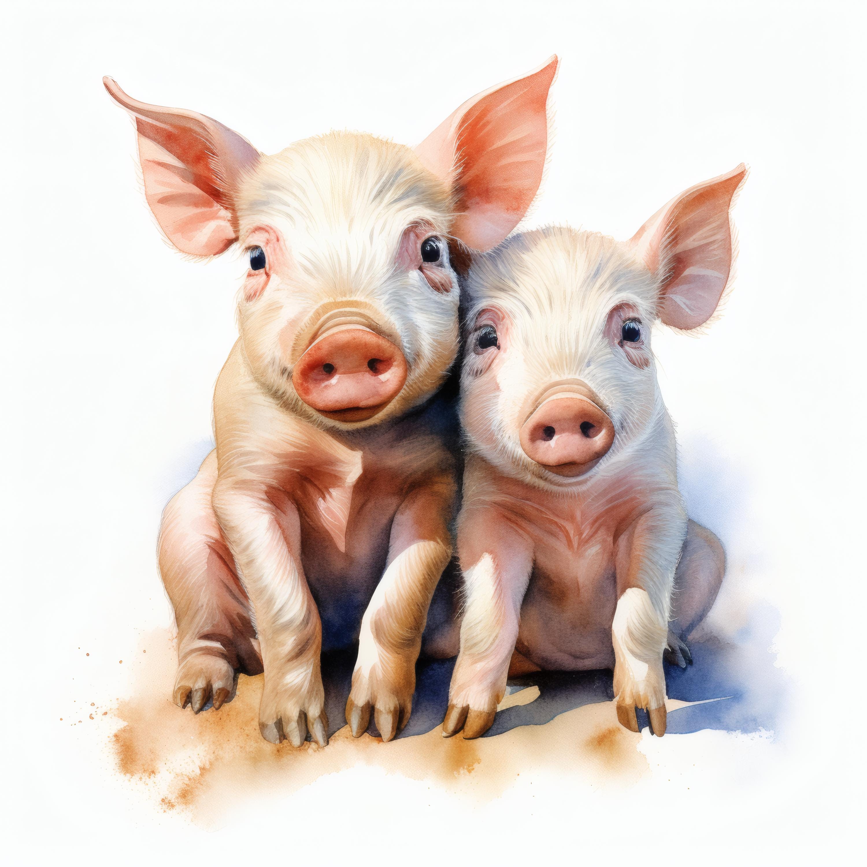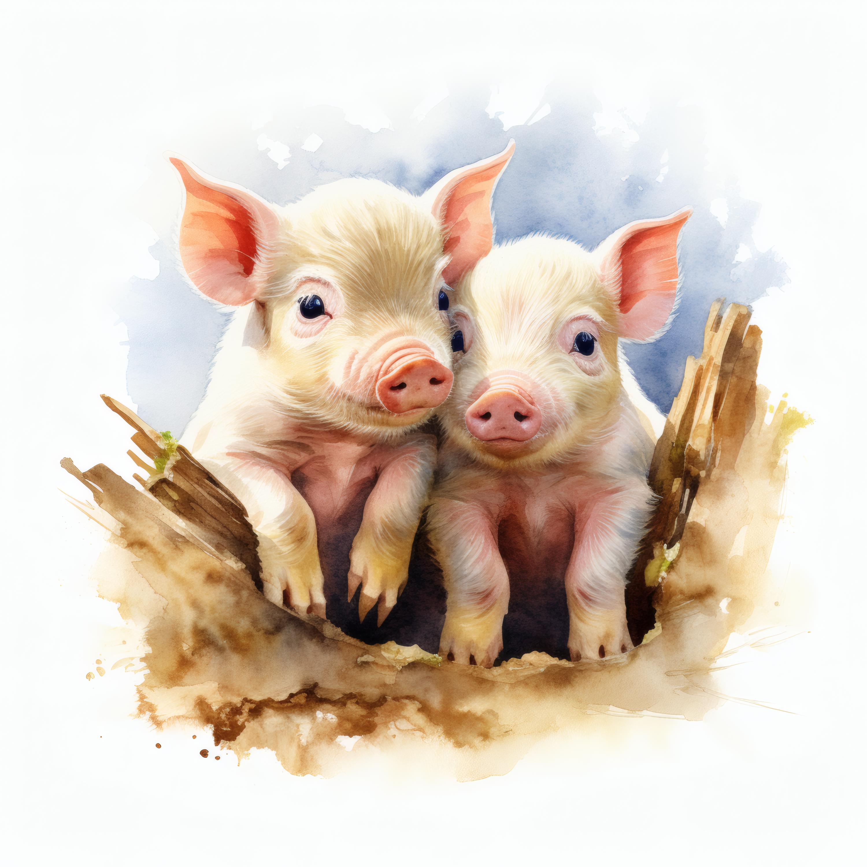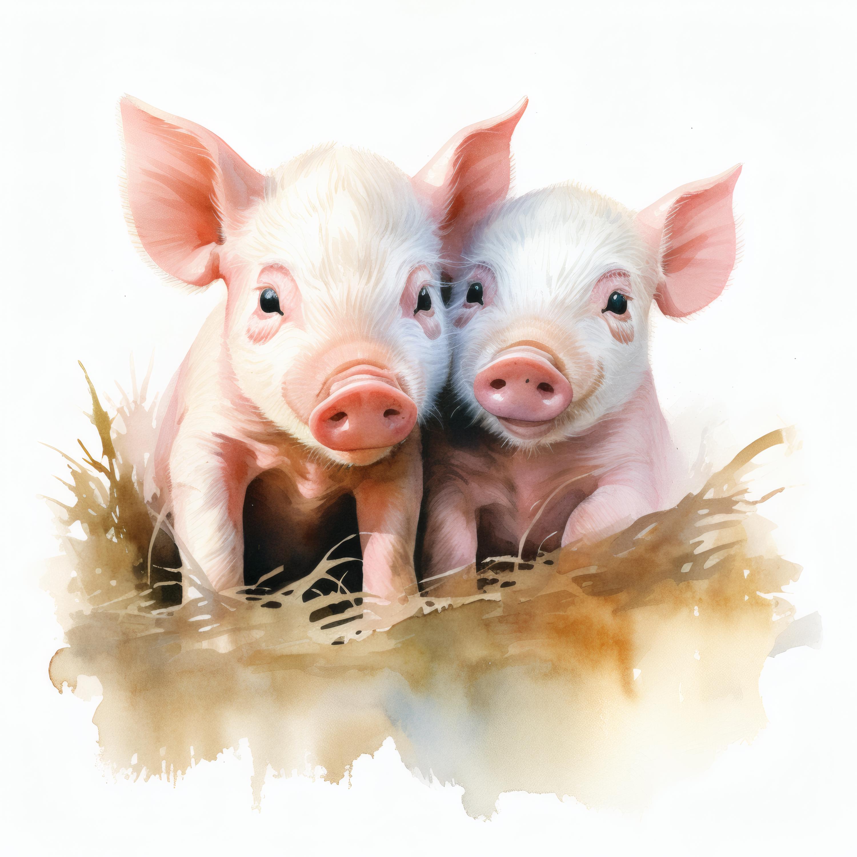 Cute Piglets Clipart, Farm Animal Images, 10 Watercolor Clip Art, Printable JPGs, Instant Download, Commercial Use, Paper craft