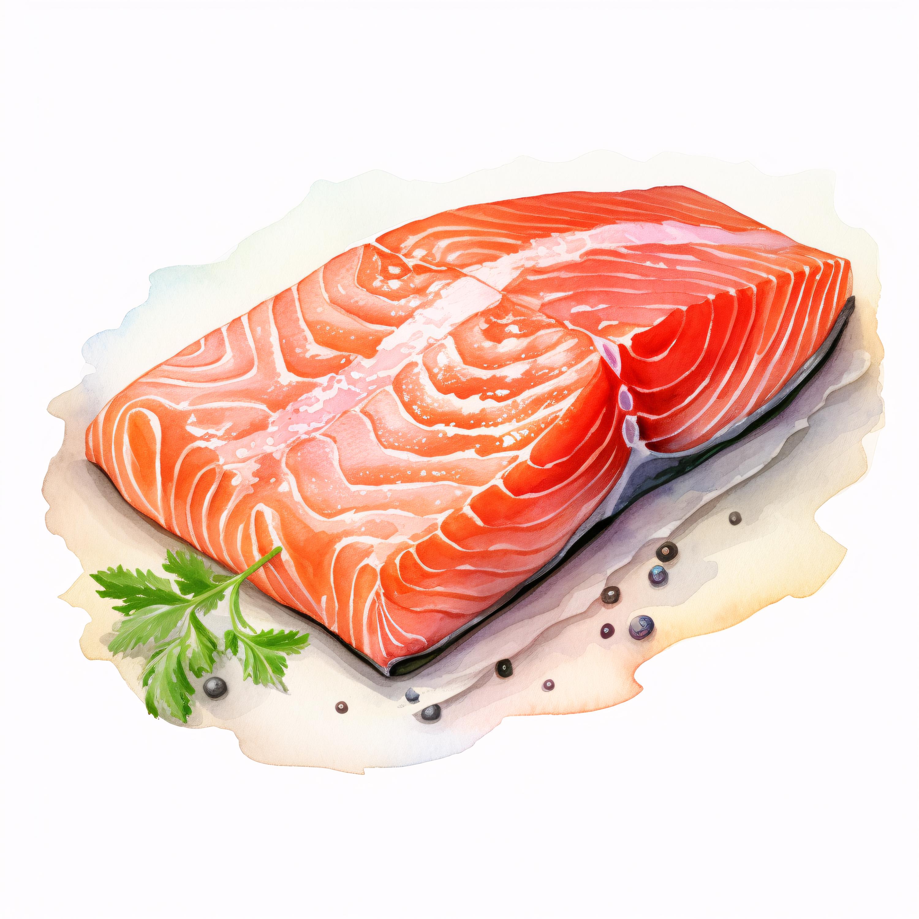 Salmon Fillet Clipart, Fresh Fish Food Images, 10 Watercolor Clip Art, Printable JPGs, Instant Download, Commercial Use, Paper craft