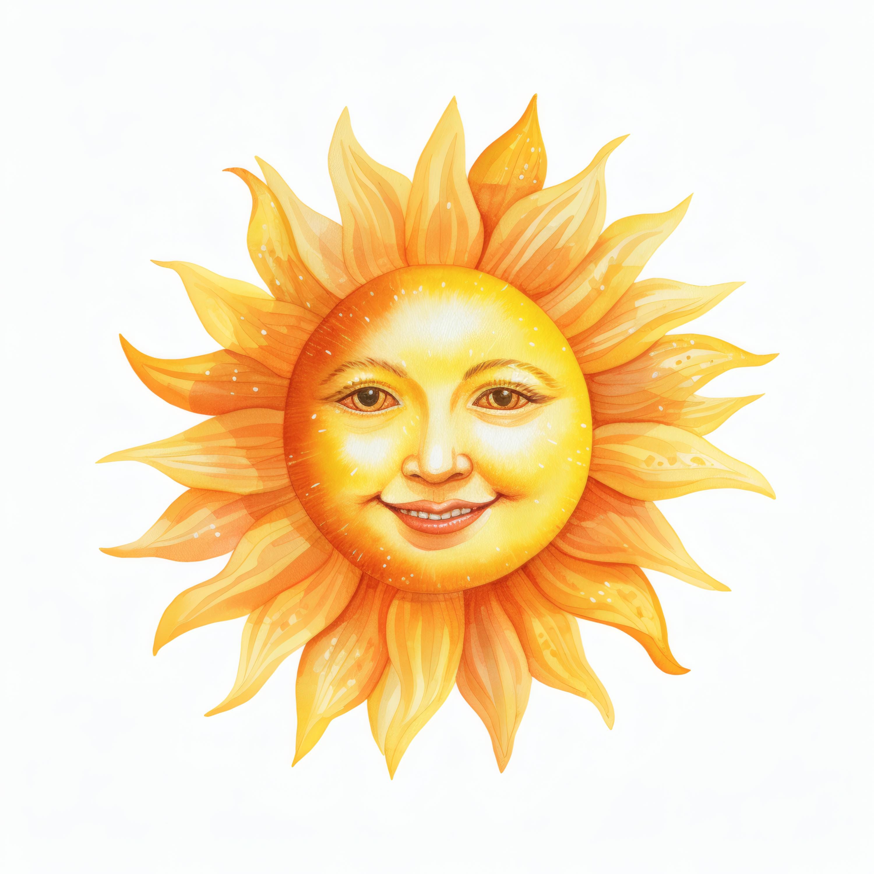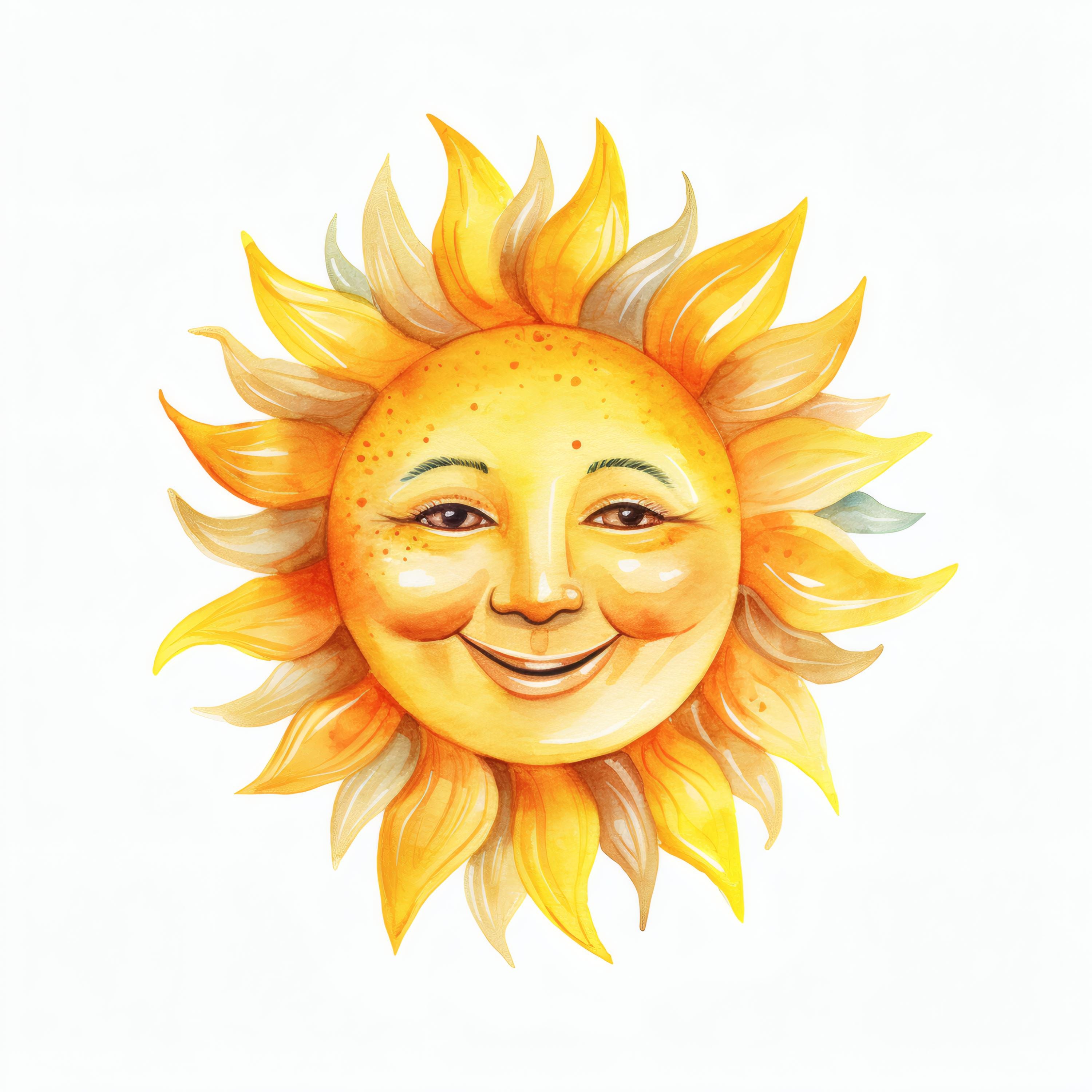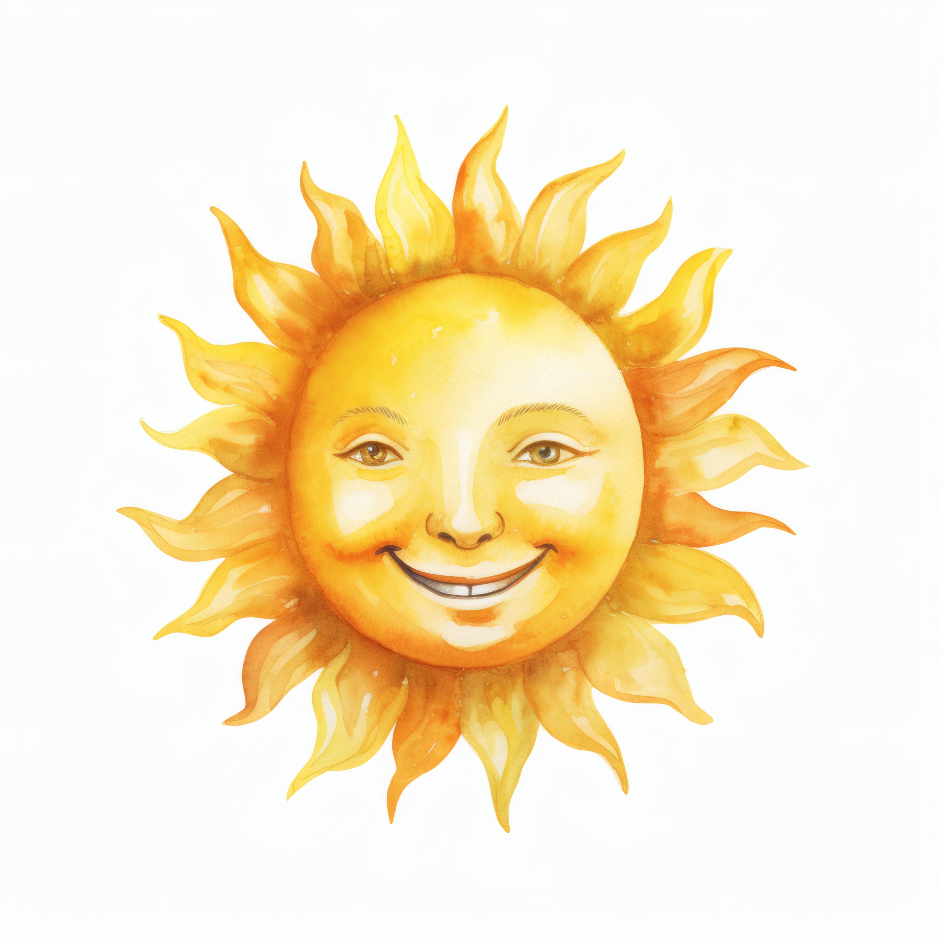 Smiling Sun Clipart, Happy Sunshine Images, 10 Watercolor Clip Art, Printable JPGs, Instant Download, Commercial Use, Paper craft