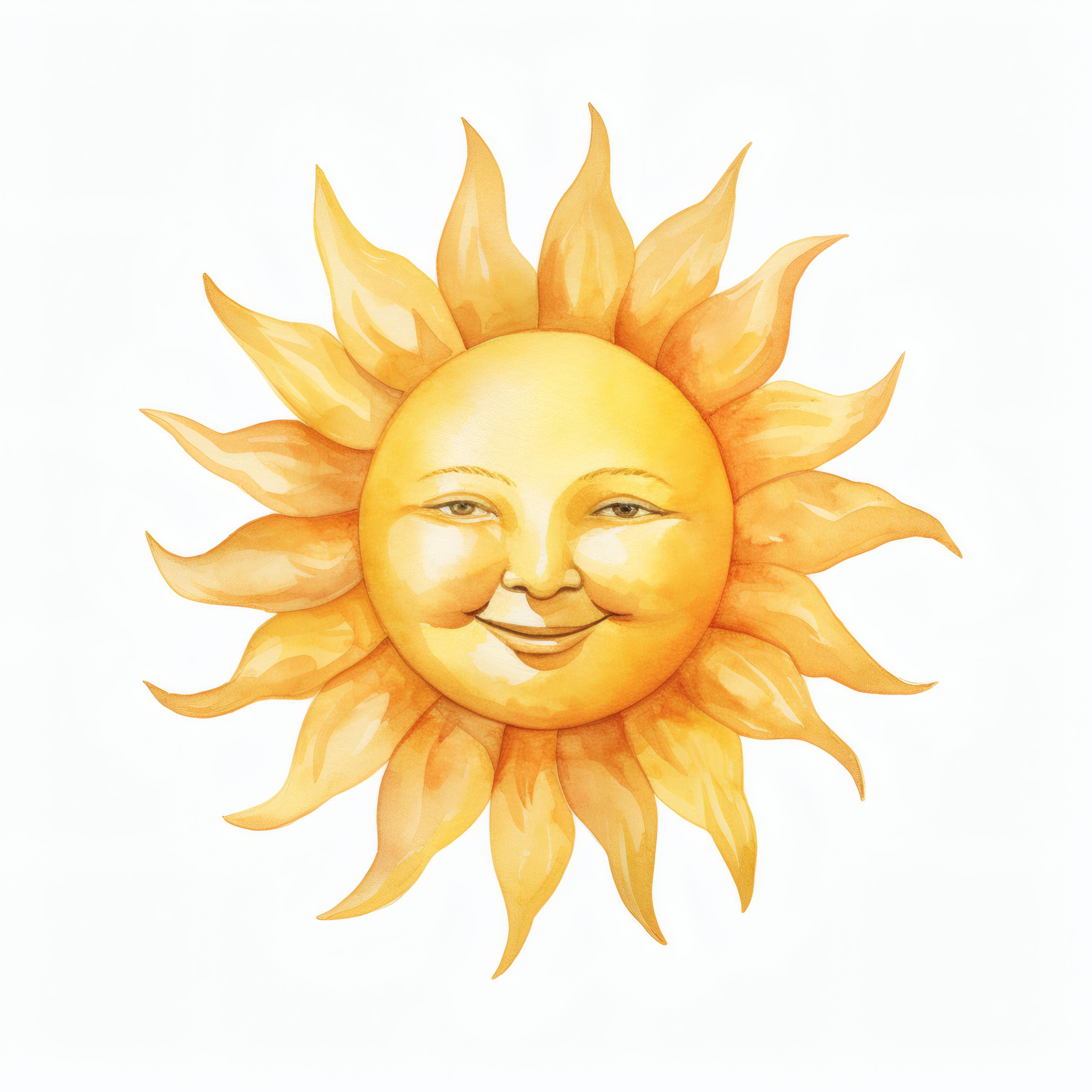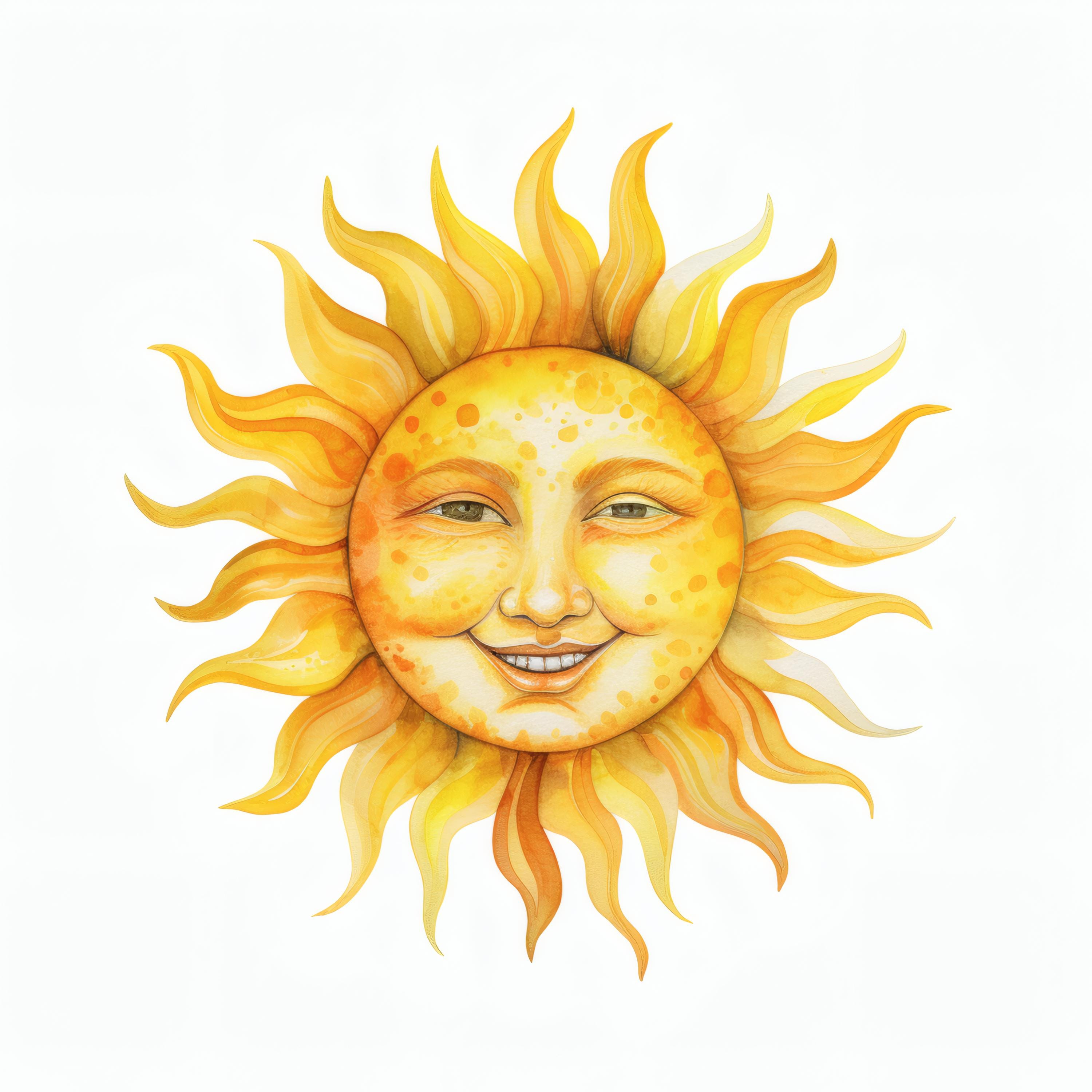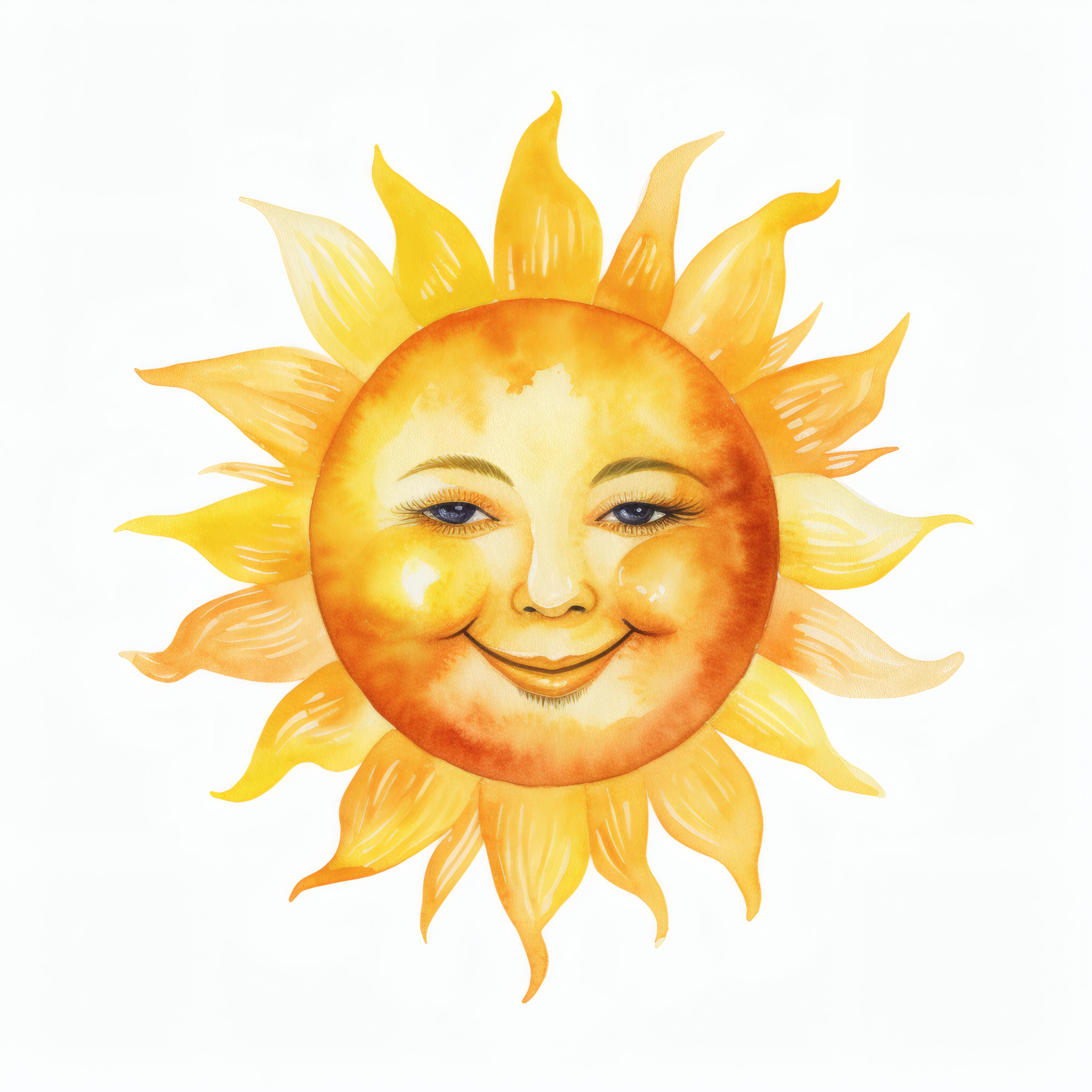 Smiling Sun Clipart, Happy Sunshine Images, 10 Watercolor Clip Art, Printable JPGs, Instant Download, Commercial Use, Paper craft