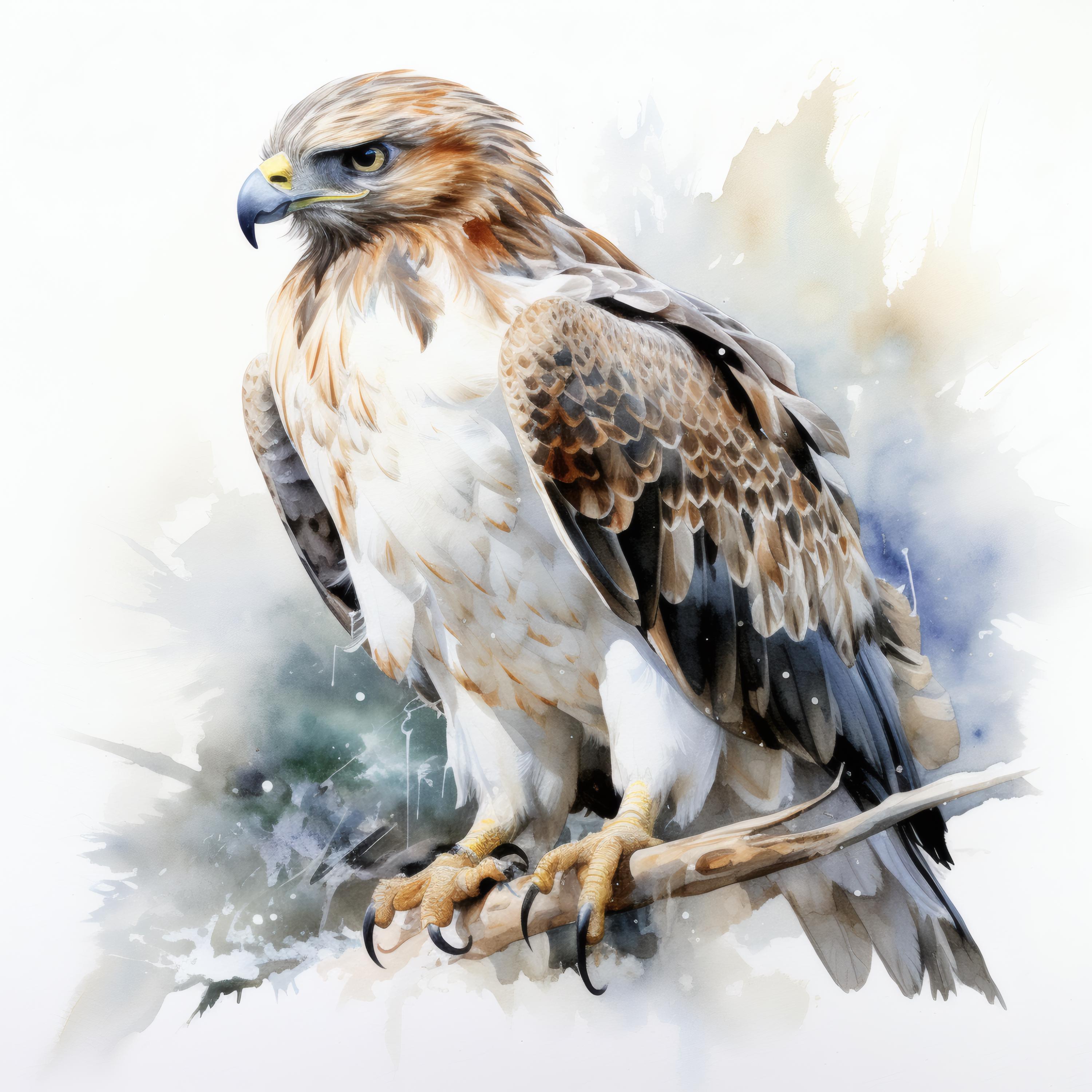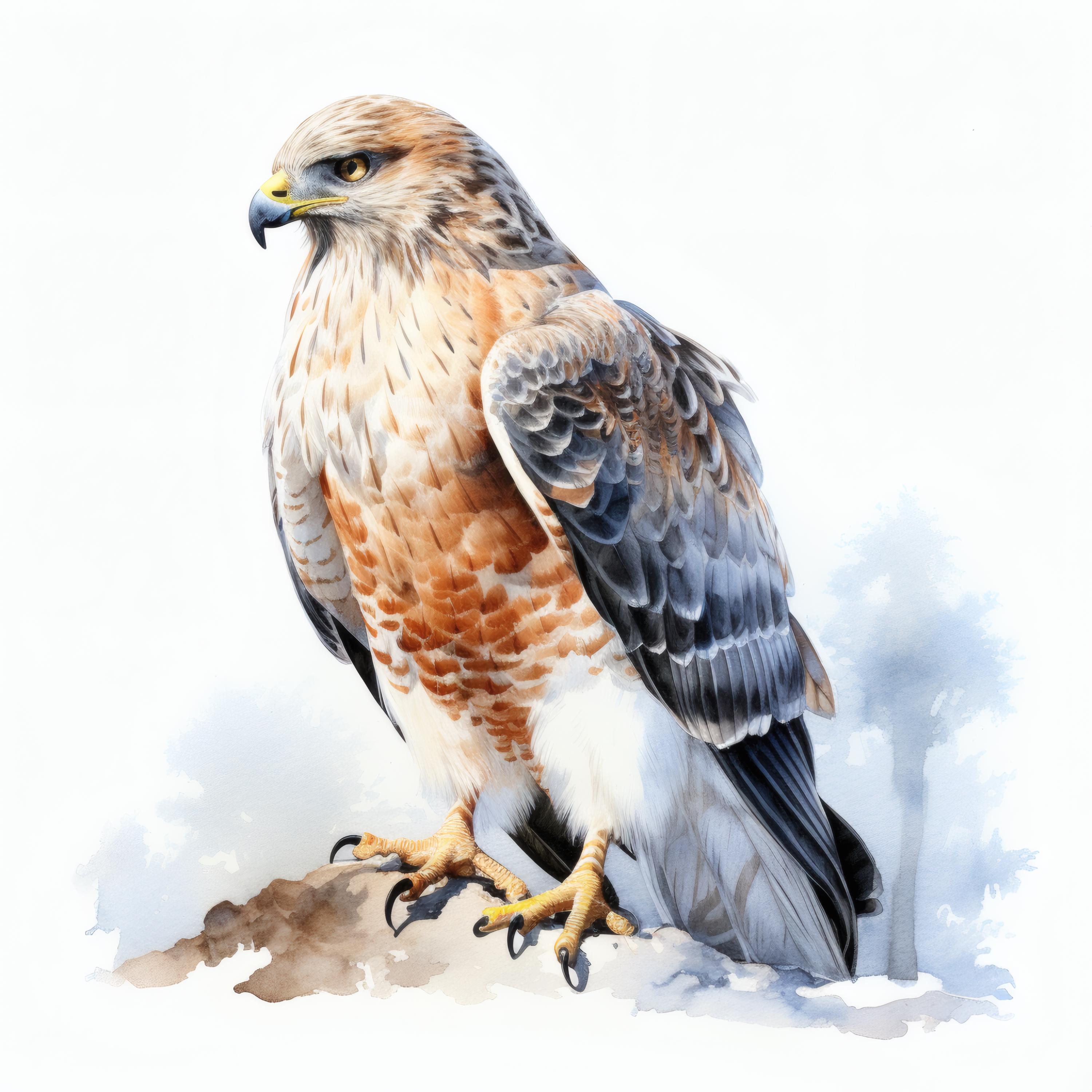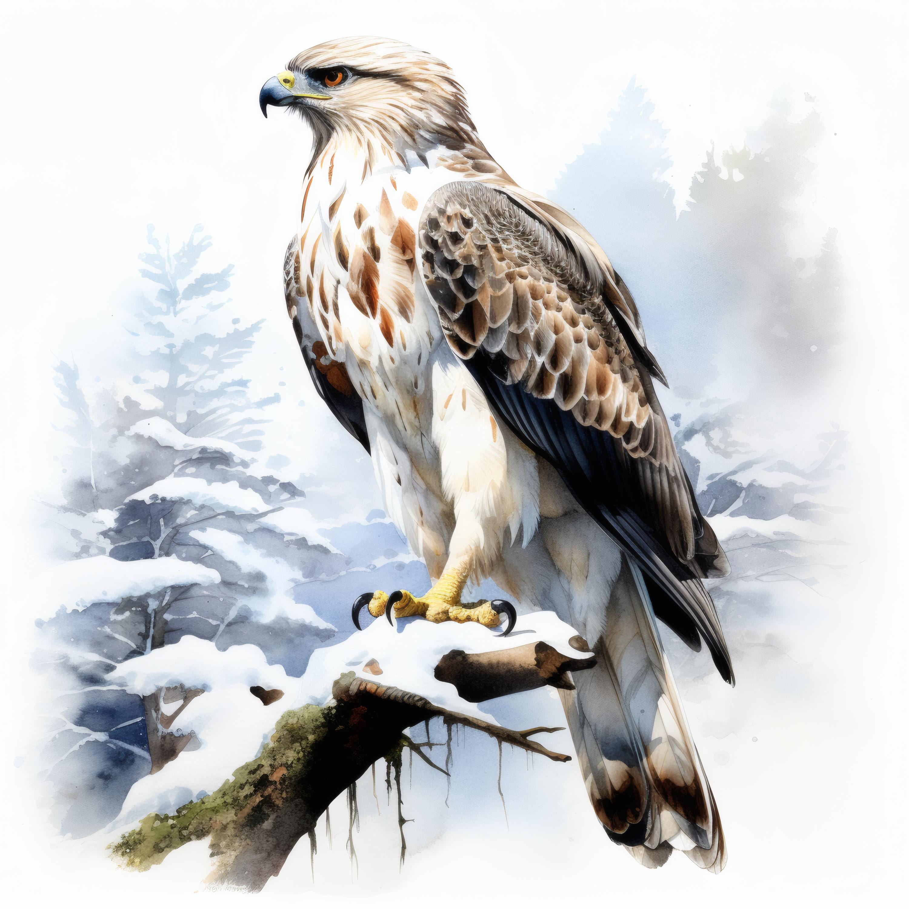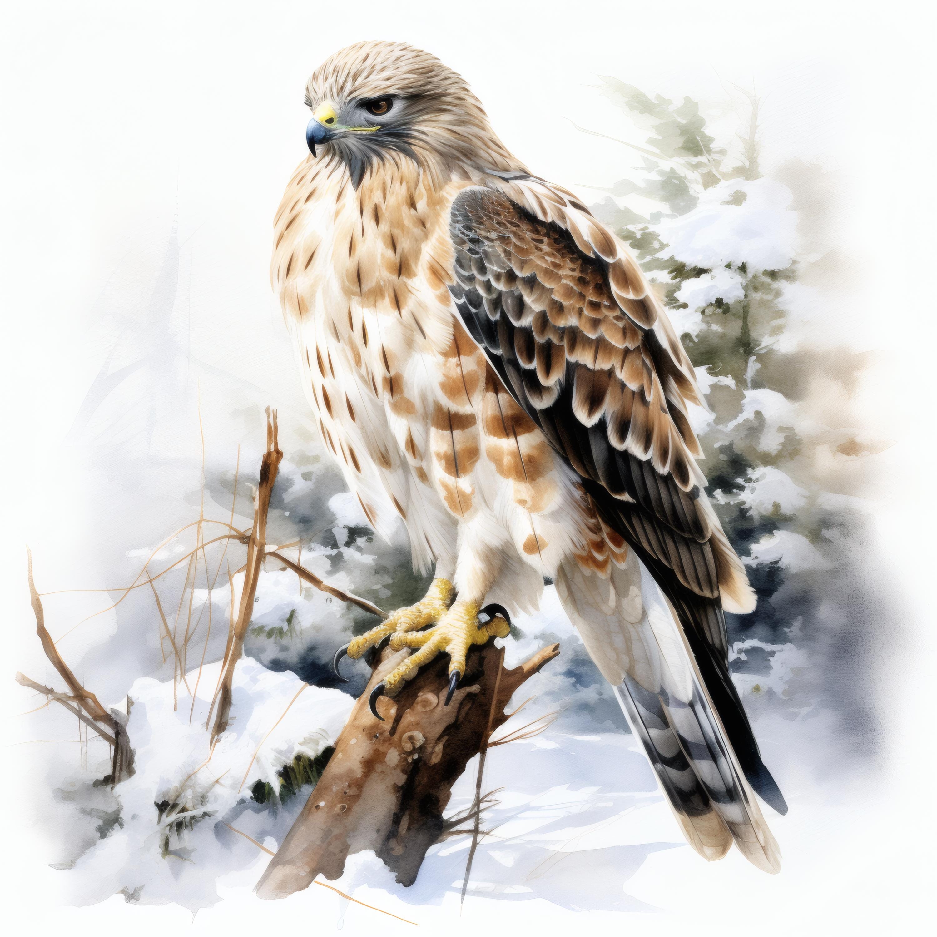 Snow Hawk Clipart, Winter Bird of Prey Images, 10 Watercolor Clip Art, Printable JPGs, Instant Download, Commercial Use, Paper craft