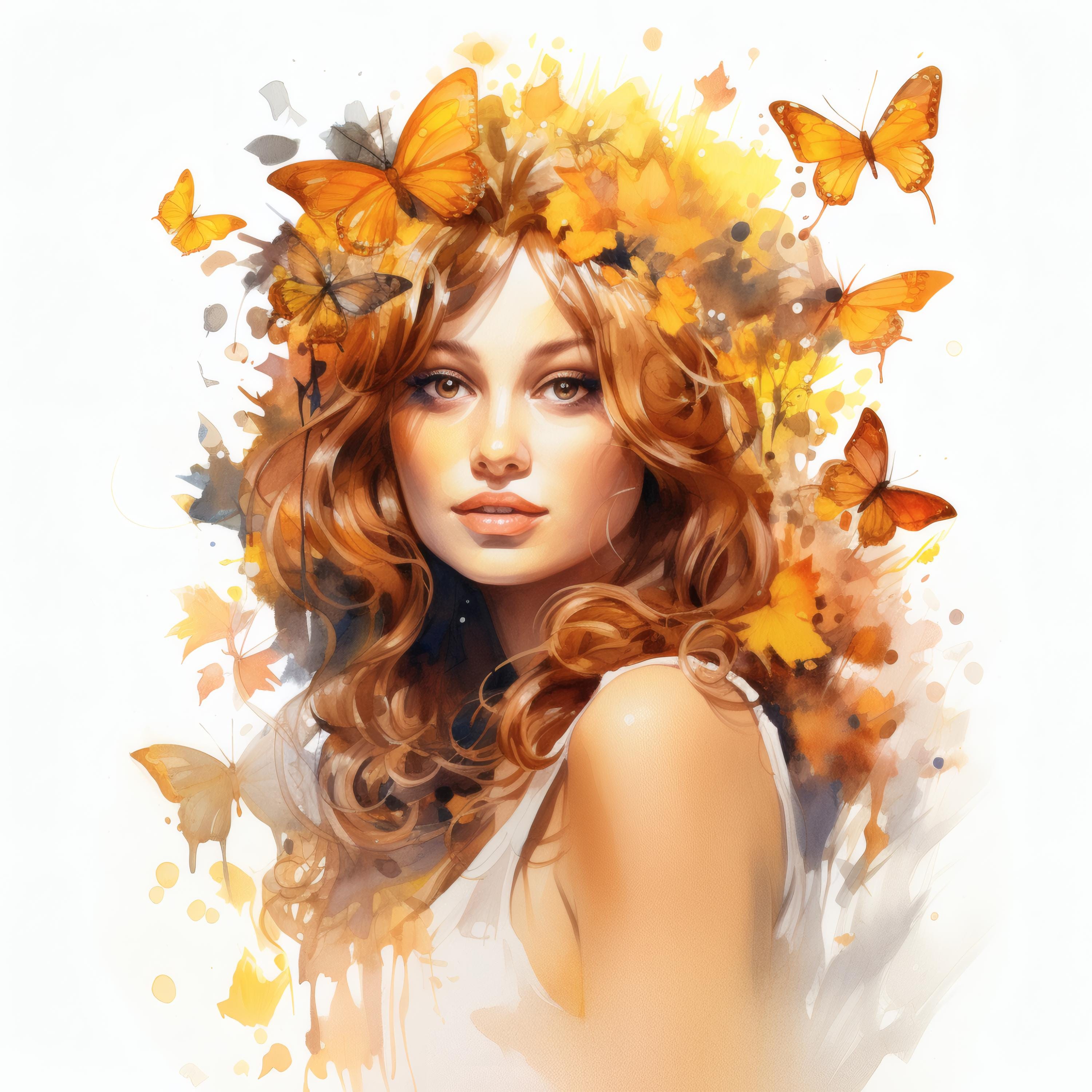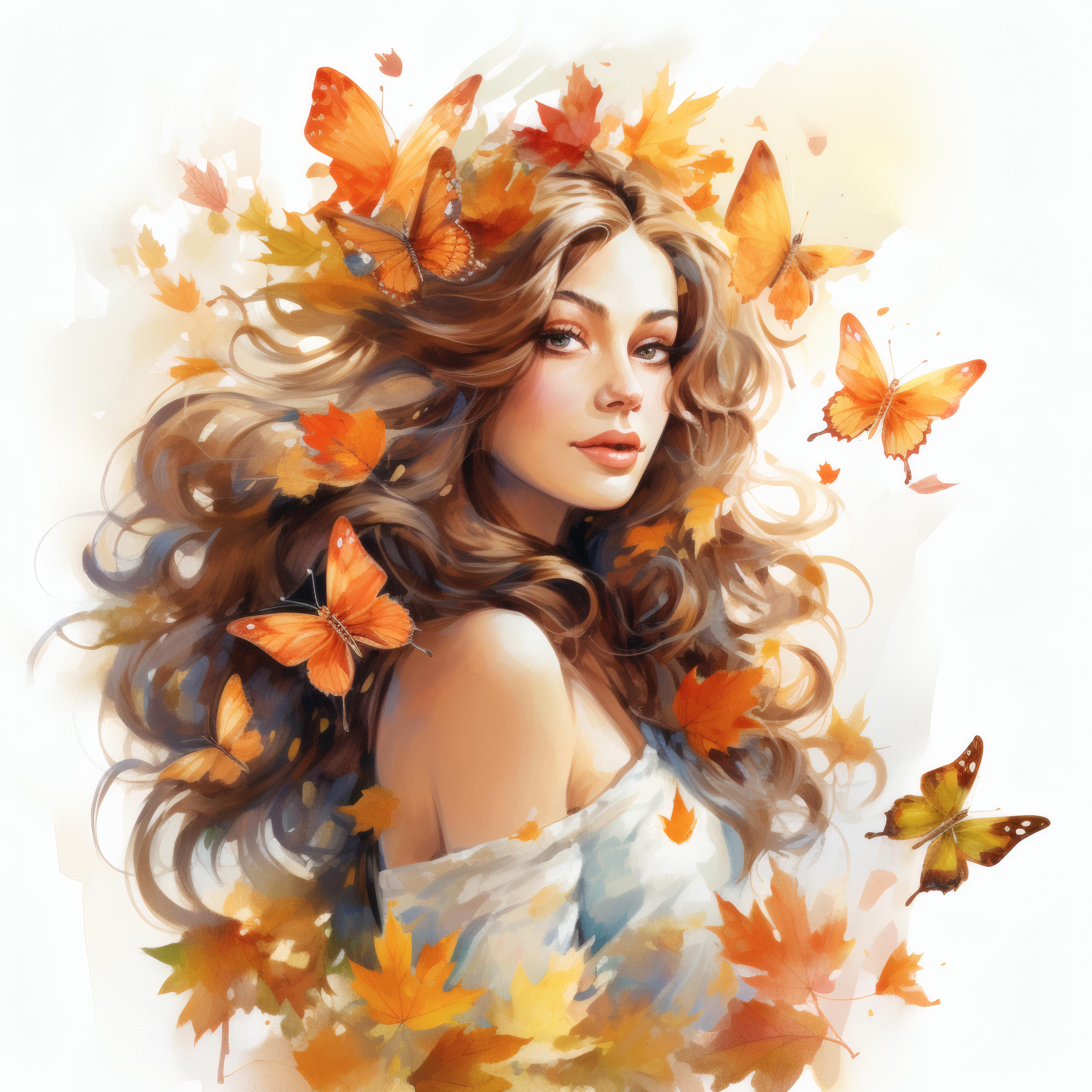 Autumn Fairy Clipart, Fairy with Butterflies Images, 10 Watercolor Clip Art, Printable JPGs, Instant Download