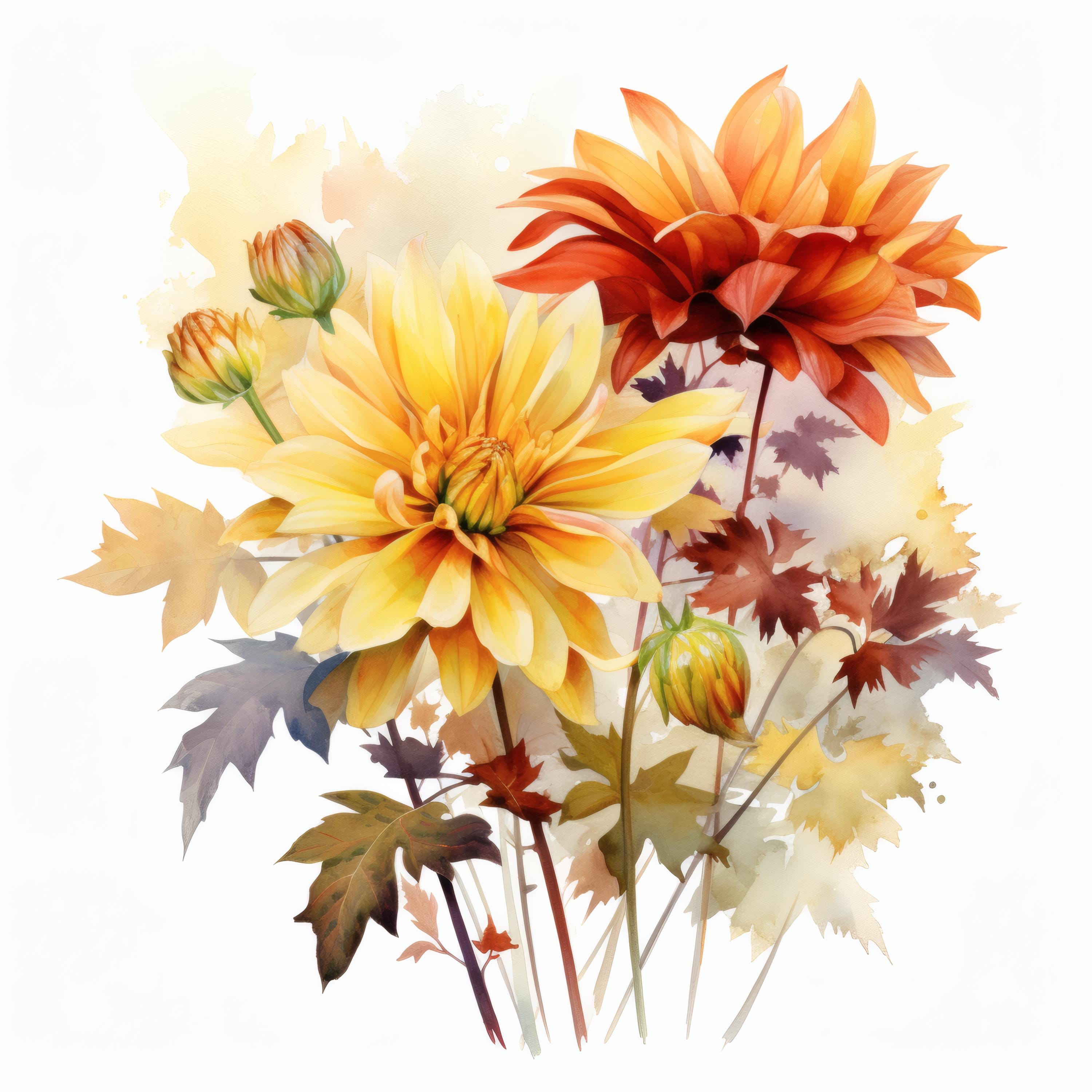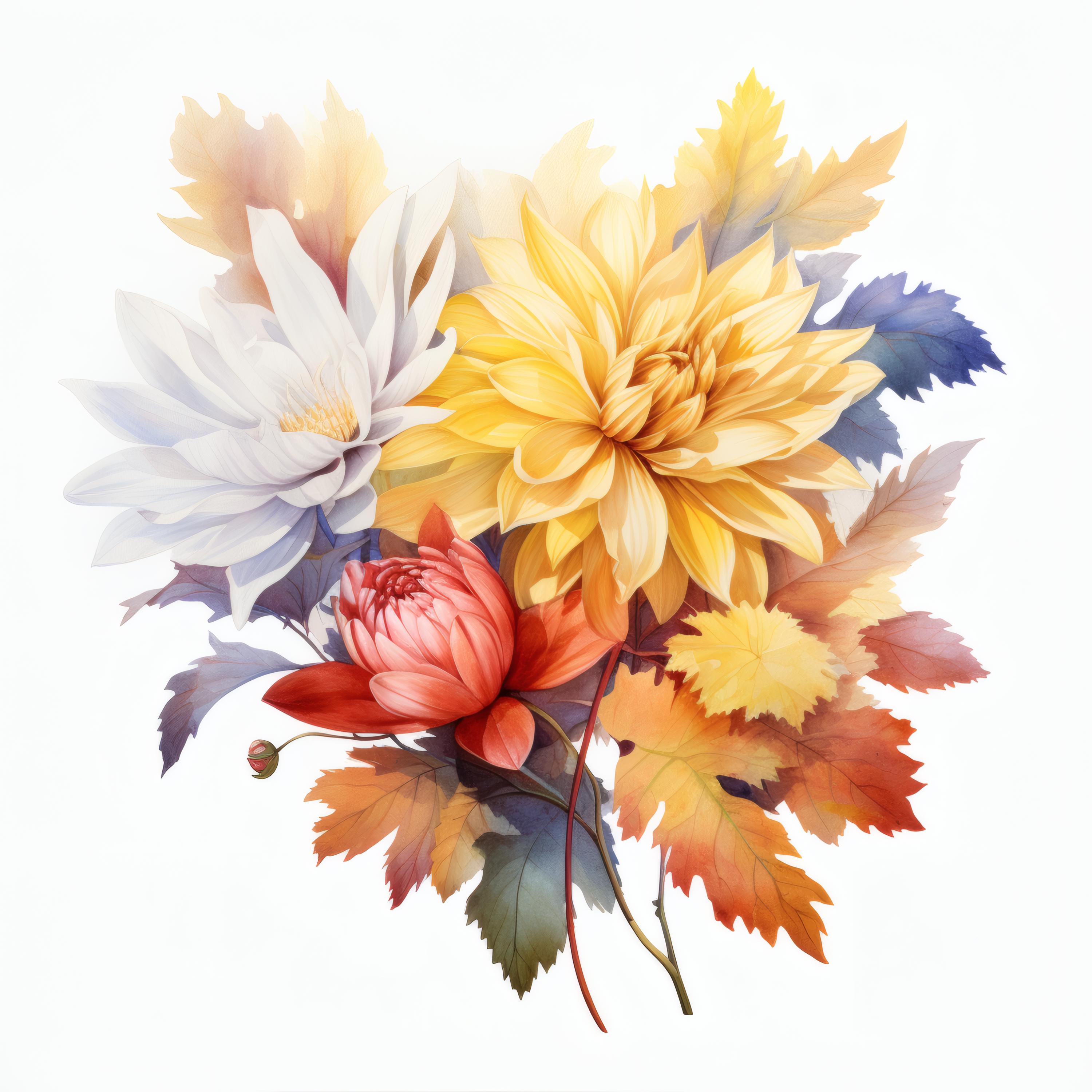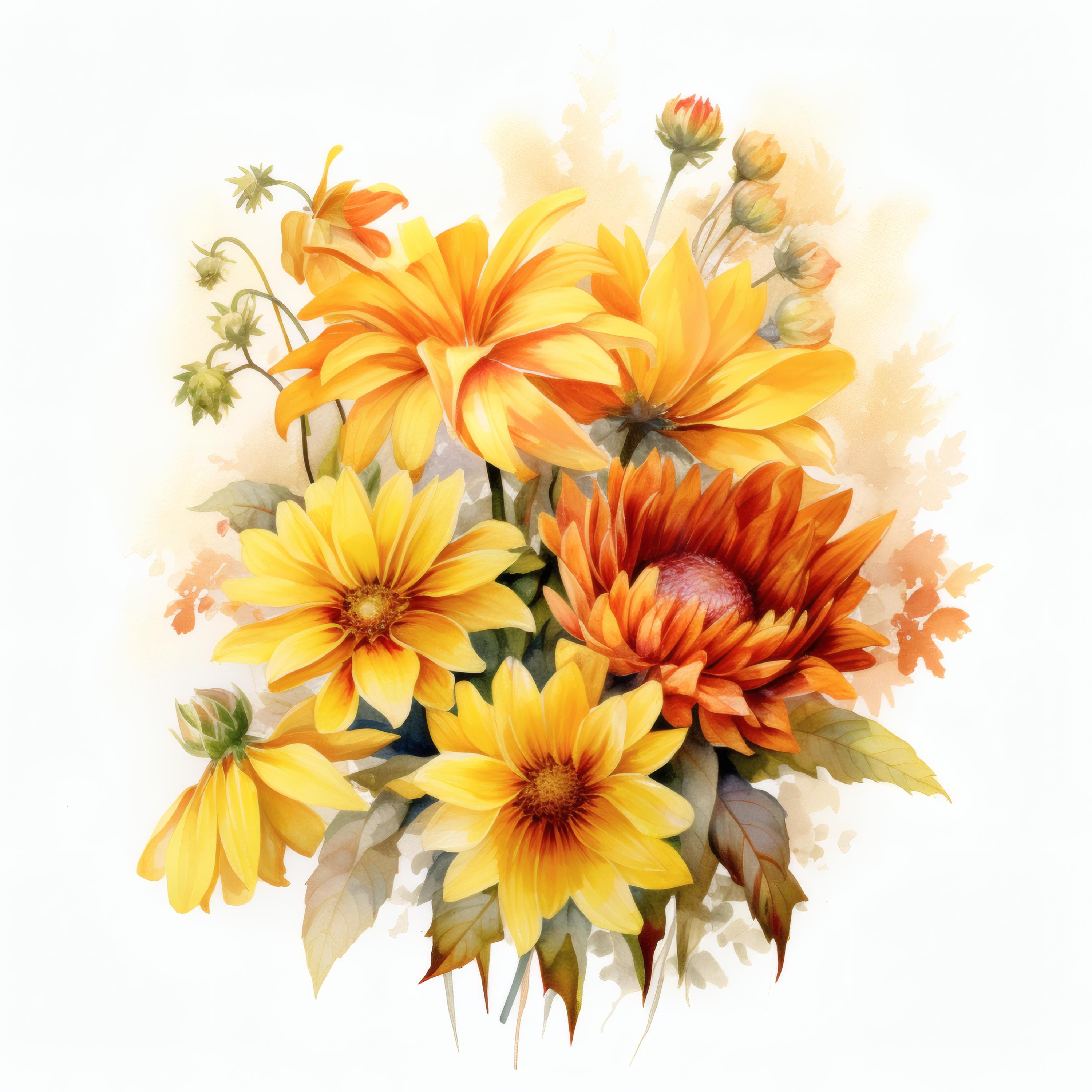 Autumn Flowers Clipart, Fall Floral Bouquet Images, 10 Watercolor Clip Art, Printable JPGs, Instant Download, Commercial Use