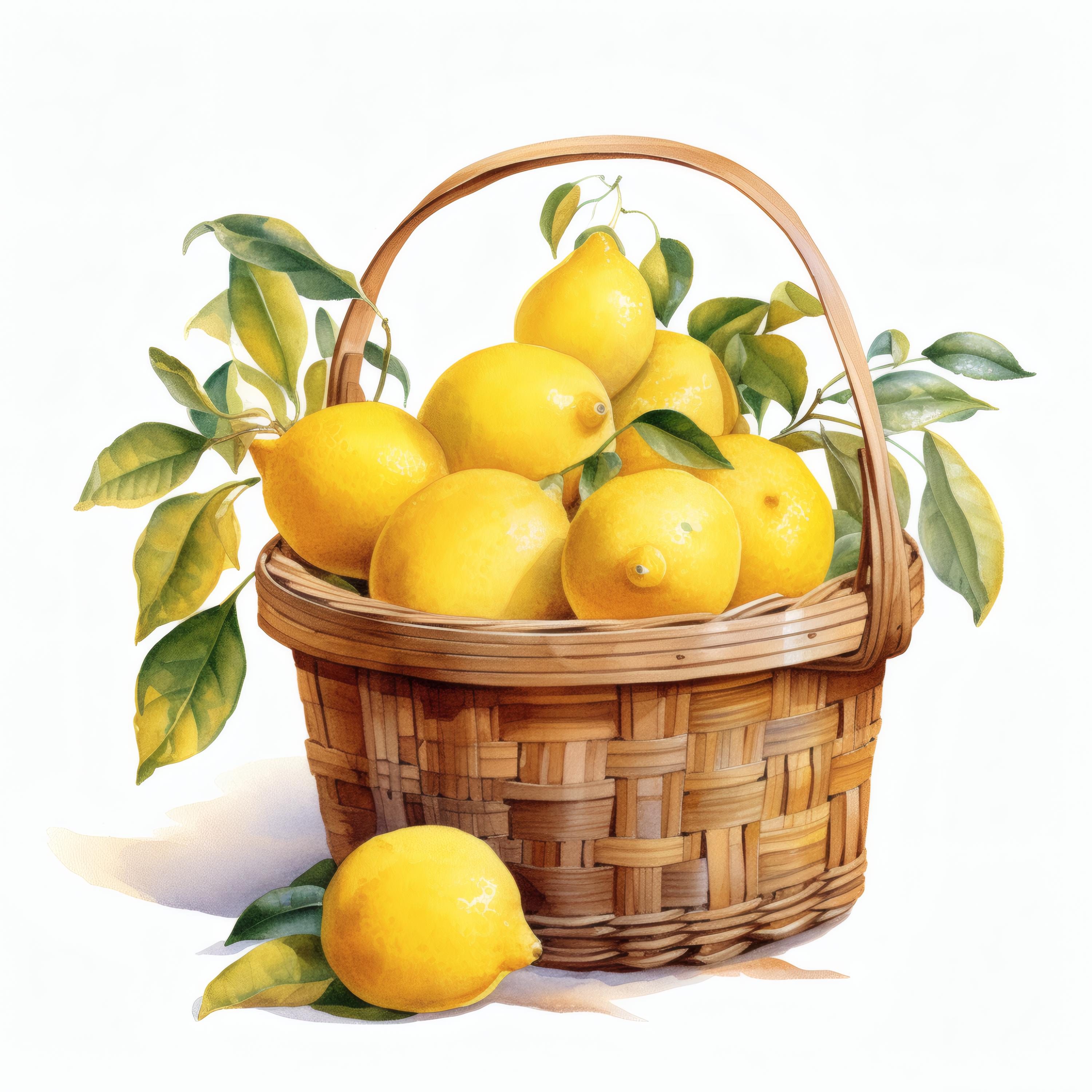 Lemon Basket Clipart, Fresh Citrus Fruits Images, 10 Watercolor Clip Art, Printable JPGs, Instant Download