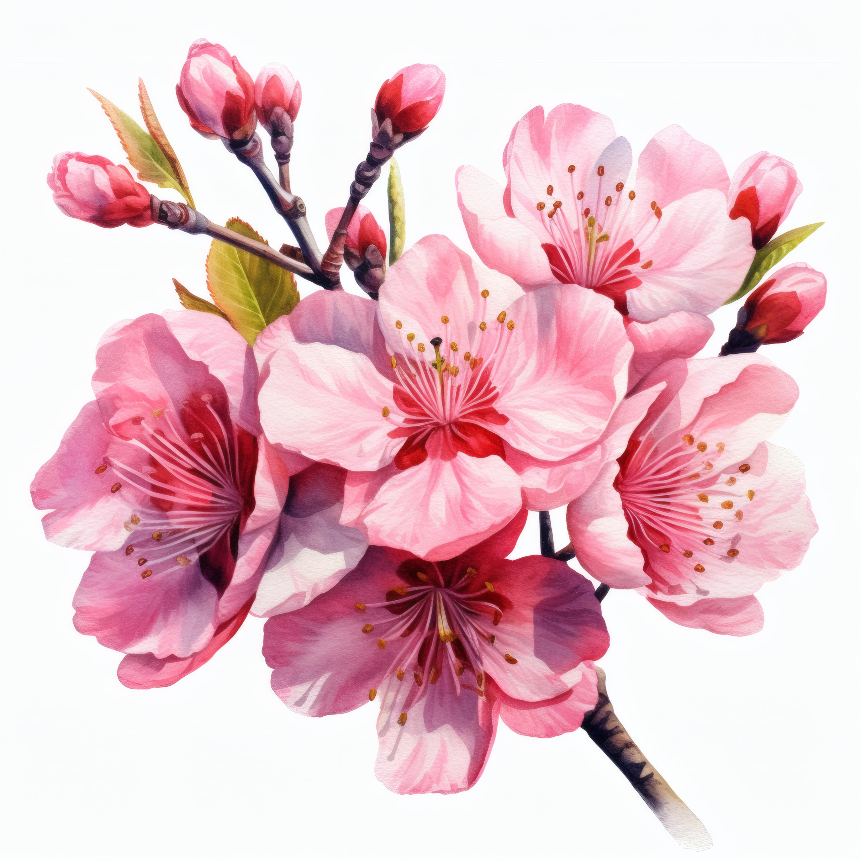 Sakura Blossom Branch Clipart, Pink Cherry Flowers Images, 10 Watercolor Clip Art, Printable JPGs, Instant Download