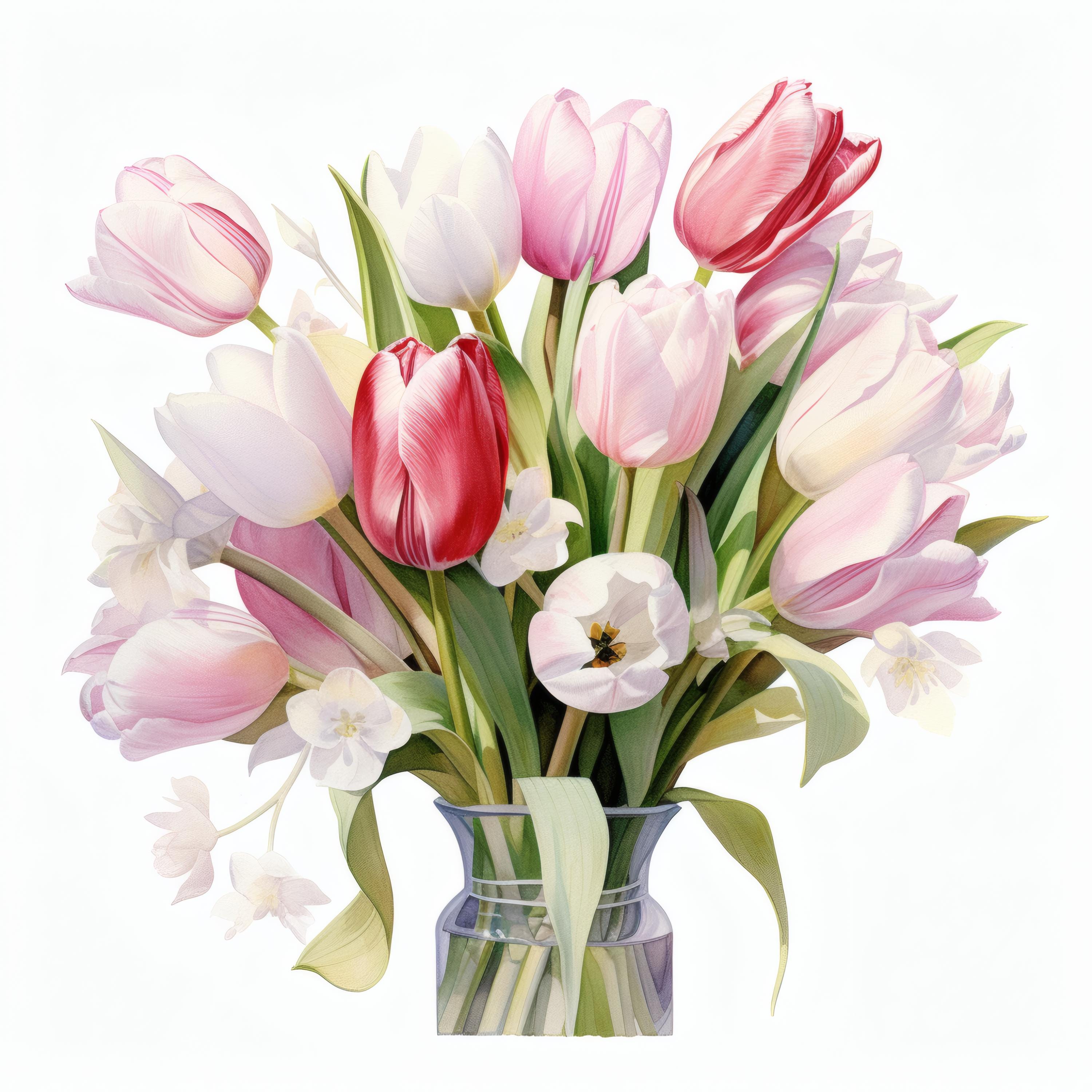 Tulips Vase Clipart, Spring Flowers Images, 10 Watercolor Clip Art, Printable JPGs, Instant Download, Commercial Use, Paper craft