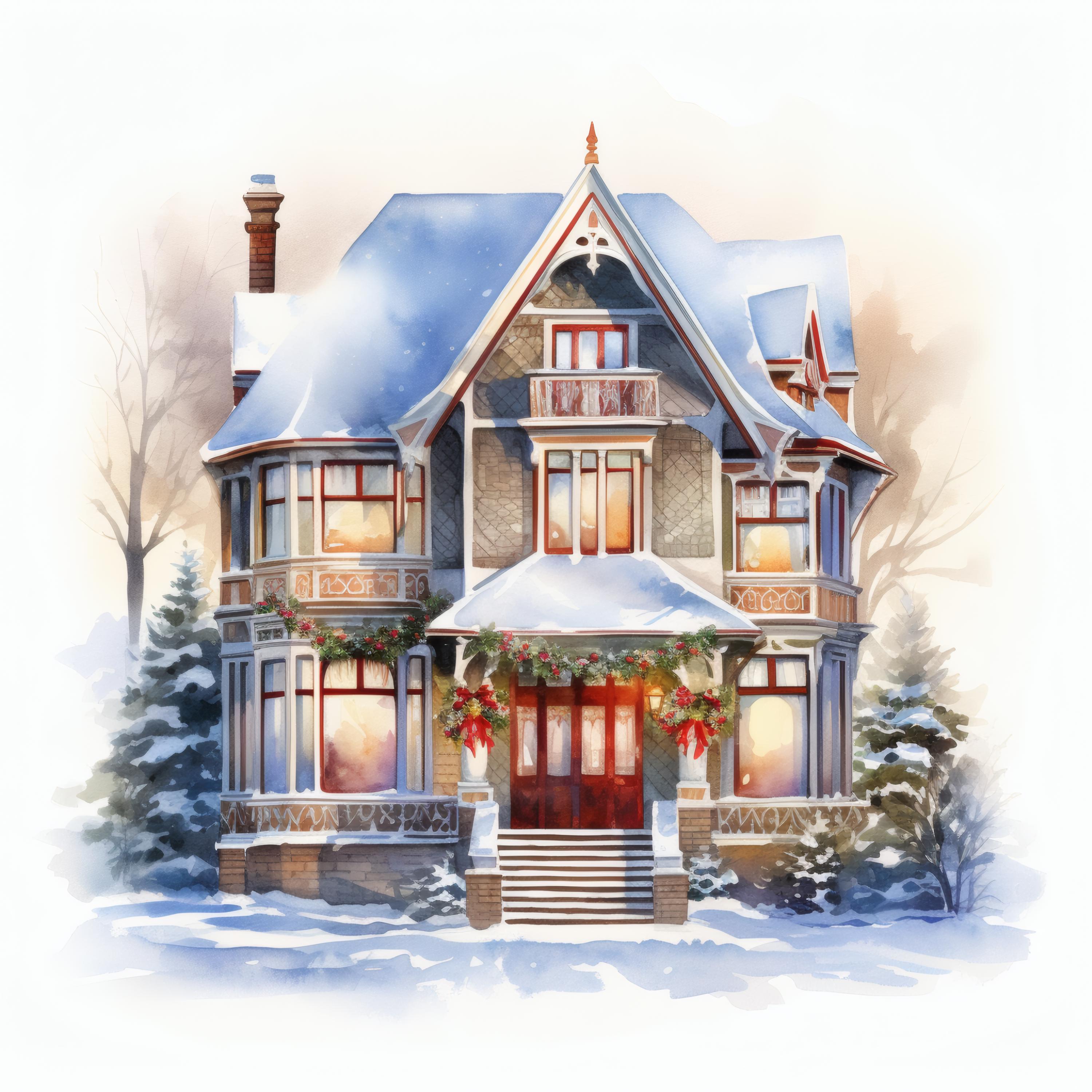 Winter House Clipart, Christmas Home Images, 10 Watercolor Clip Art, Printable JPGs, Instant Download, Commercial Use, Paper craft
