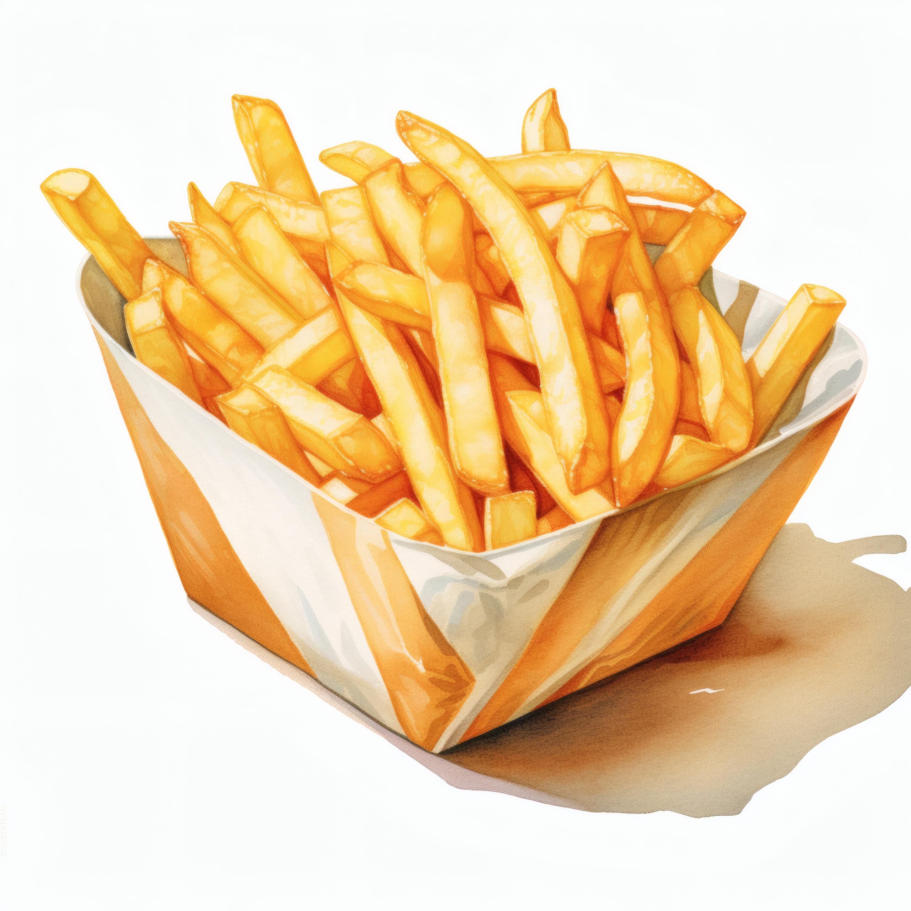 French Fries Clipart, Crispy Snack Images, 10 Watercolor Clip Art, Printable JPGs, Instant Download, Commercial Use, Paper craft