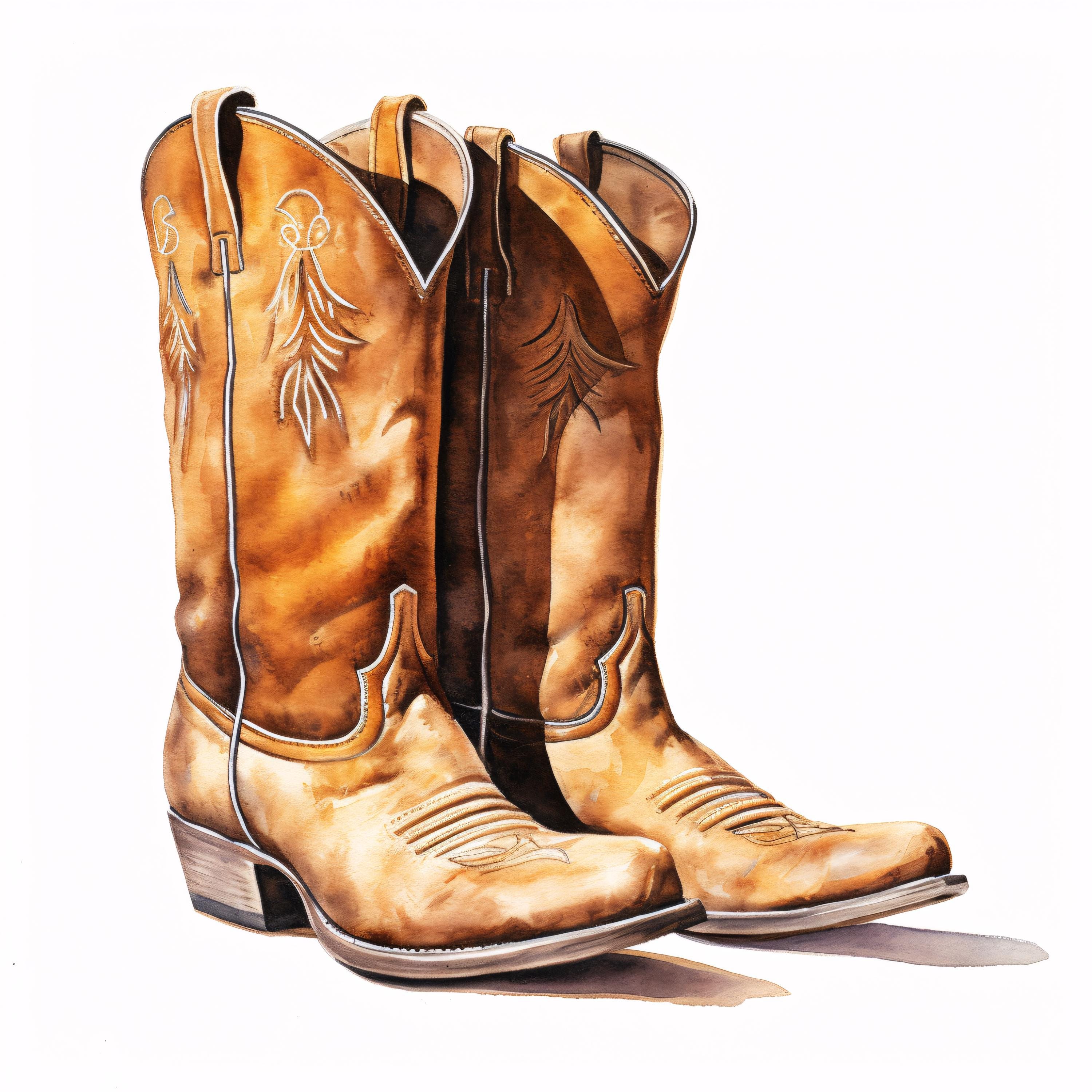 Cowboy Boots Clipart, Western Footwear Images, 10 Watercolor Clip Art, Printable JPGs, Instant Download, Commercial Use, Paper craft