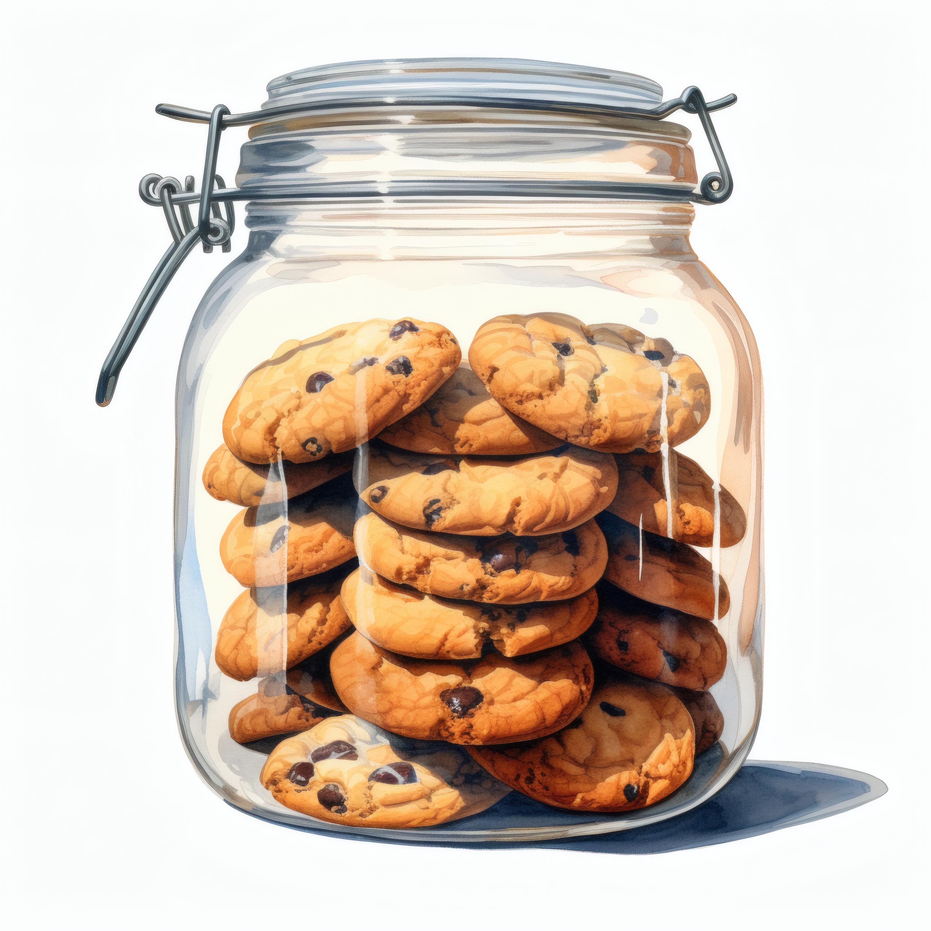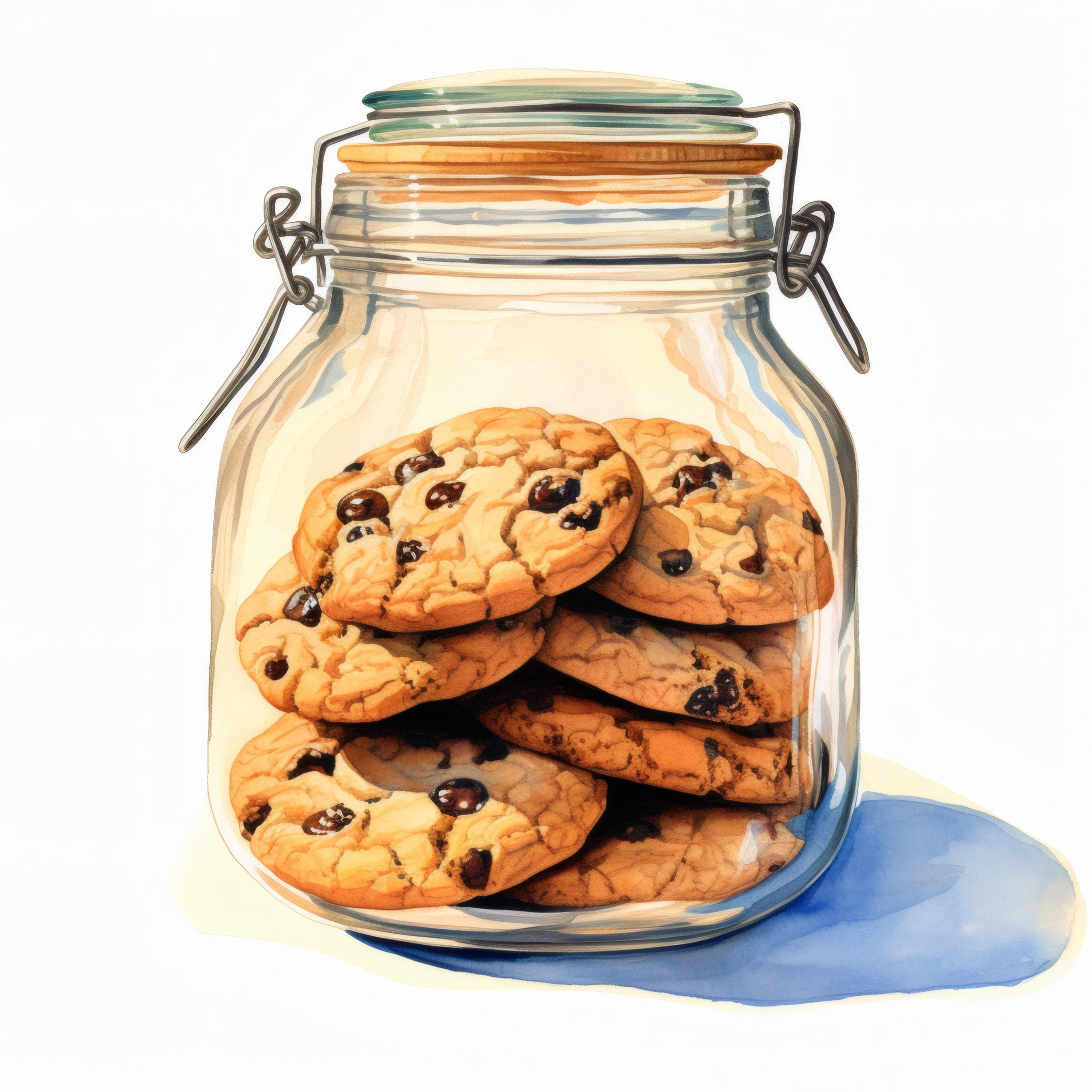Cookie Jar Clipart, Chocolate Chip Images, 10 Watercolor Clip Art, Printable JPGs, Instant Download, Commercial Use, Paper craft