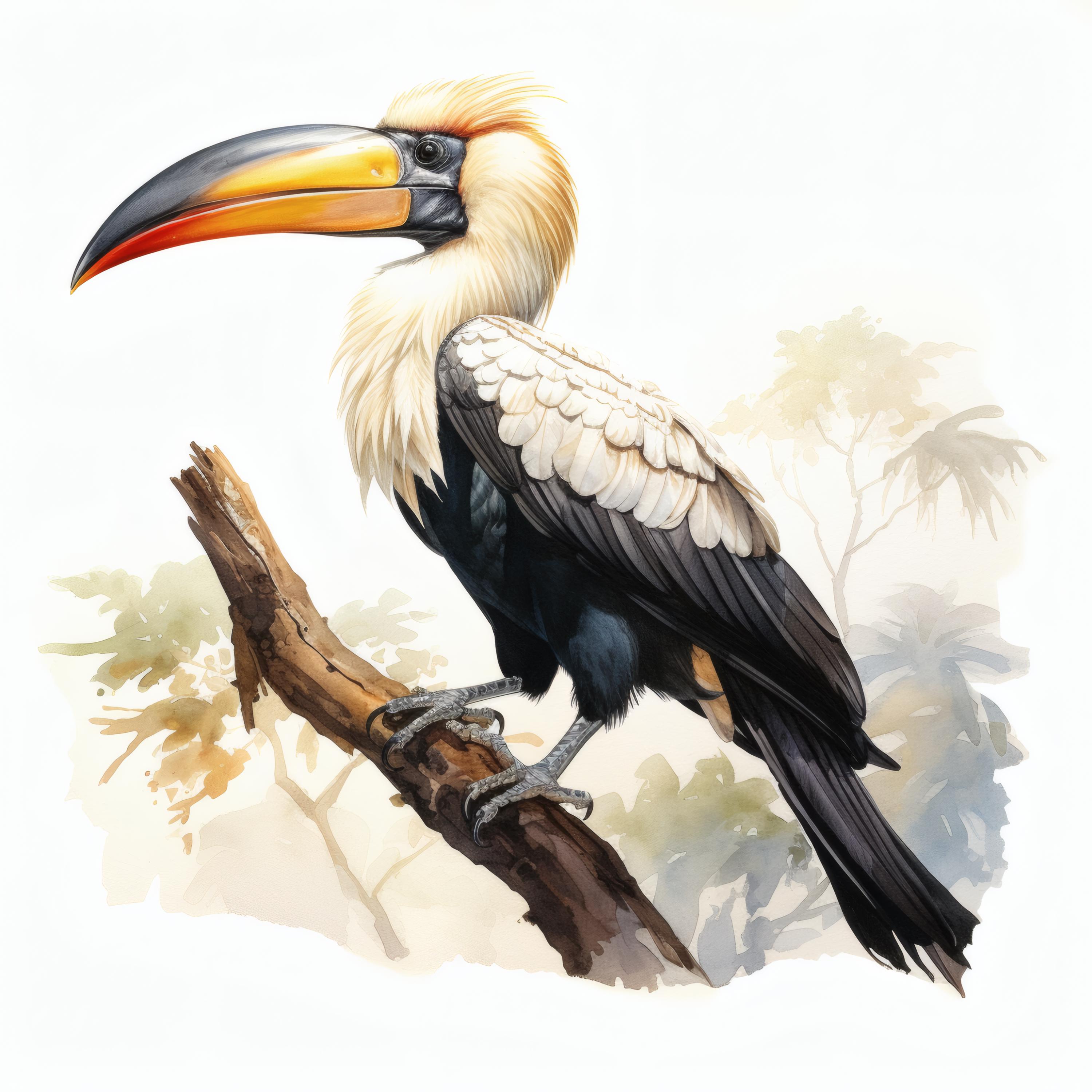 Hornbill Clipart, Tropical Bird Images, 10 Watercolor Clip Art, Printable JPGs, Instant Download, Commercial Use, Paper craft