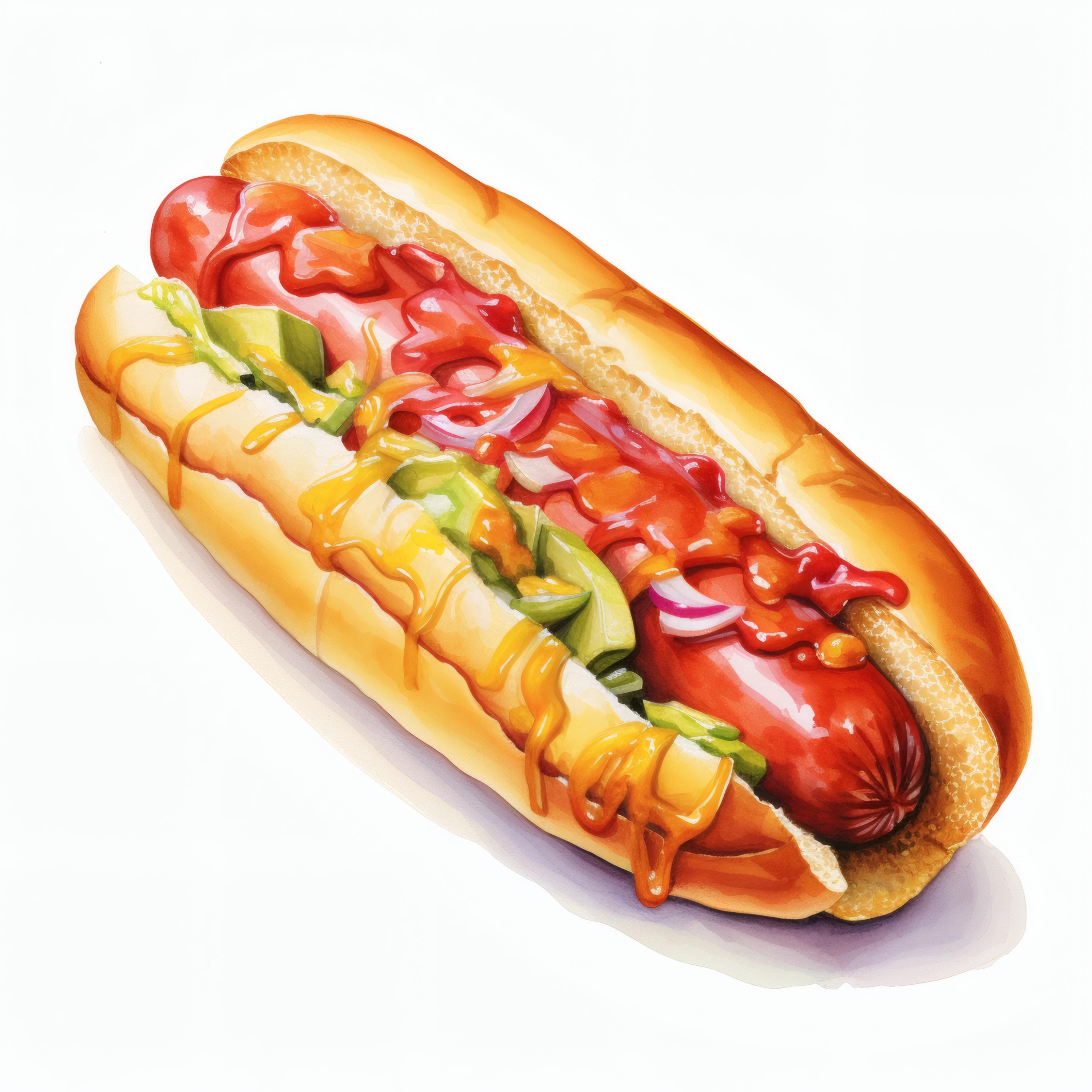 Hot Dog Clipart, Fast Food Images, 10 Watercolor Clip Art, Printable JPGs, Instant Download, Commercial Use, Paper craft
