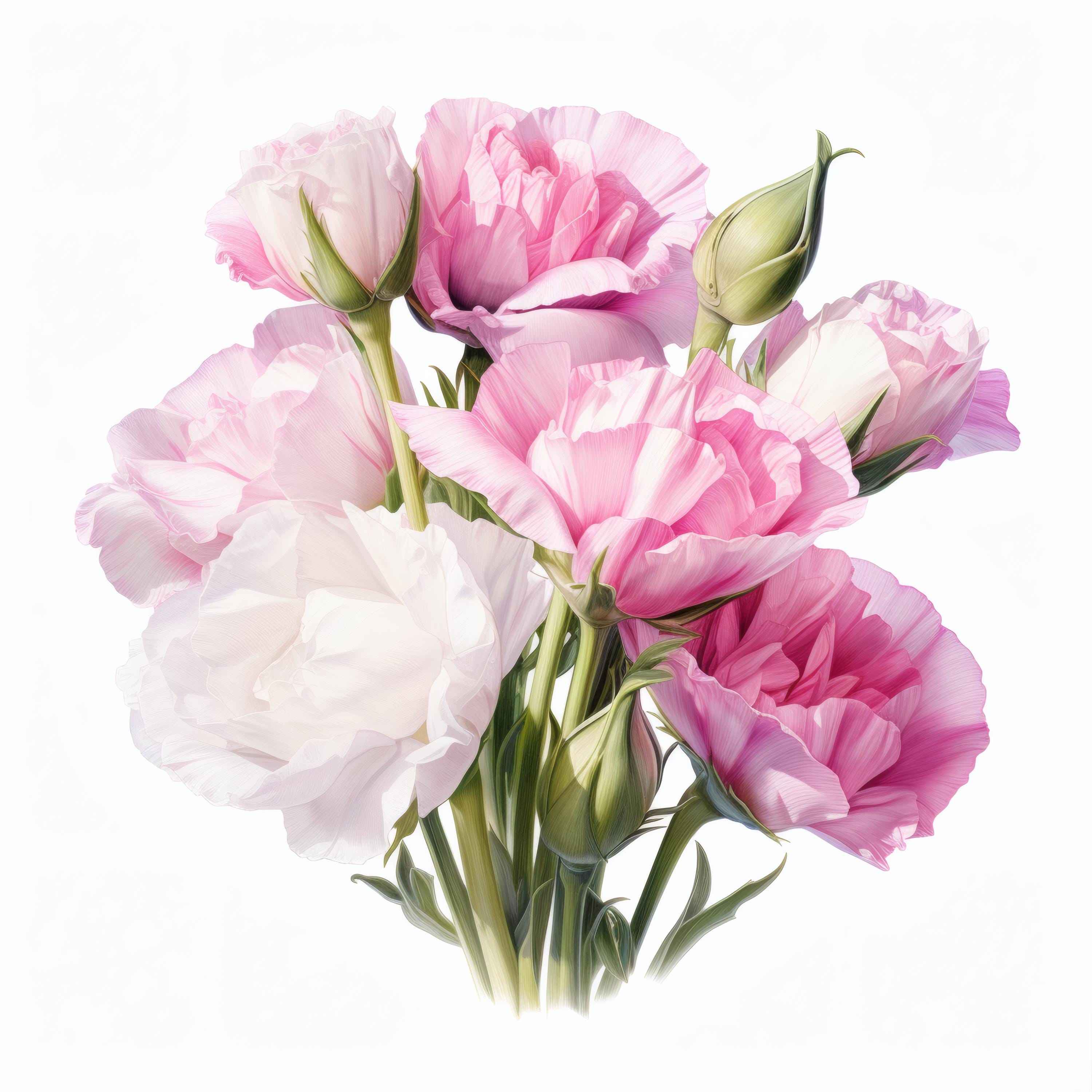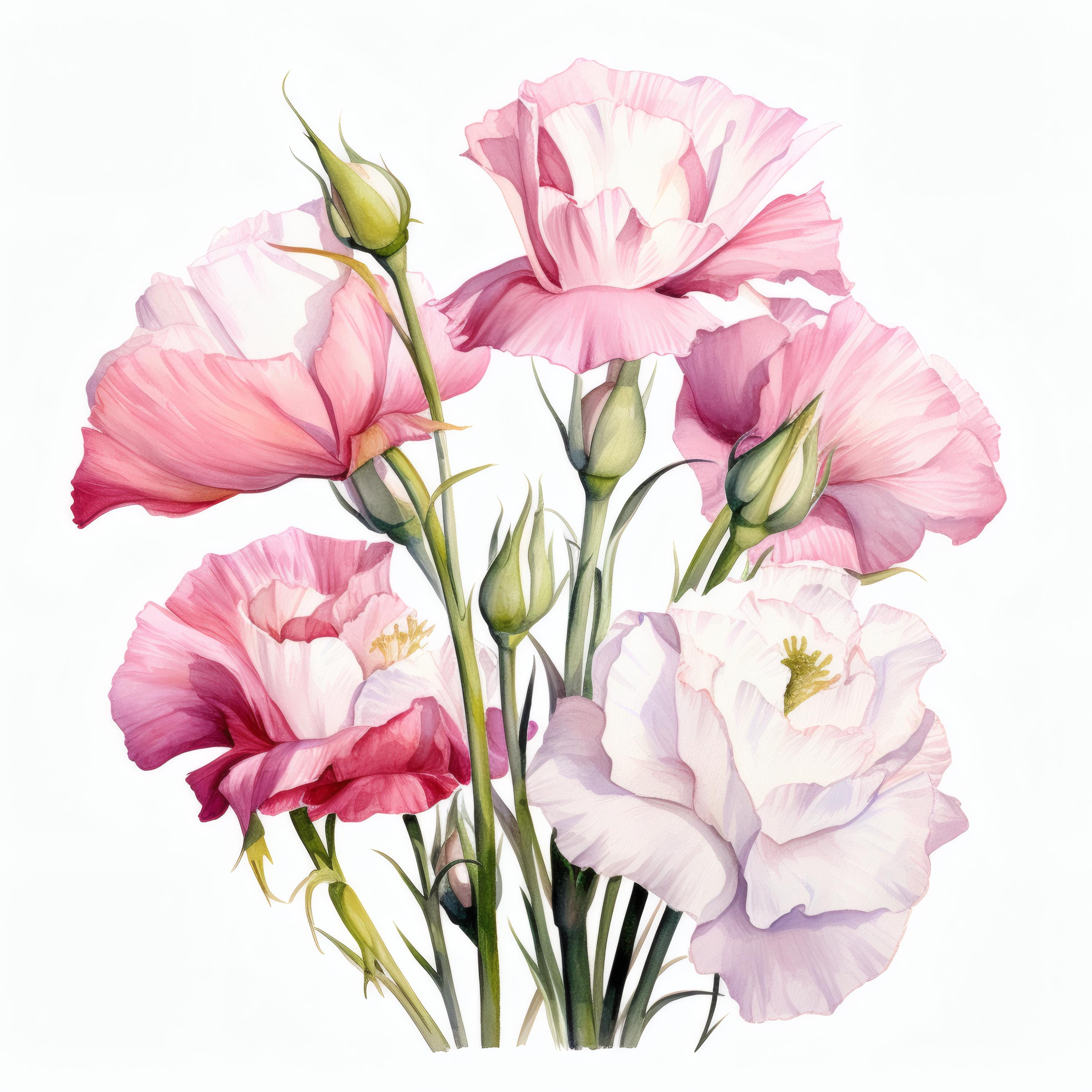 Eustoma Flowers Clipart, Pink and White Bloom Images, 10 Watercolor Clip Art, Printable JPGs, Instant Download, Commercial Use, Paper craft