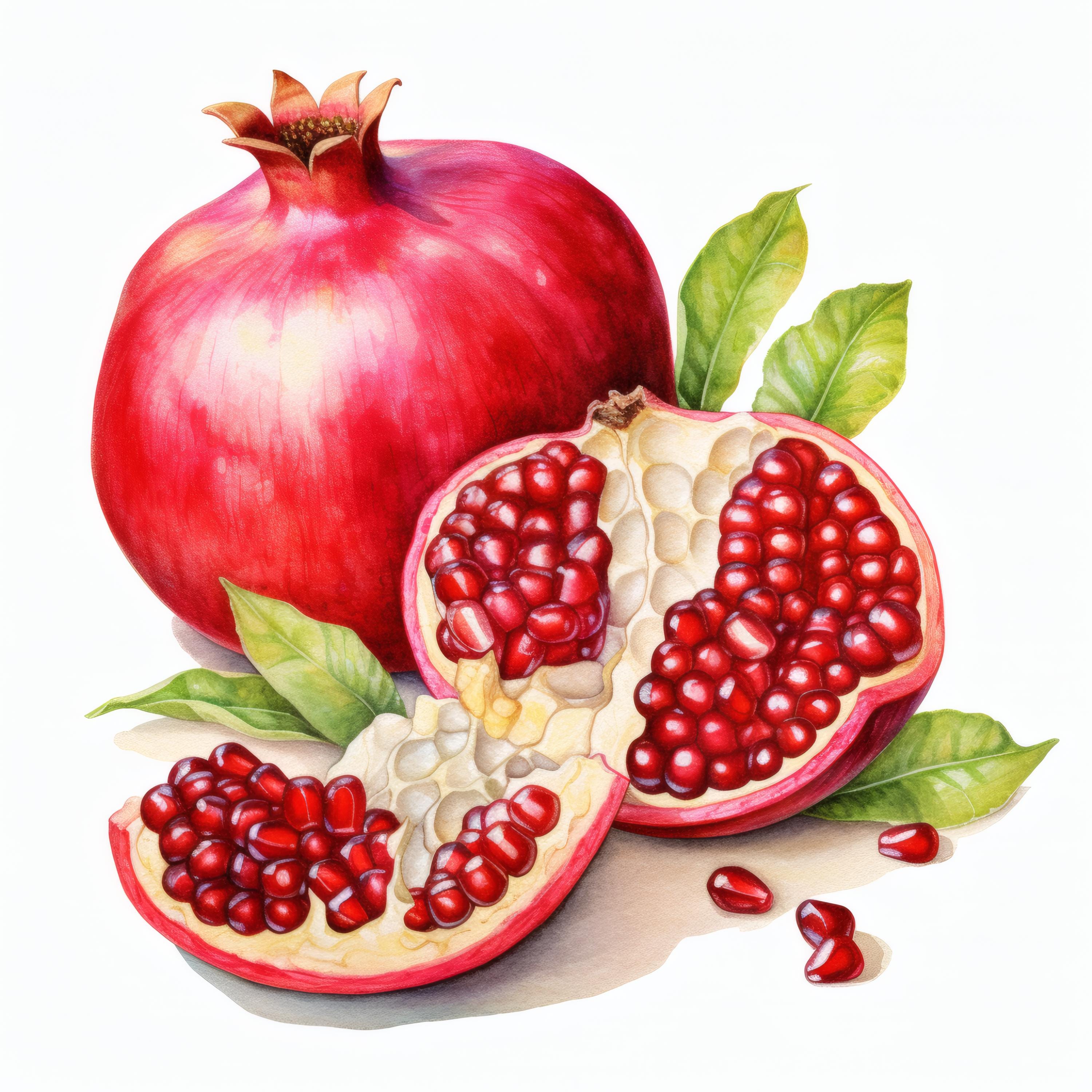 Pomegranate Clipart, Red Fruit Images, 10 Watercolor Clip Art, Printable JPGs, Instant Download, Commercial Use, Paper craft