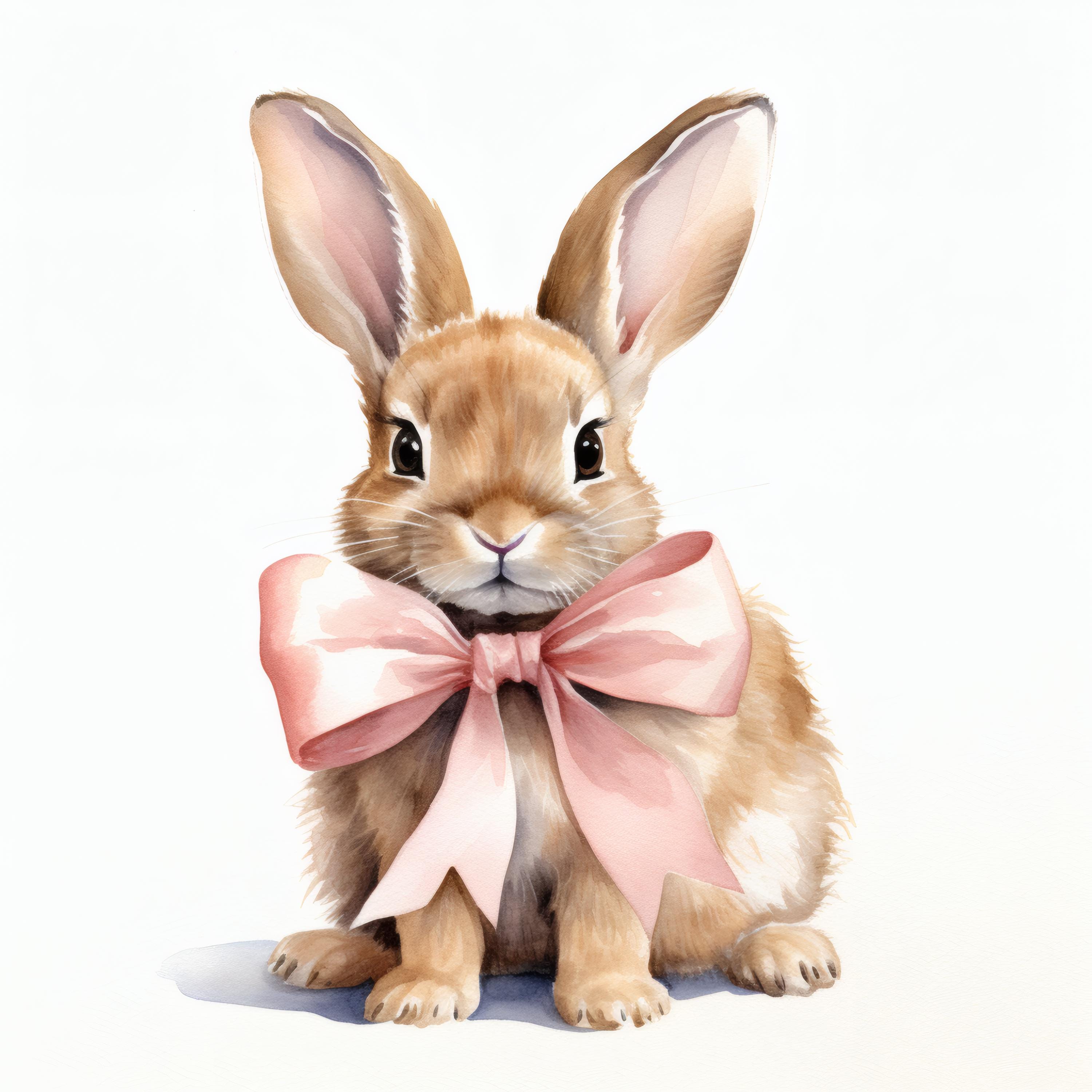 Cute Rabbit Clipart, Bunny with Bow Images, 10 Watercolor Clip Art, Printable JPGs, Instant Download, Commercial Use, Paper craft