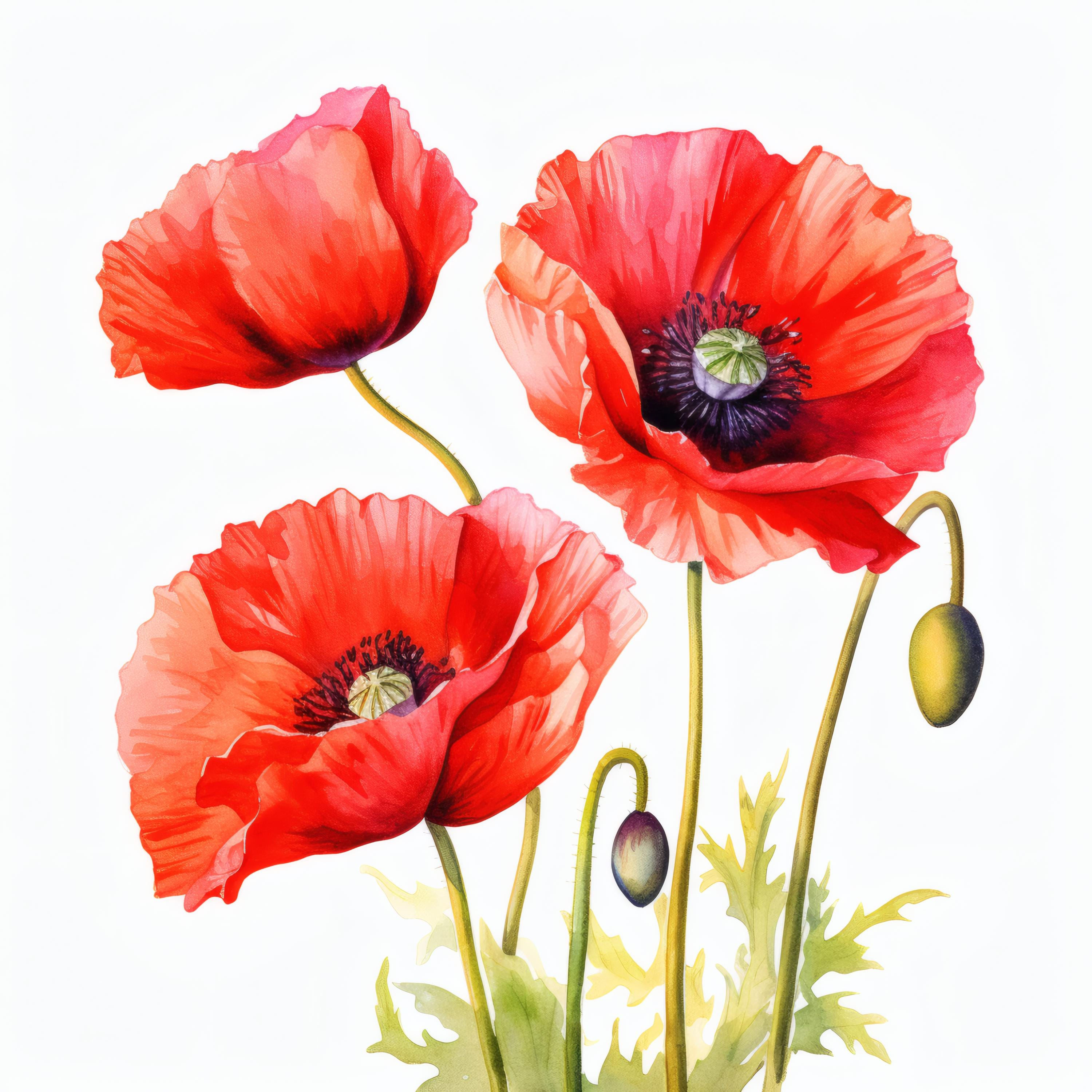 Poppy Flowers Clipart, Red Bloom Images, 10 Watercolor Clip Art, Printable JPGs, Instant Download, Commercial Use, Paper craft