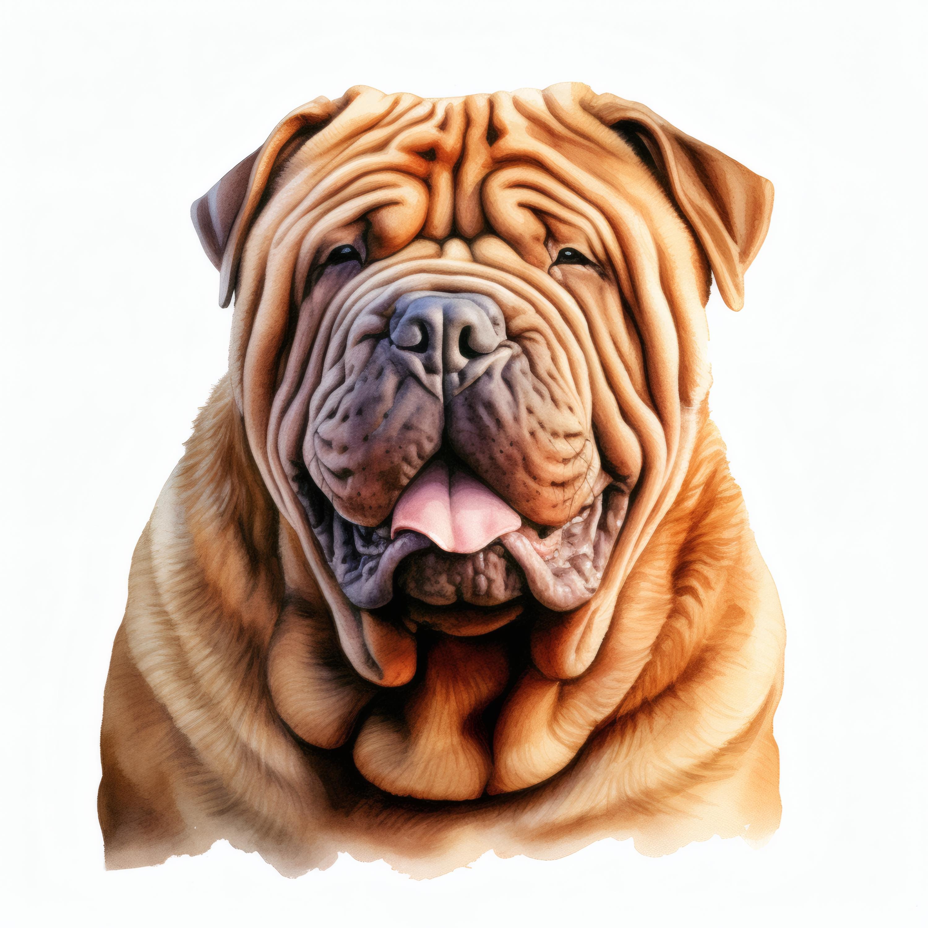 Shar Pei Dog Clipart, Wrinkled Dog Face Images, 10 Watercolor Clip Art, Printable JPGs, Instant Download, Commercial Use, Paper craft
