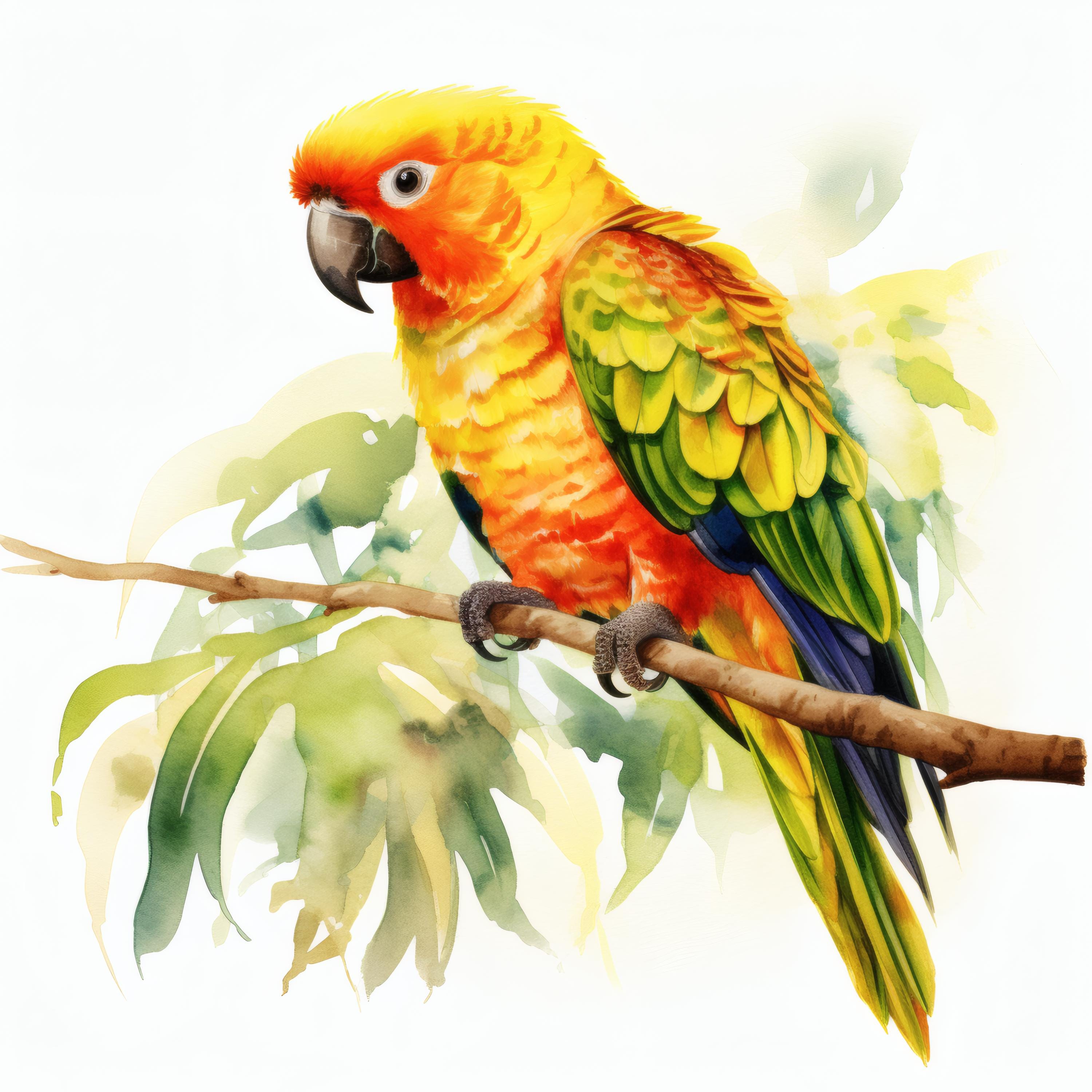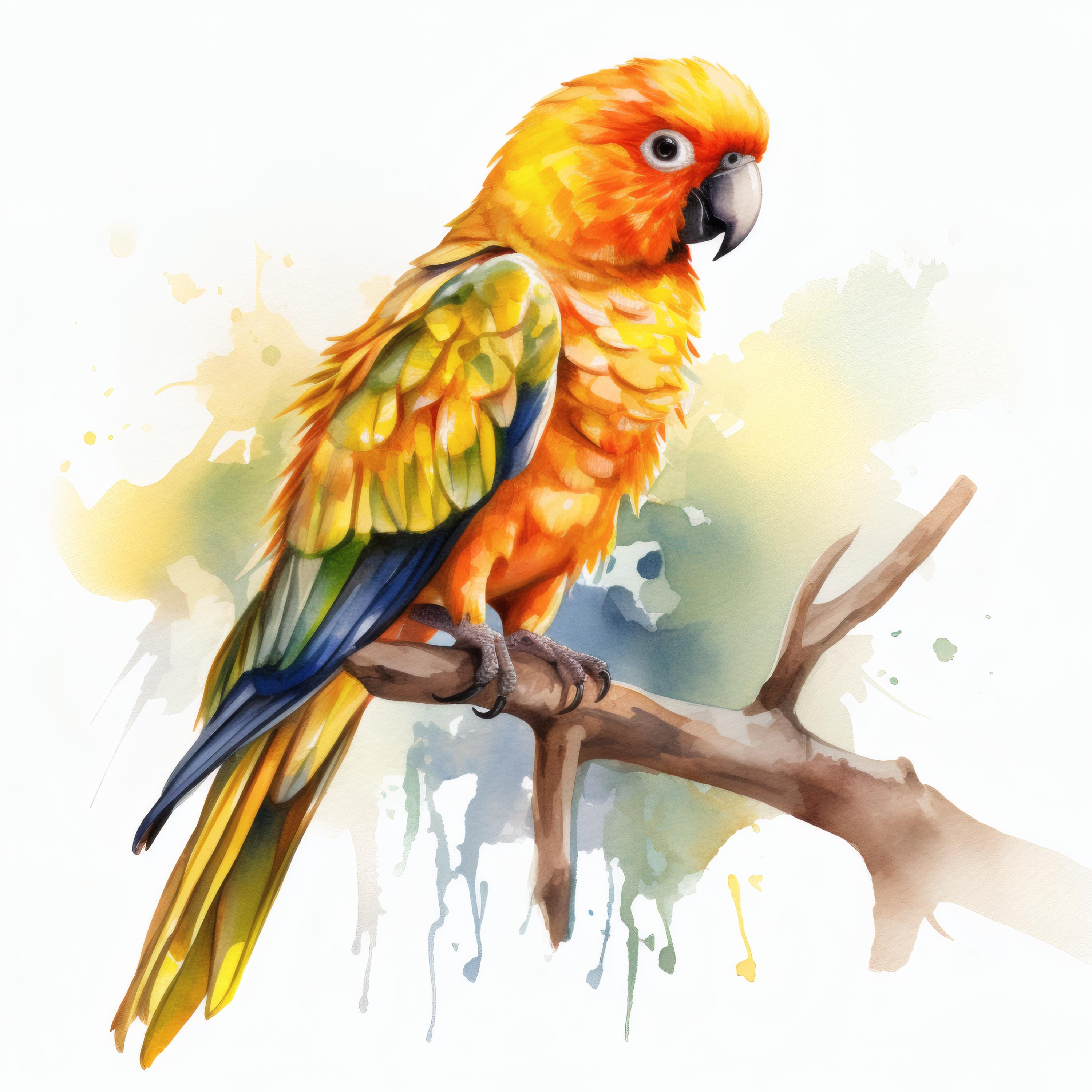 Sun Conure Clipart, Colorful Parrot Images, 10 Watercolor Clip Art, Printable JPGs, Instant Download, Commercial Use, Paper craft