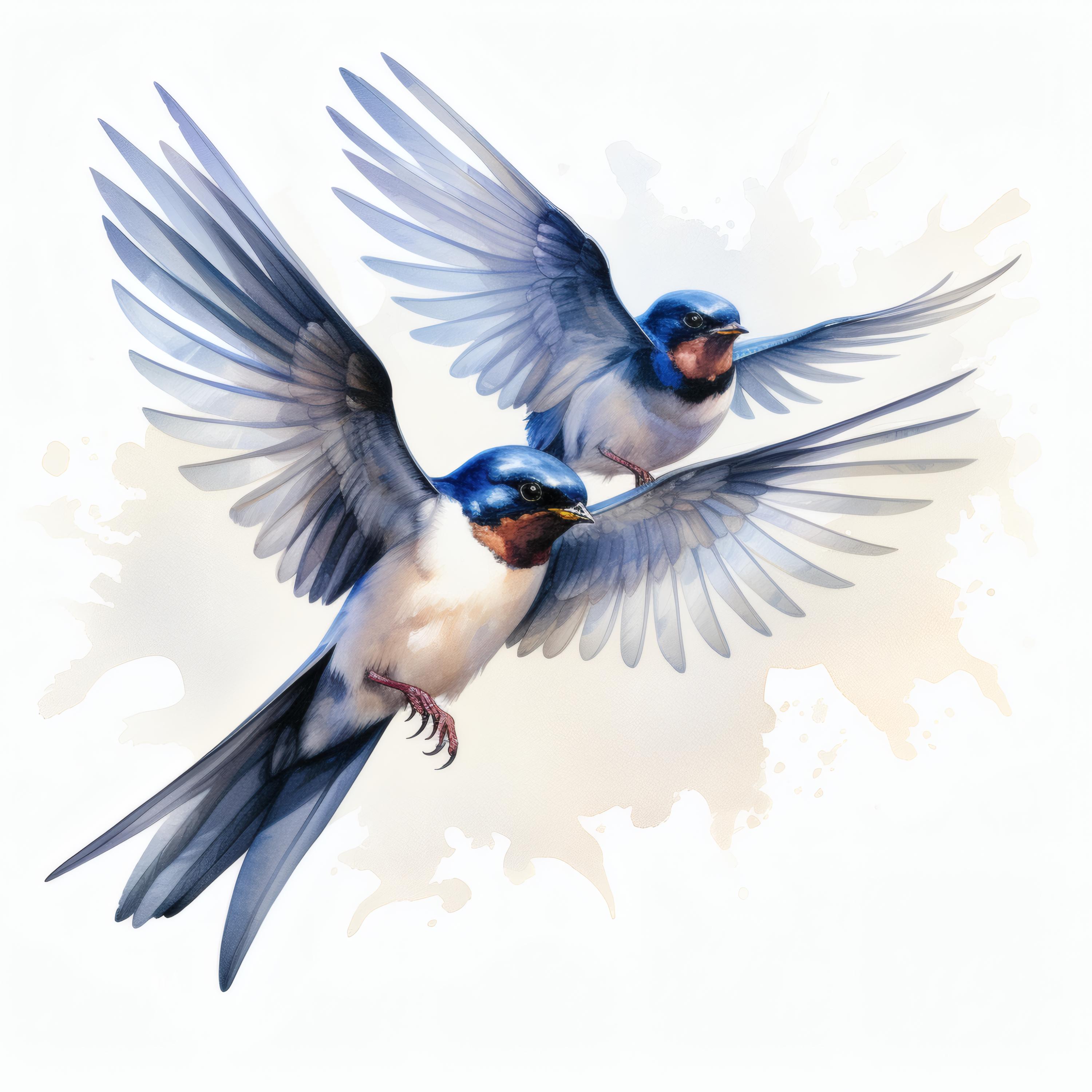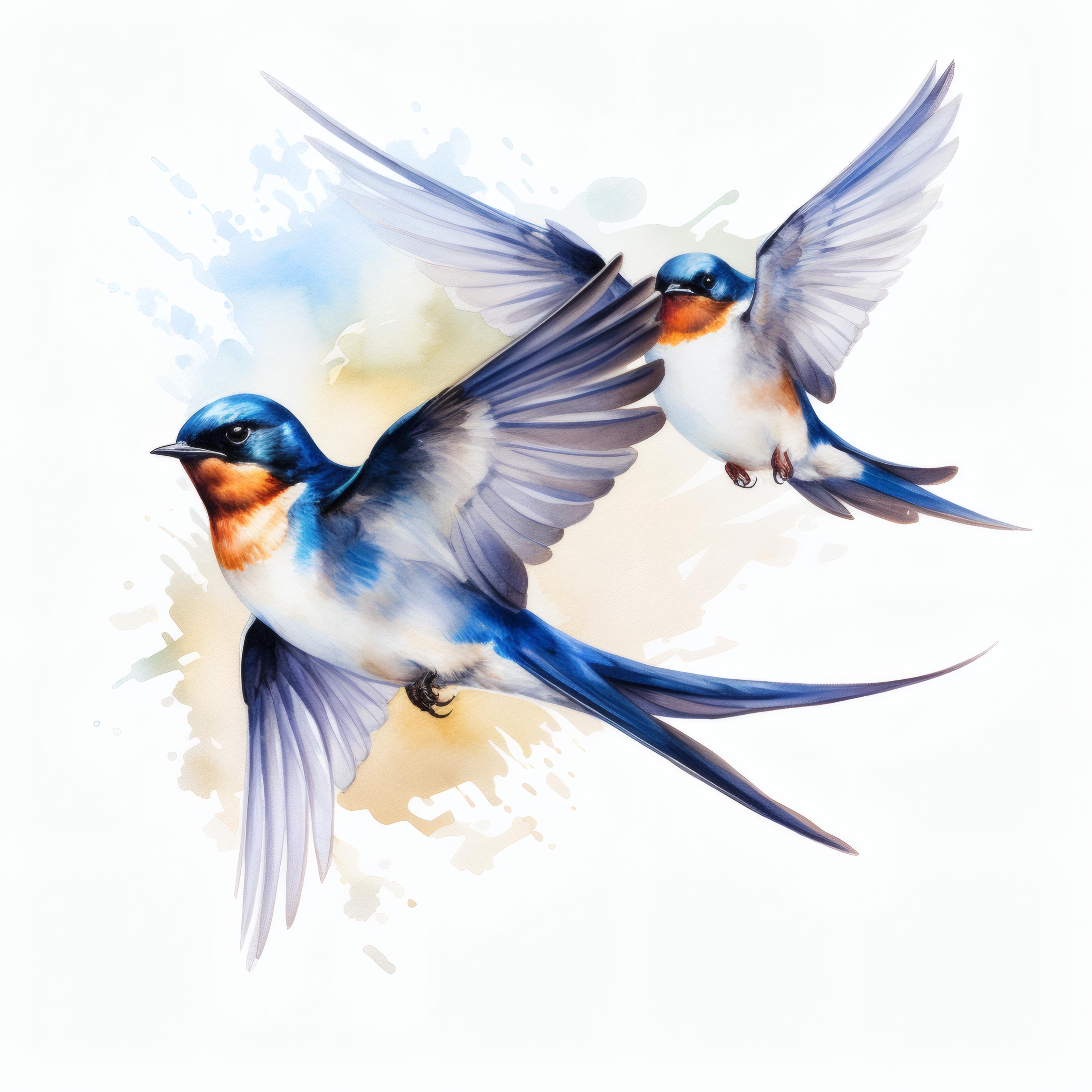 Swallow Birds Clipart, Flying Swallows Images, 10 Watercolor Clip Art, Printable JPGs, Instant Download, Commercial Use, Paper craft