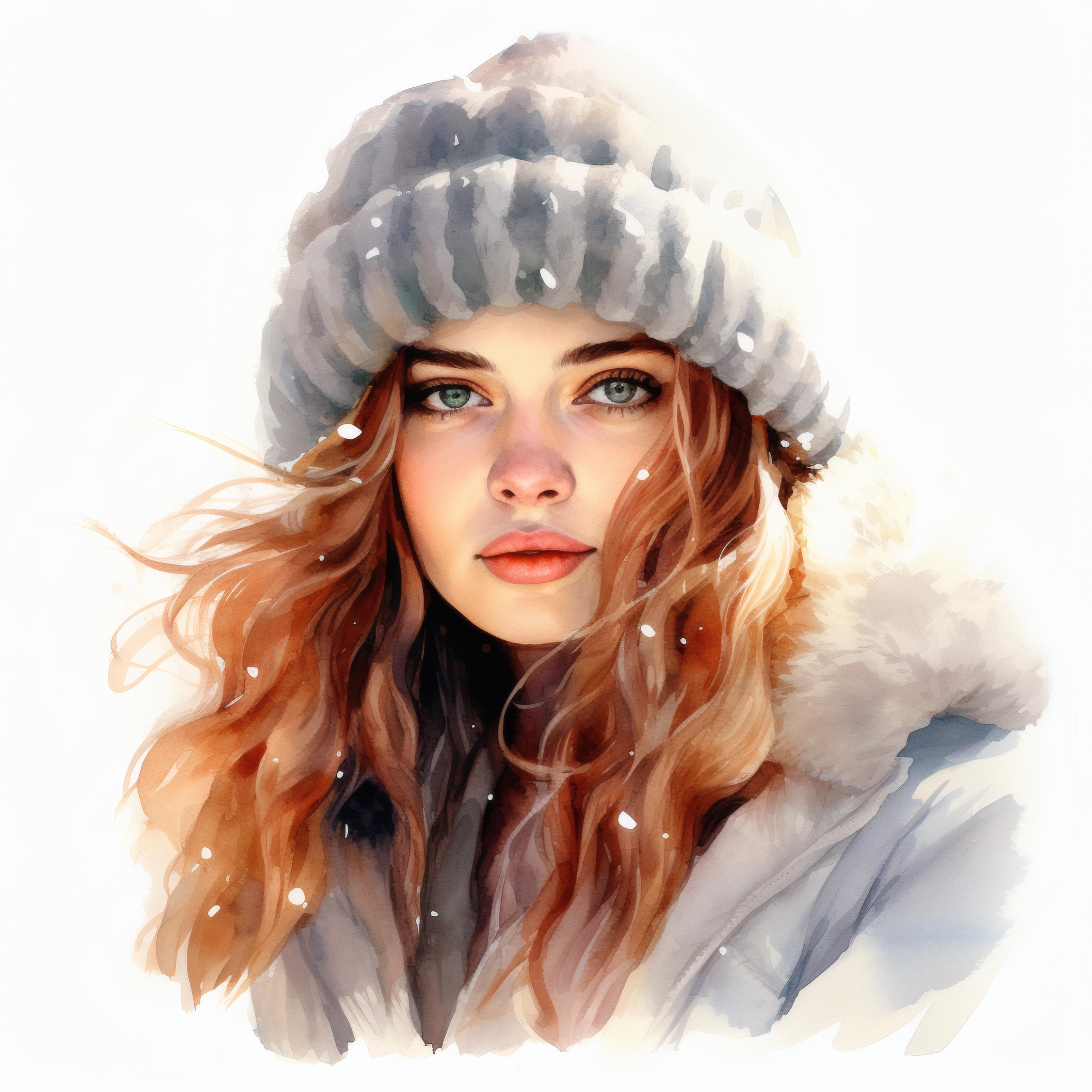 Winter Girl Clipart, Cozy Portrait Images, 10 Watercolor Clip Art, Printable JPGs, Instant Download, Commercial Use, Paper craft