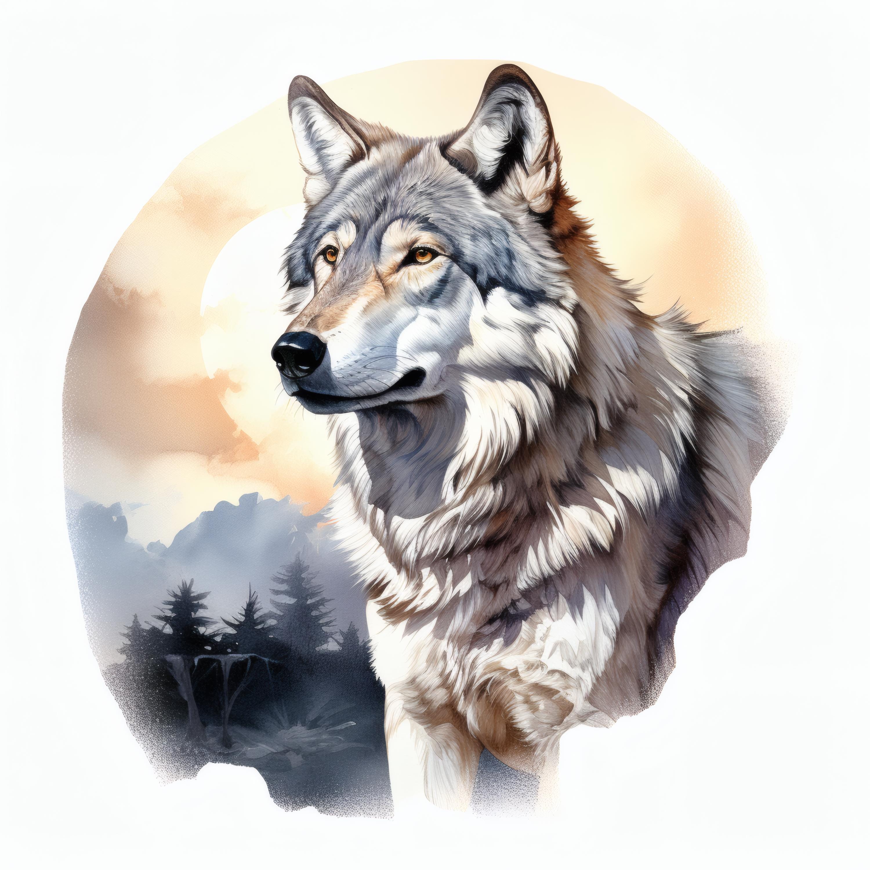 Wolf Clipart, Forest Animal Images, 10 Watercolor Clip Art, Printable JPGs, Instant Download, Commercial Use, Paper craft