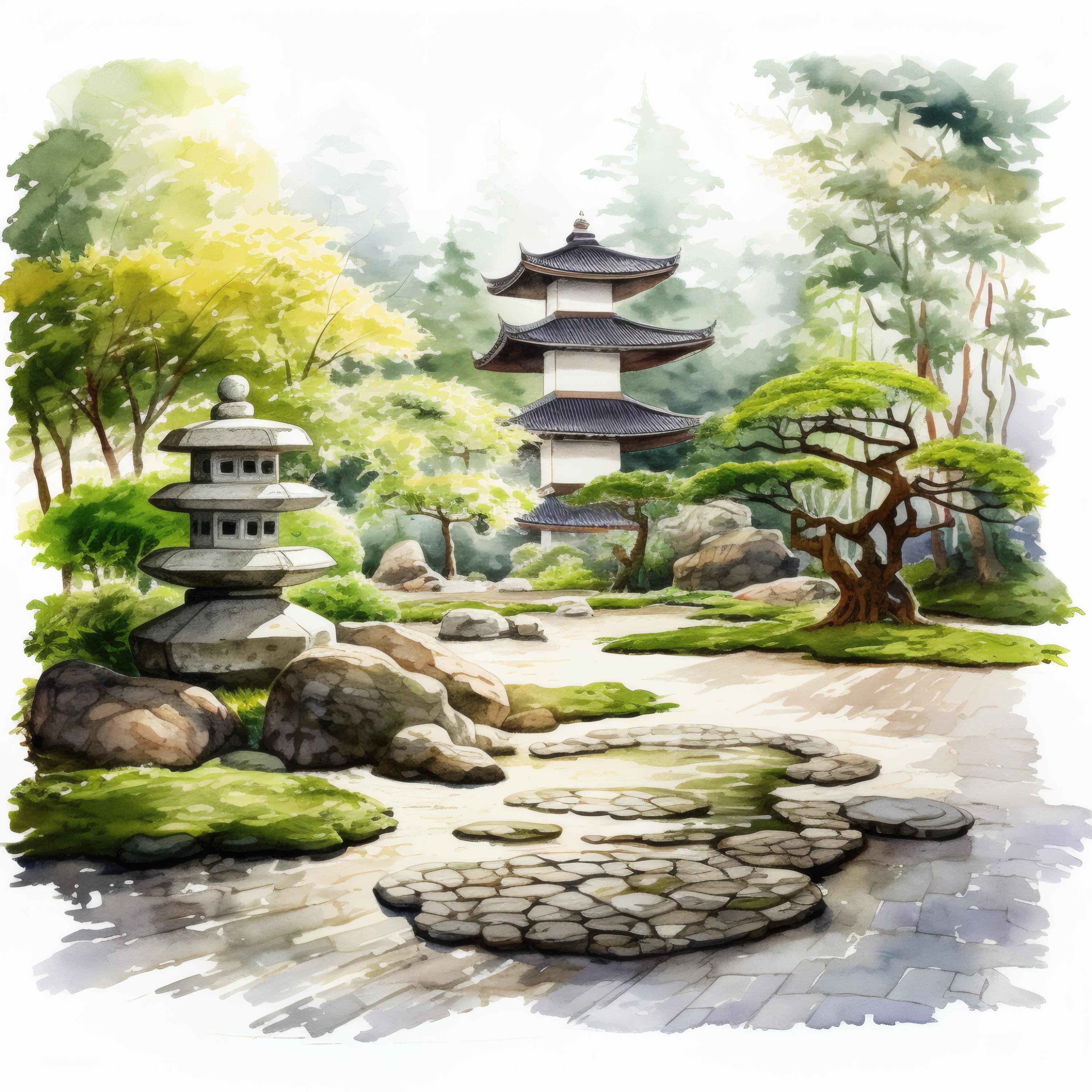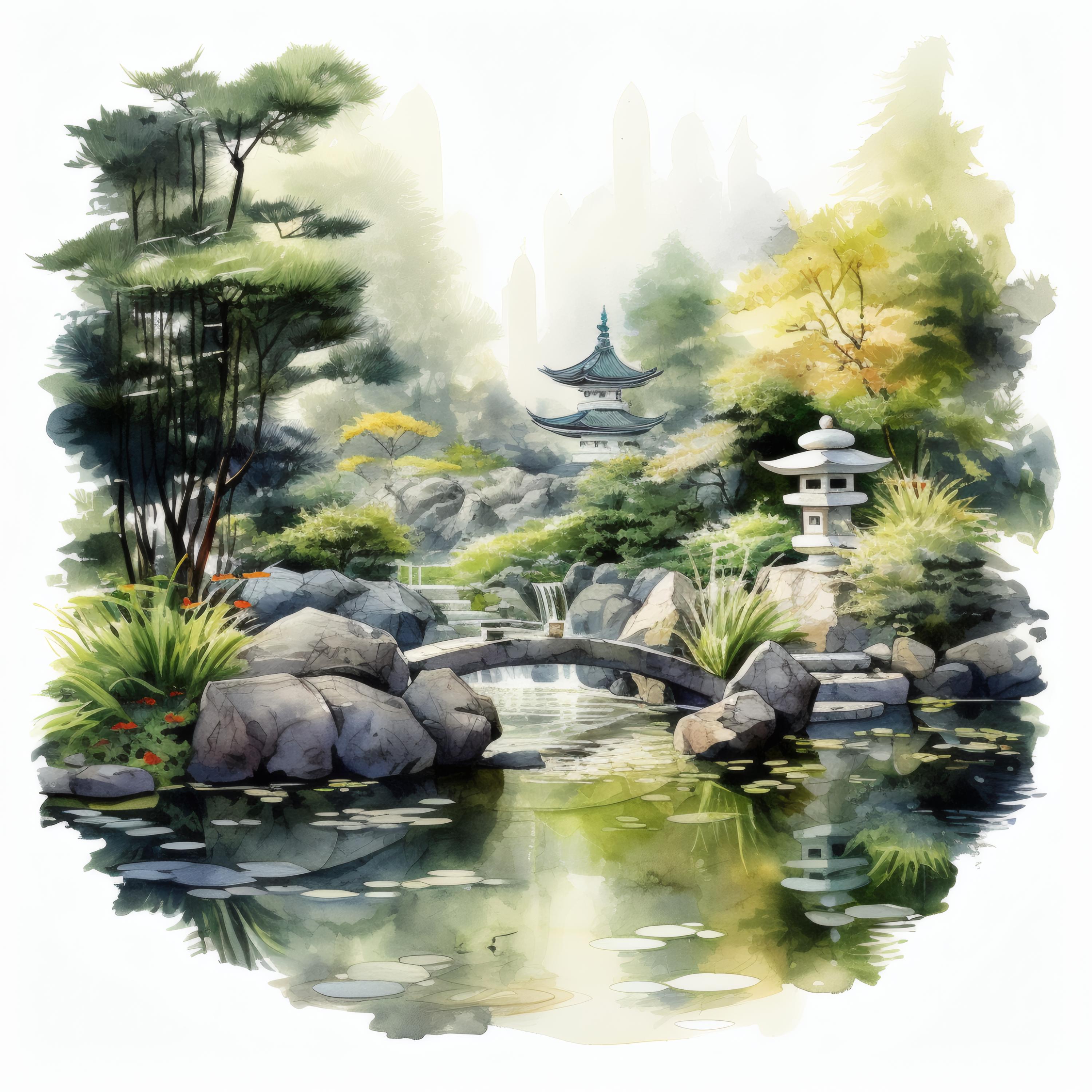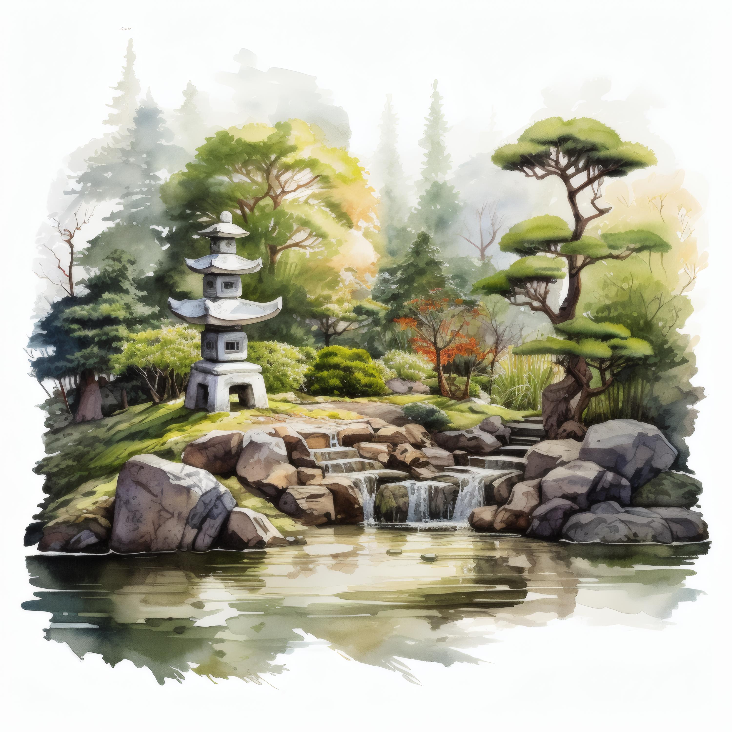 Zen Garden Clipart, Japanese Landscape Images, 10 Watercolor Clip Art, Printable JPGs, Instant Download, Commercial Use, Paper craft