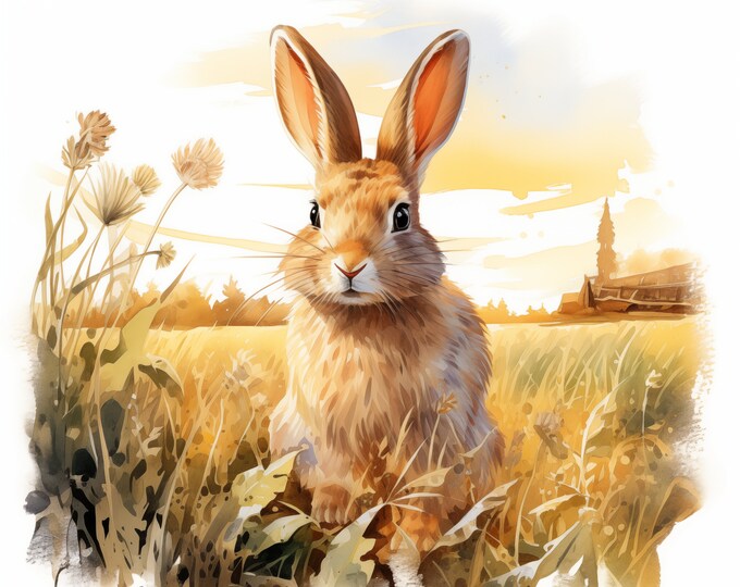 Watercolor Bunny in Teacup Clipart: Spring Rabbit JPG Images (Commercial Use, Digital Download)